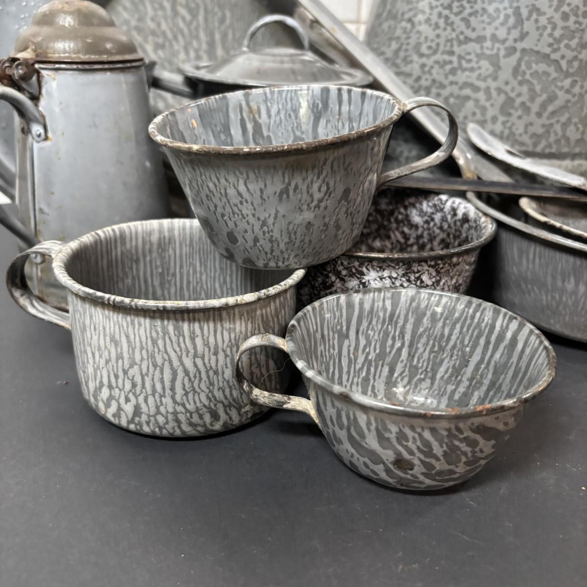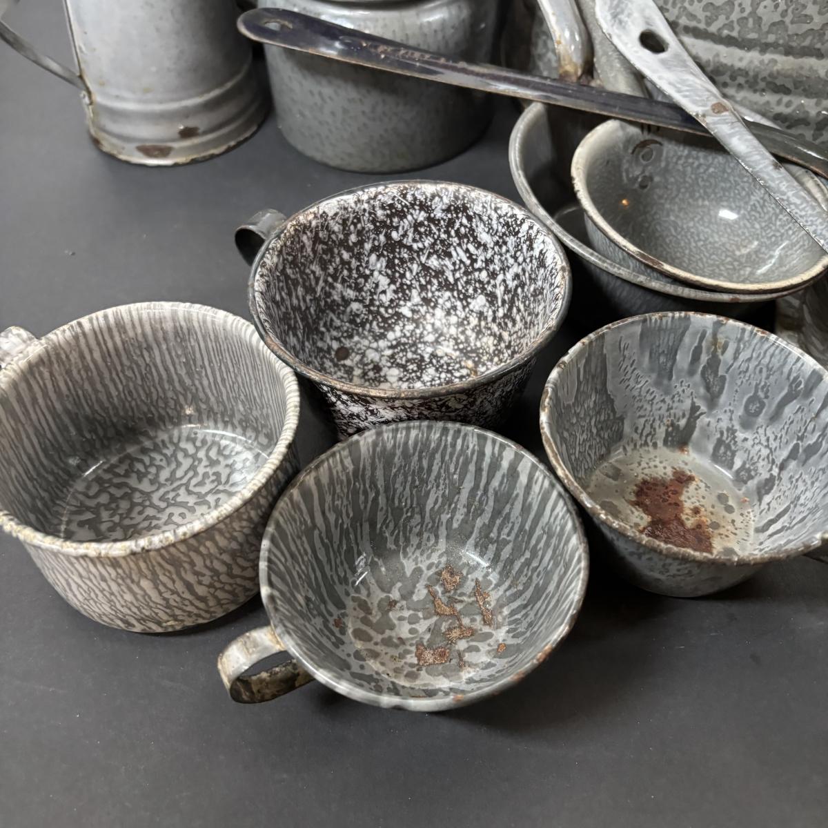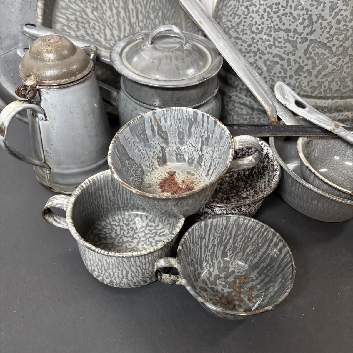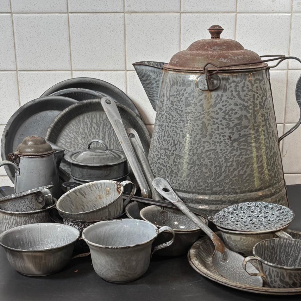 LOT 113: Large Collection of Enamelware in Various Conditions