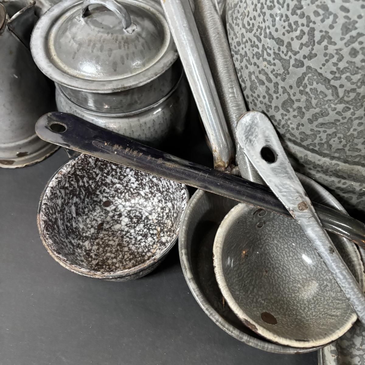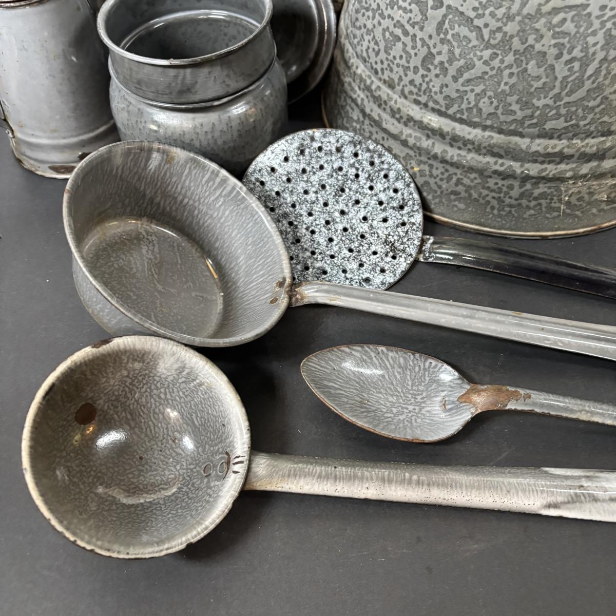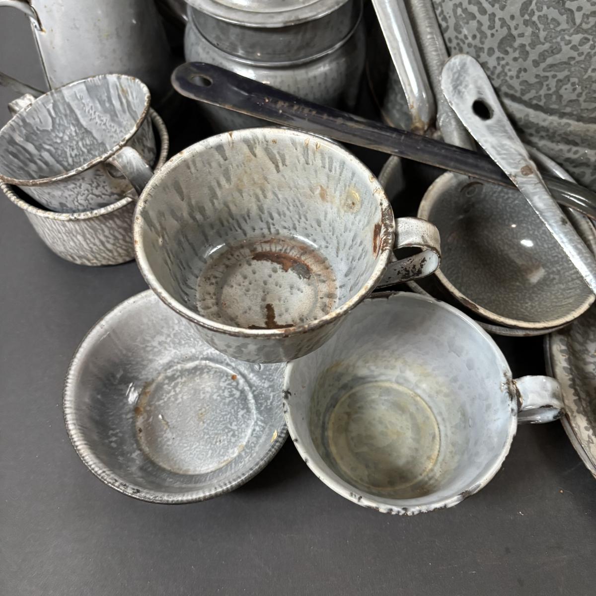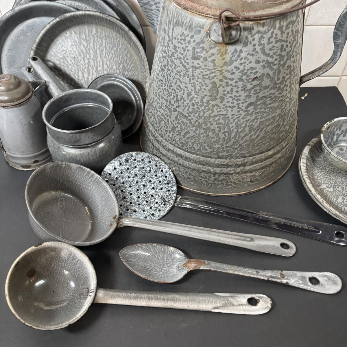 LOT 113: Large Collection of Enamelware in Various Conditions