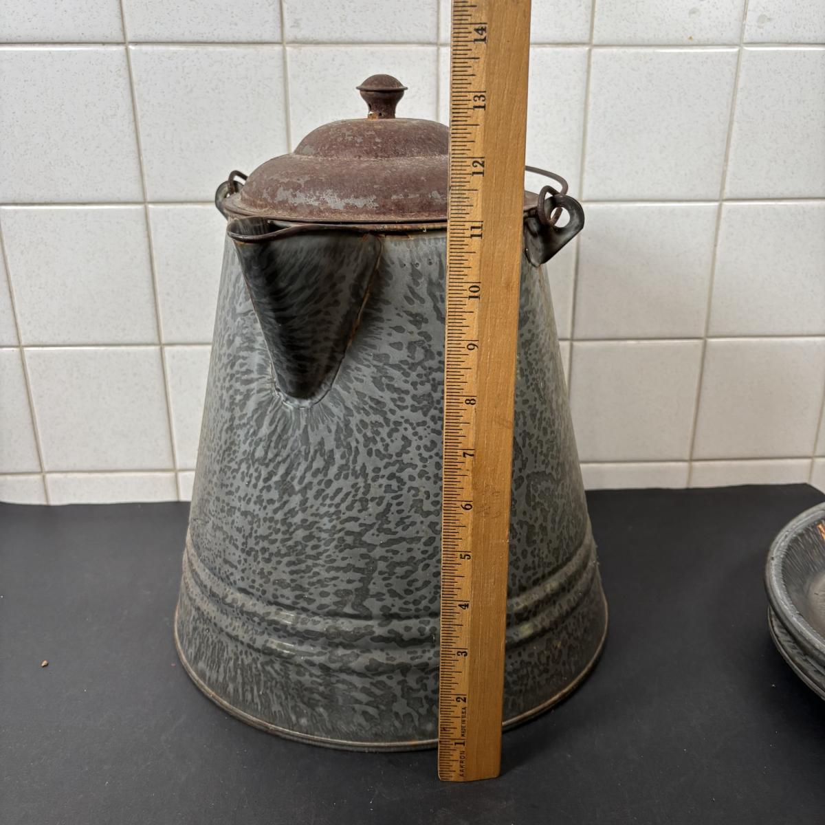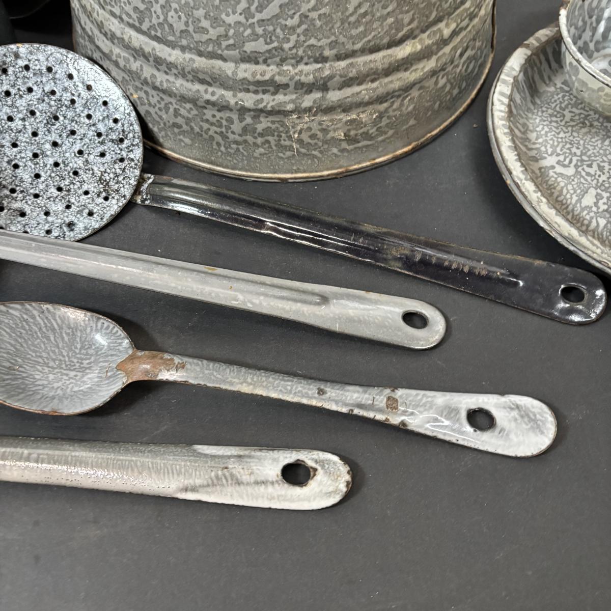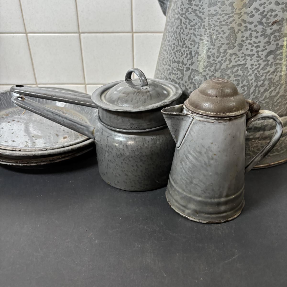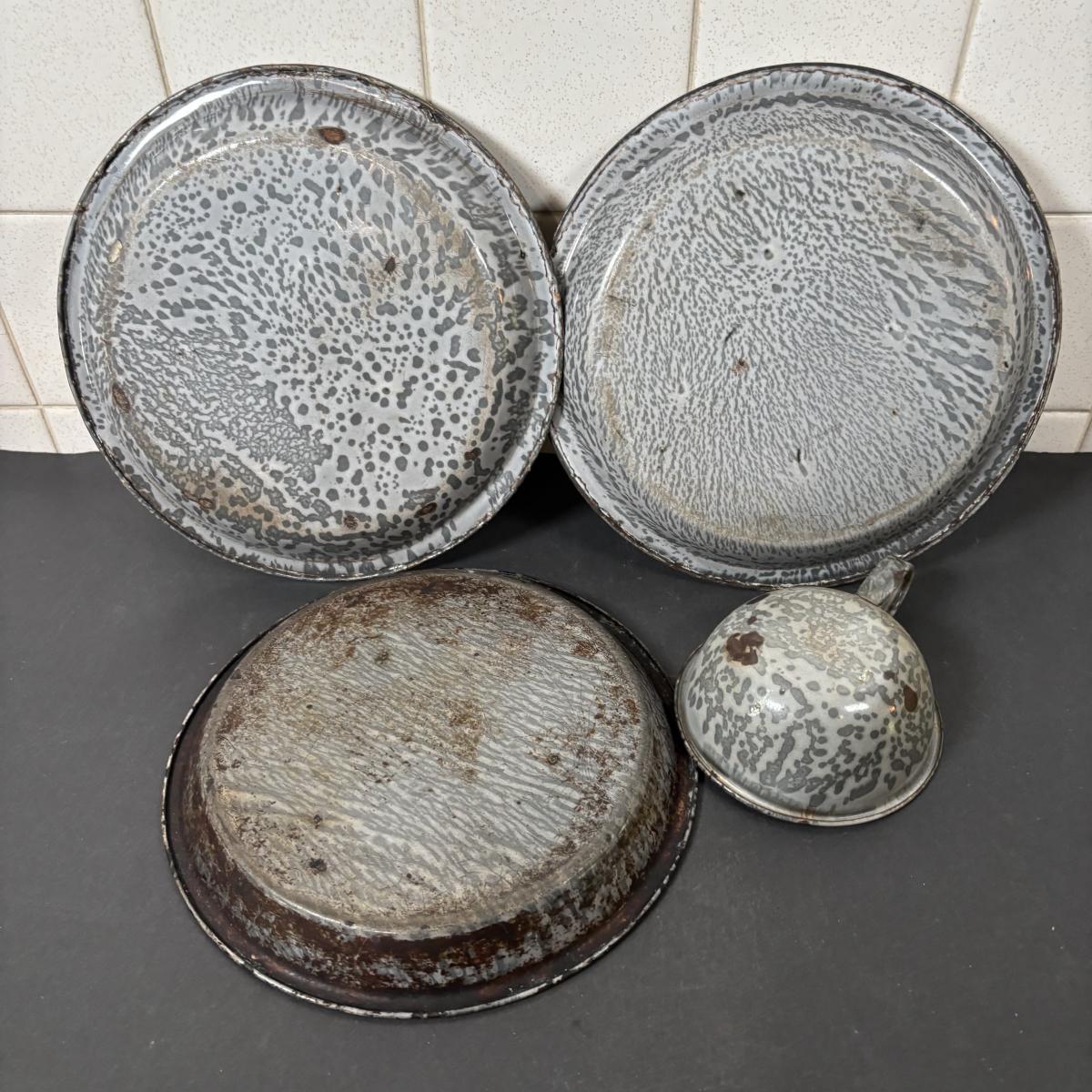 LOT 113: Large Collection of Enamelware in Various Conditions
