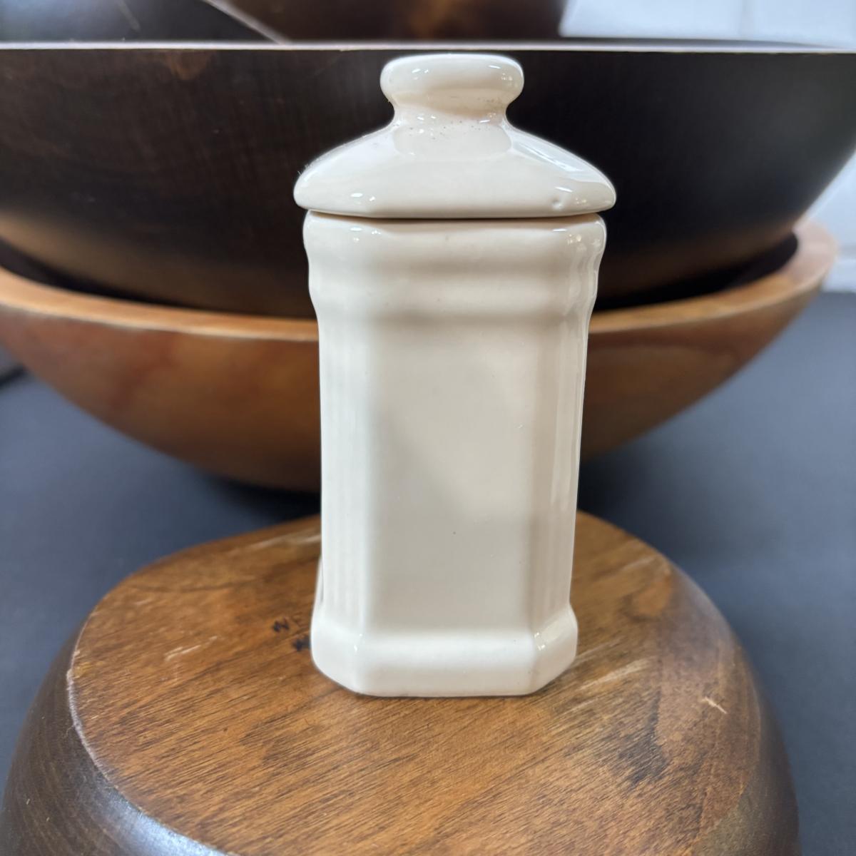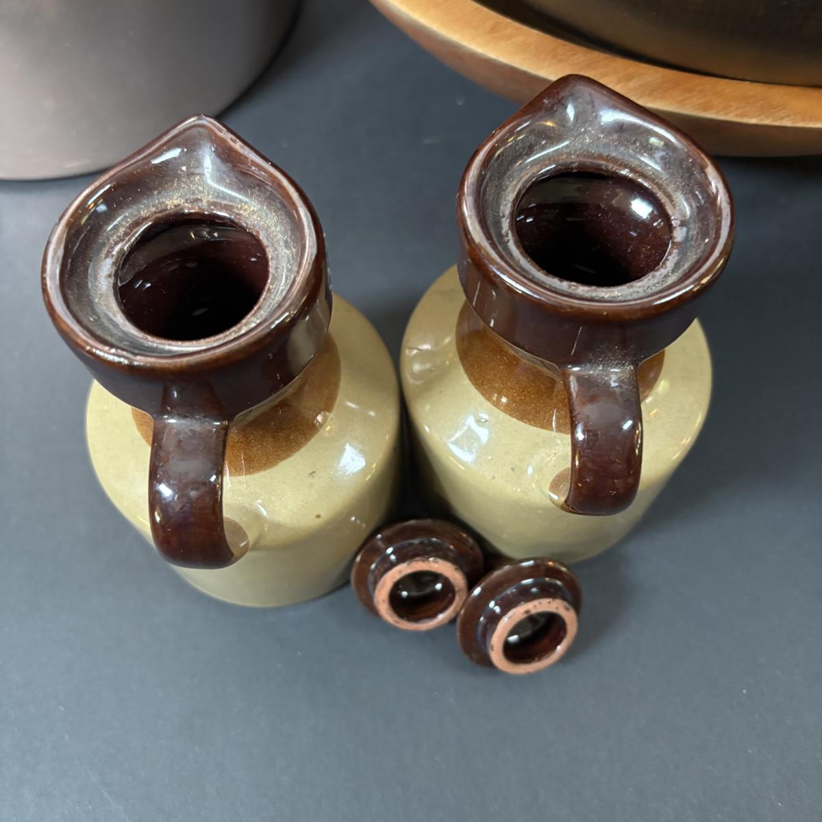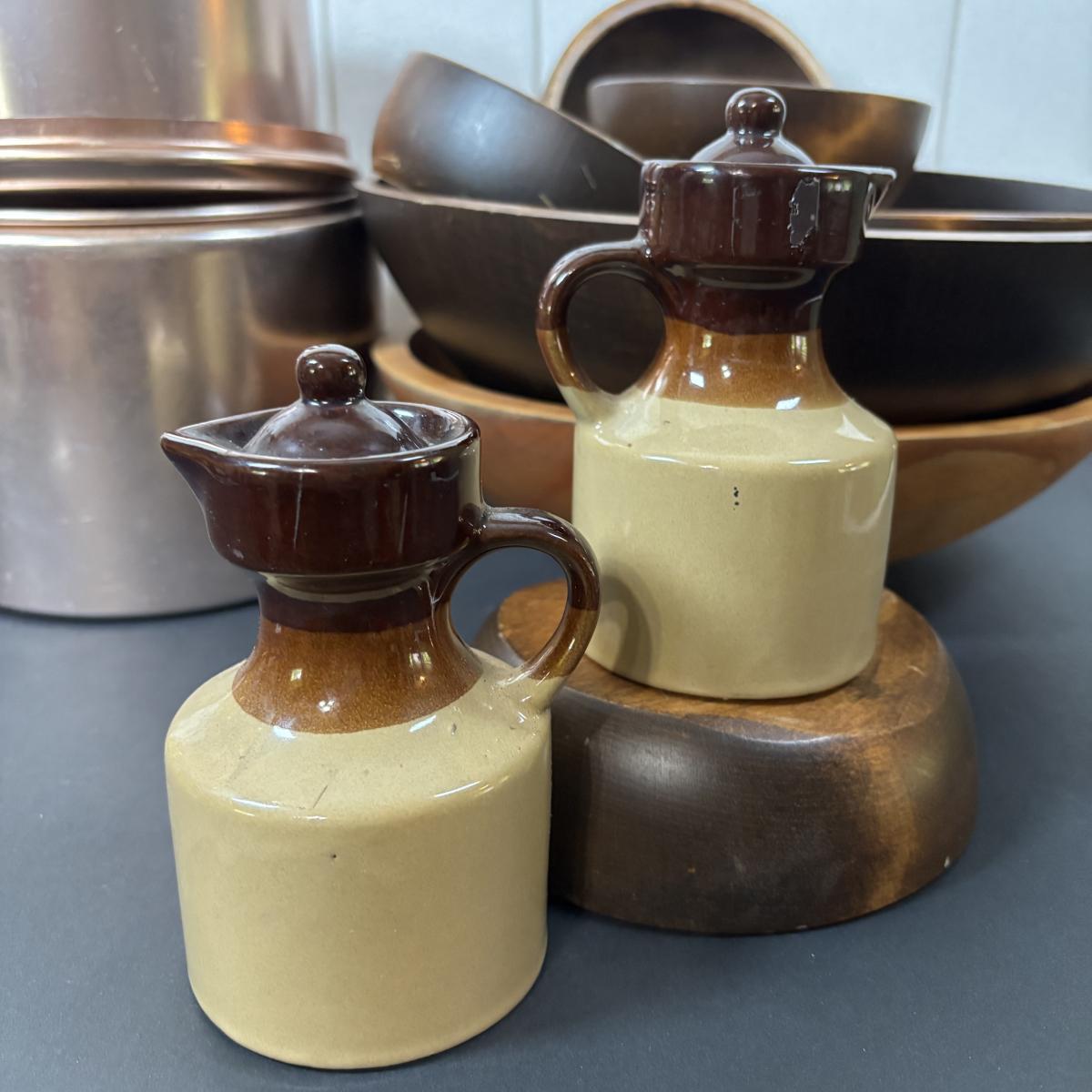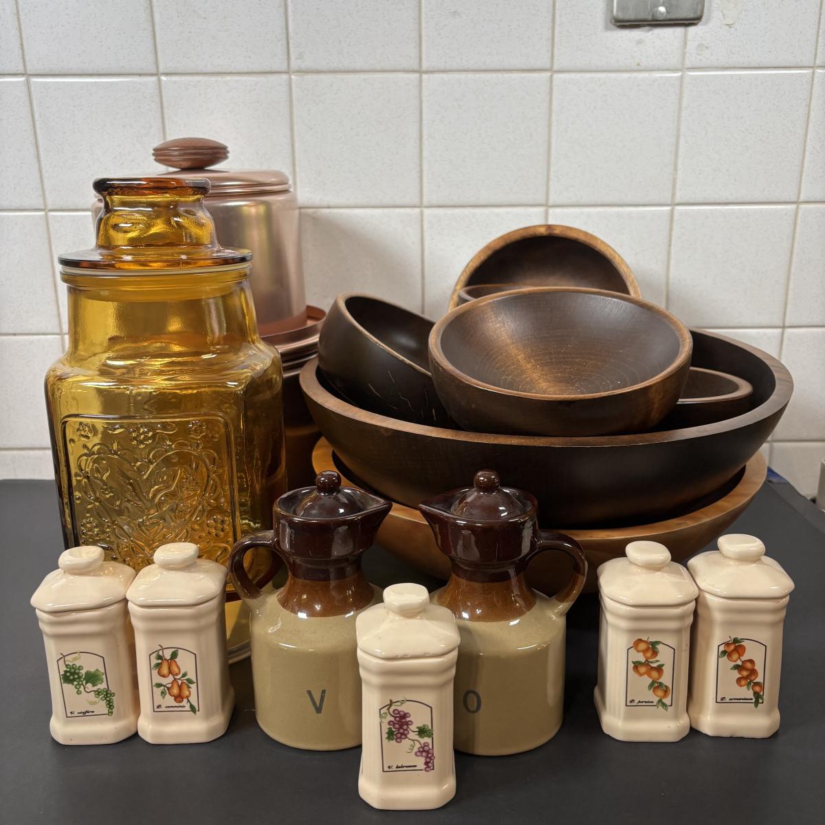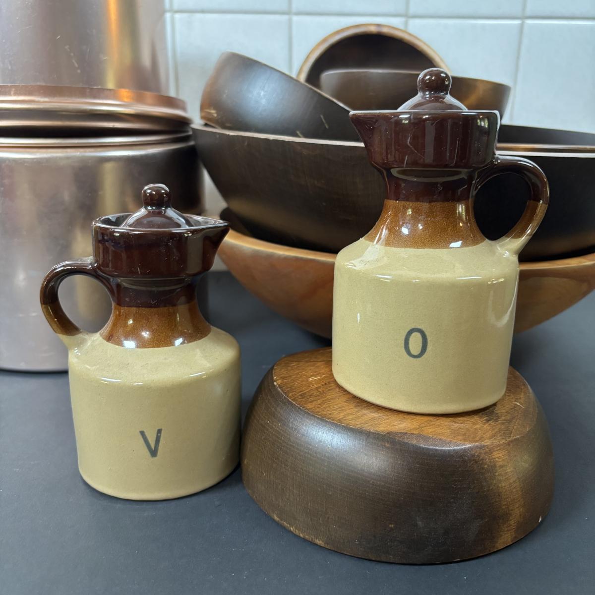 LOT 114: Weston Bowl Mill Bowl Collection, Wheaton Amber Jar, 2-Mirro Rose Gold/Copper Canisters, Elgin Home Spice Jars