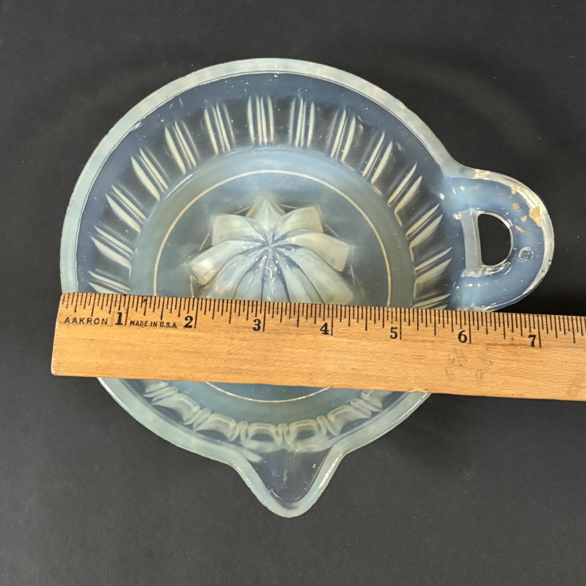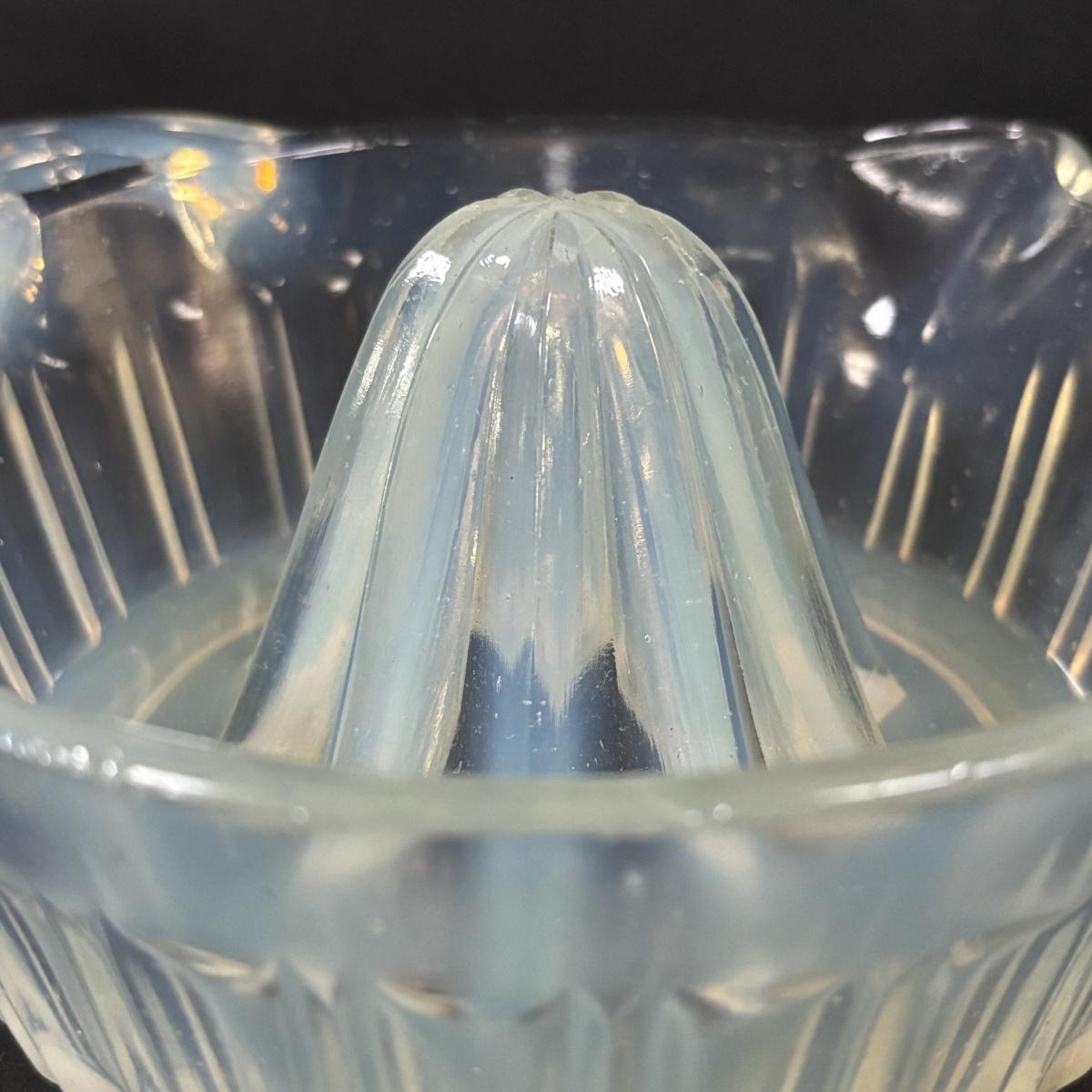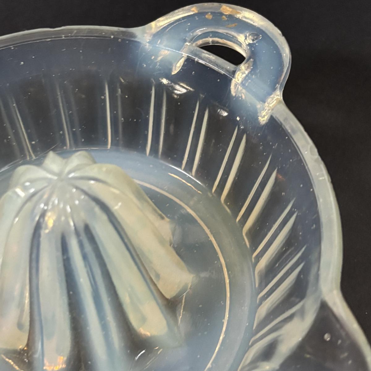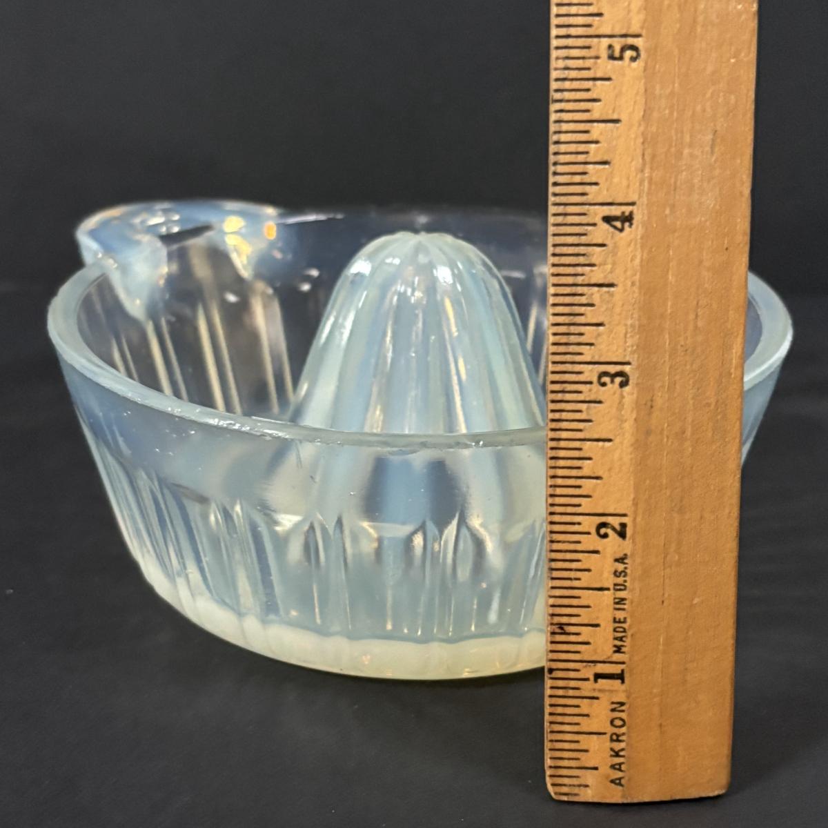 LOT 120: Vintage Opalescent Citrus Reamer/Juicer along with Swanky Swig- Kraft Foods Juice Glasses (6)