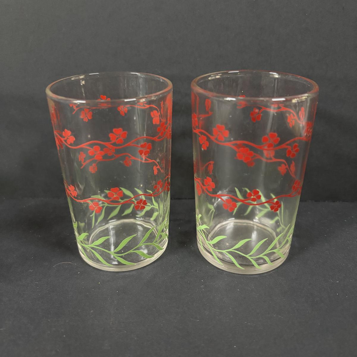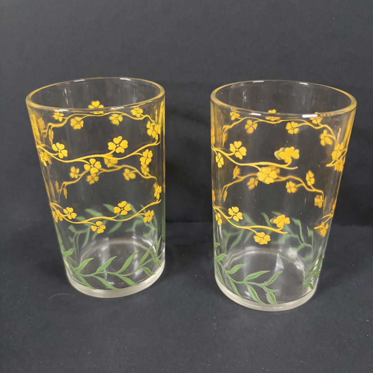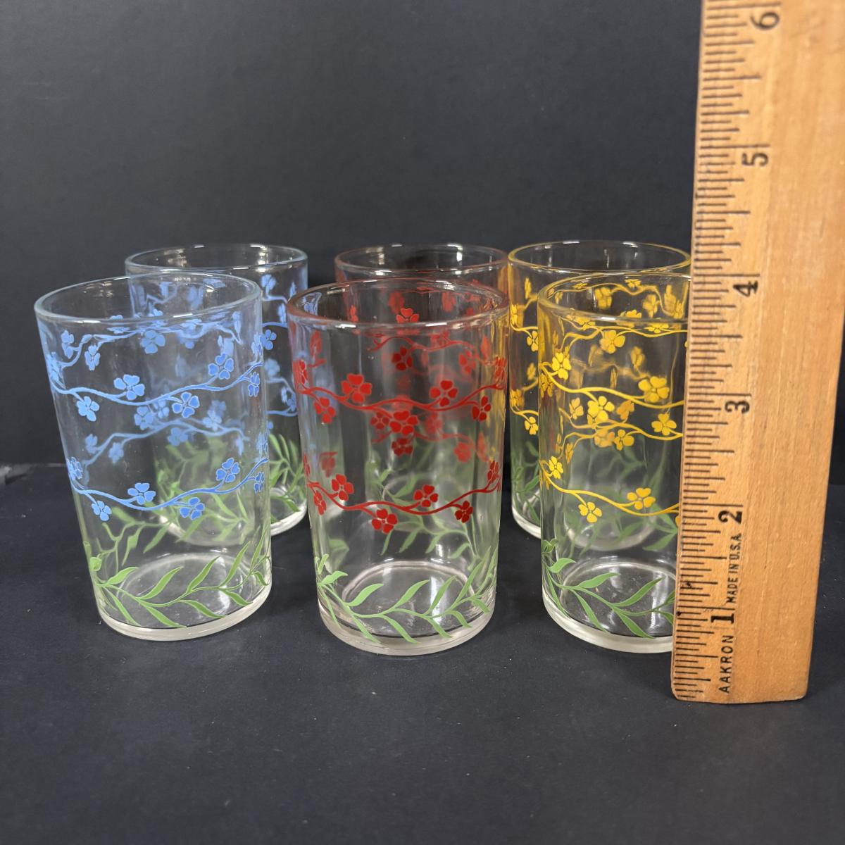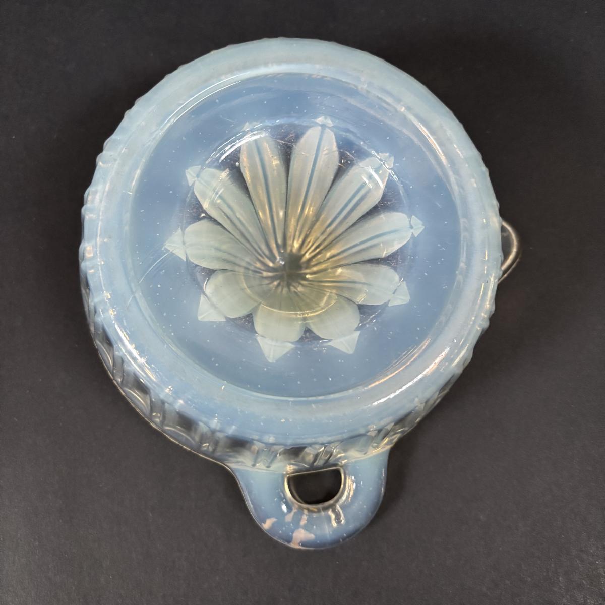 LOT 120: Vintage Opalescent Citrus Reamer/Juicer along with Swanky Swig- Kraft Foods Juice Glasses (6)