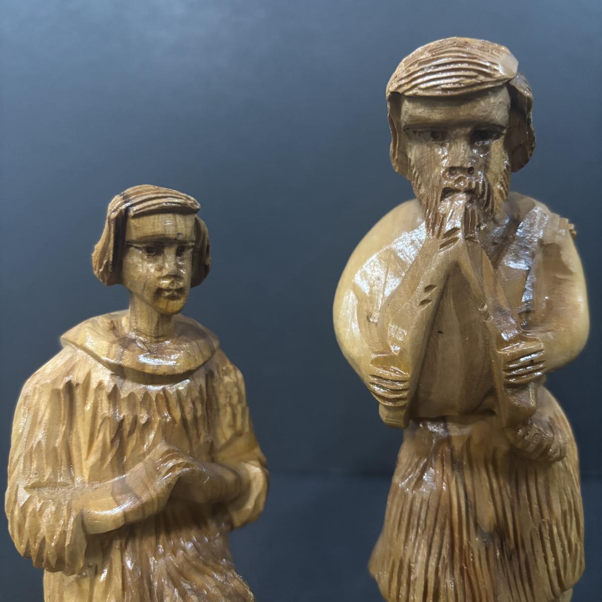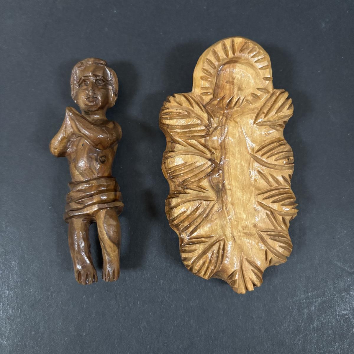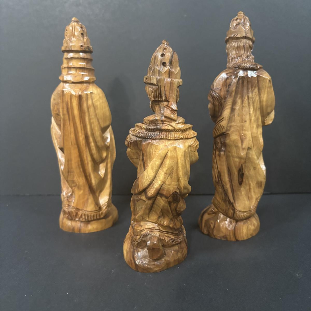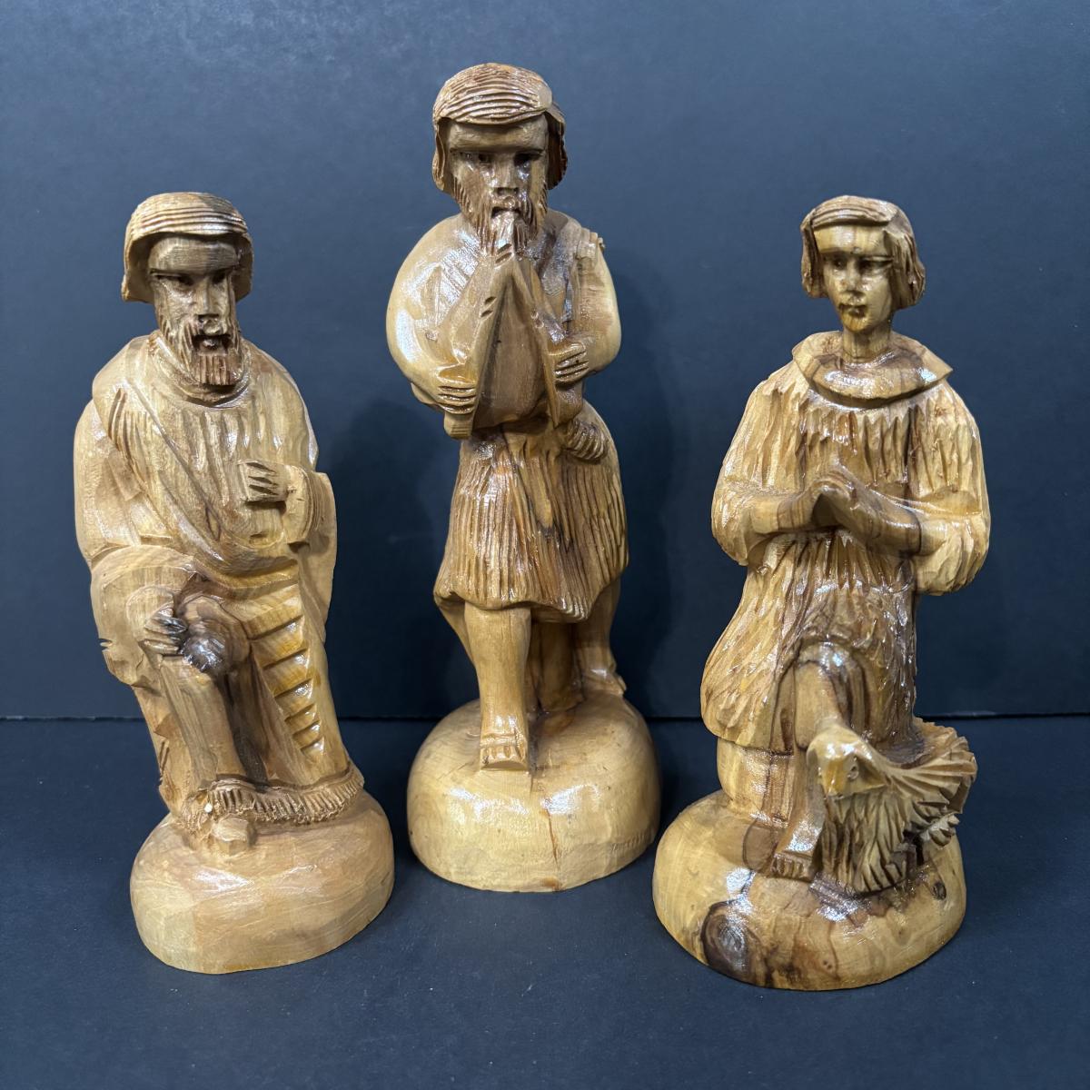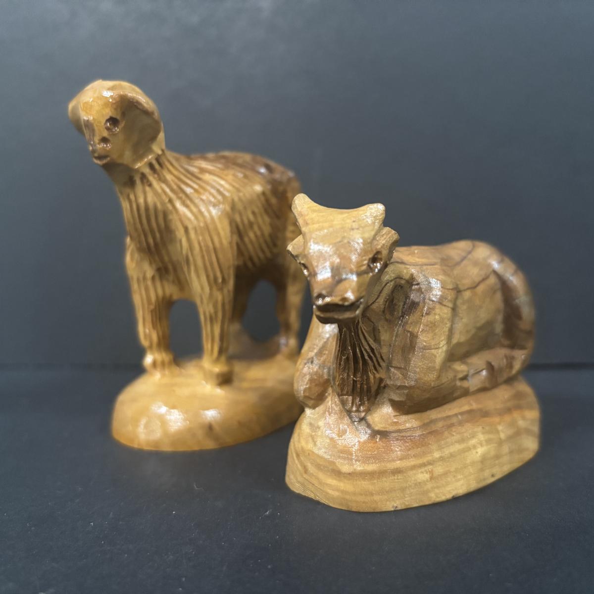 LOT 128: Beautiful 12pc Jerusalem Hand Carved Olive Wood Nativity along with the Creche
