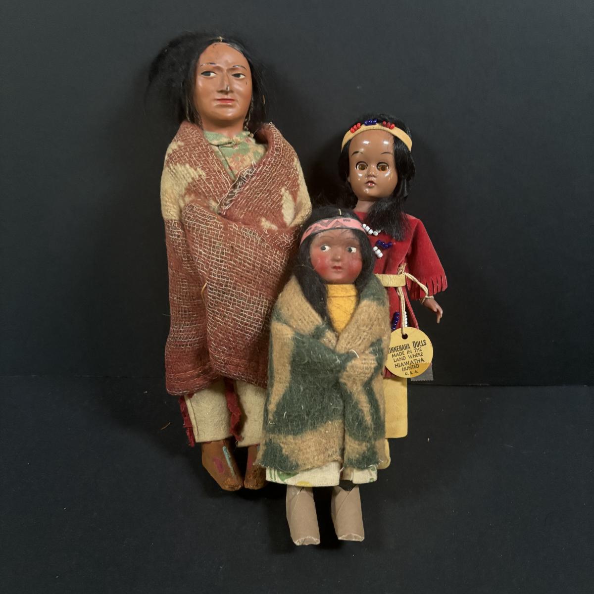 LOT 133: : Vintage Native American Indian Skookum Dolls & Minnehaha Hiawatha Doll