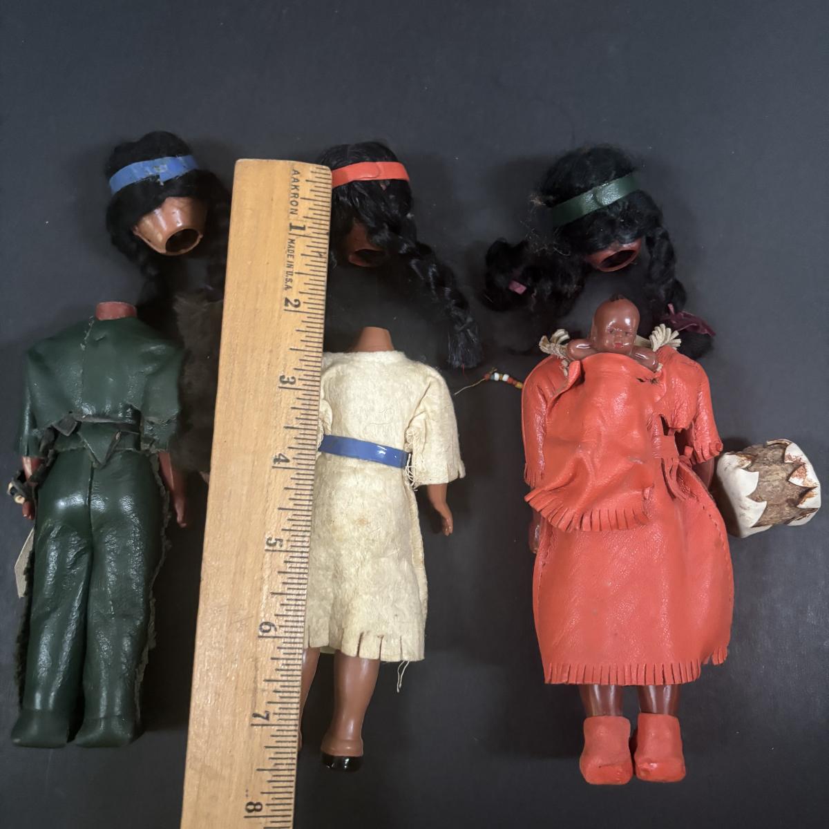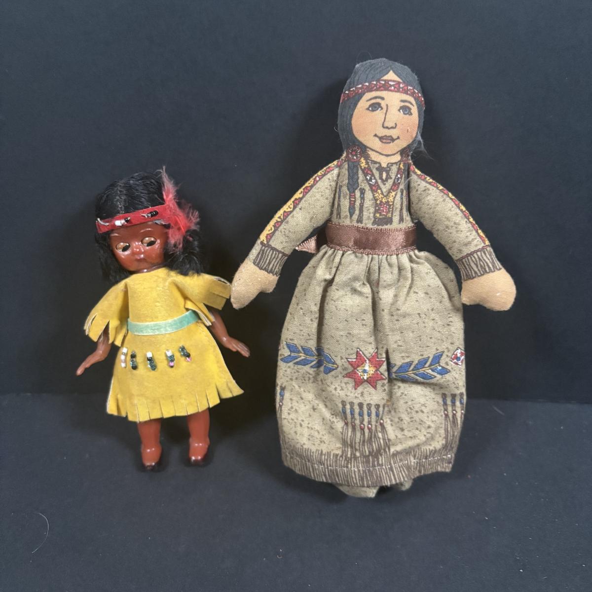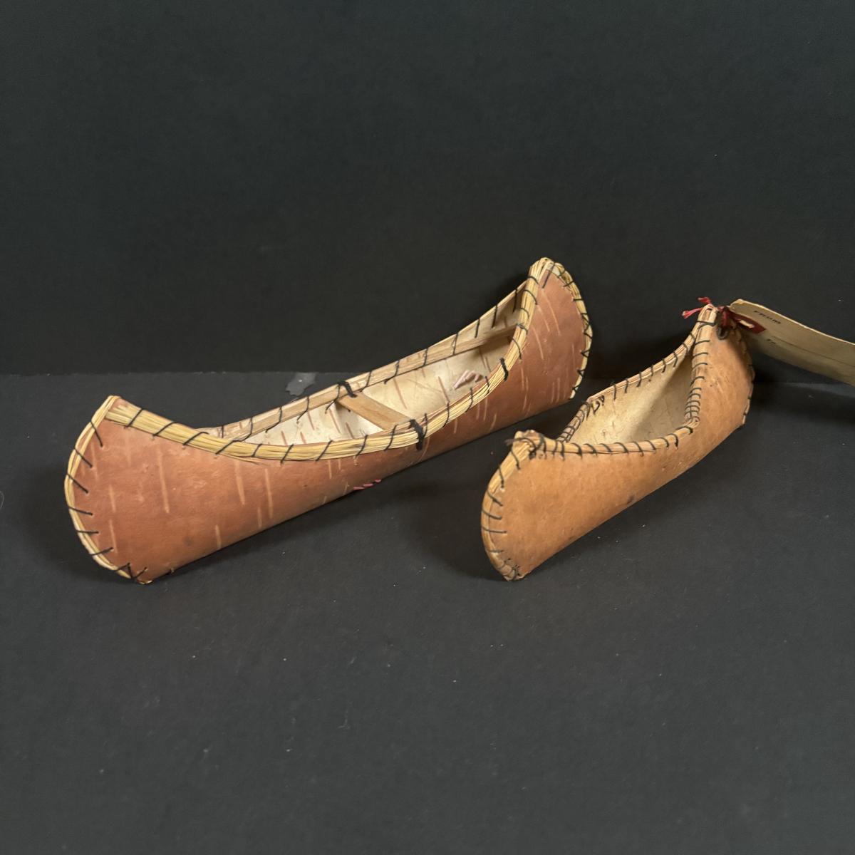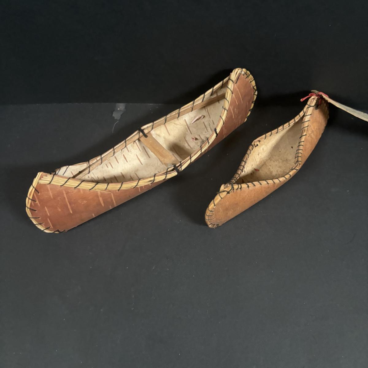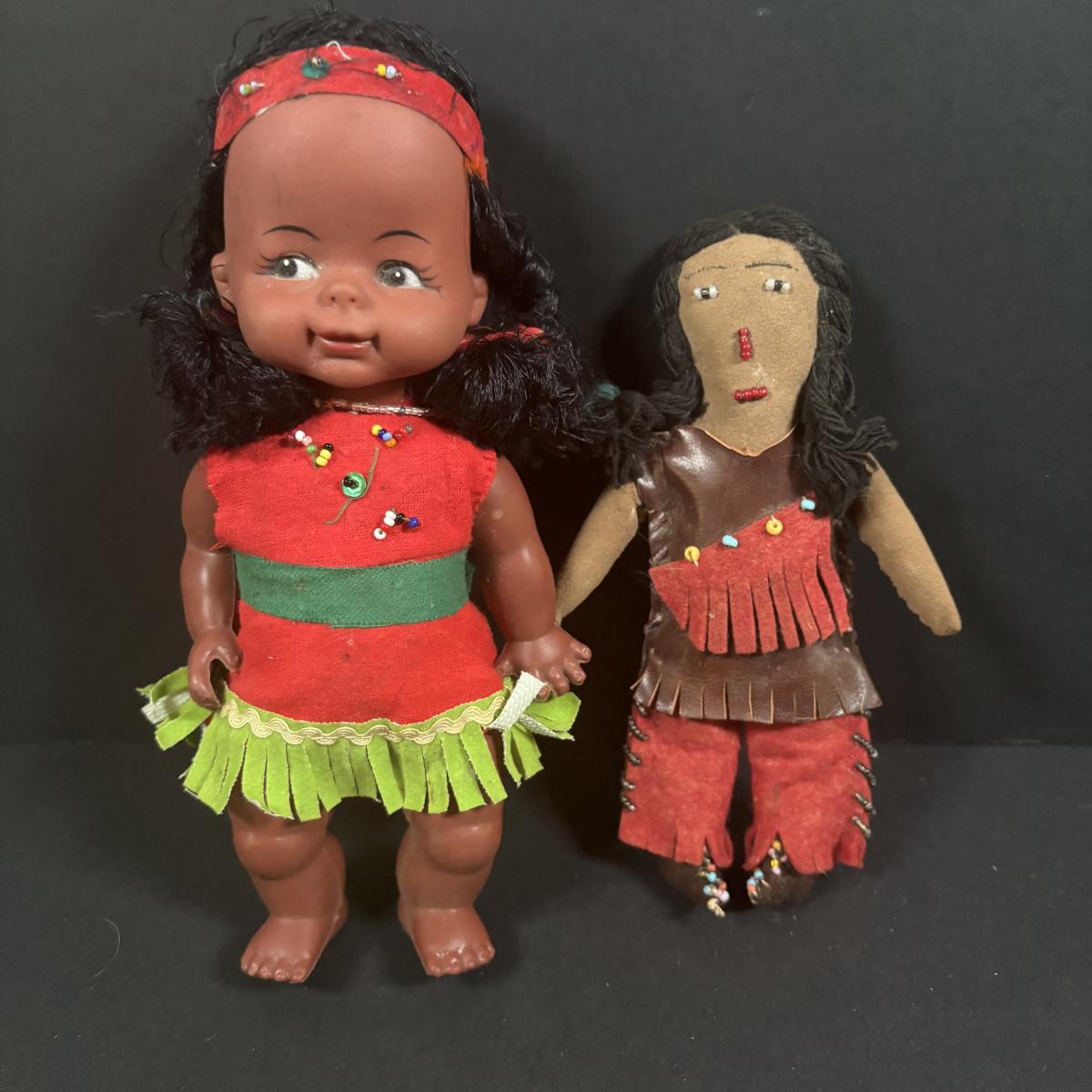 LOT 135: Vintage Native American Indian Dolls, Dolls for Repair, Skookum Doll, Handcrafted Replica Birch Canoes & Beaded Necklaces