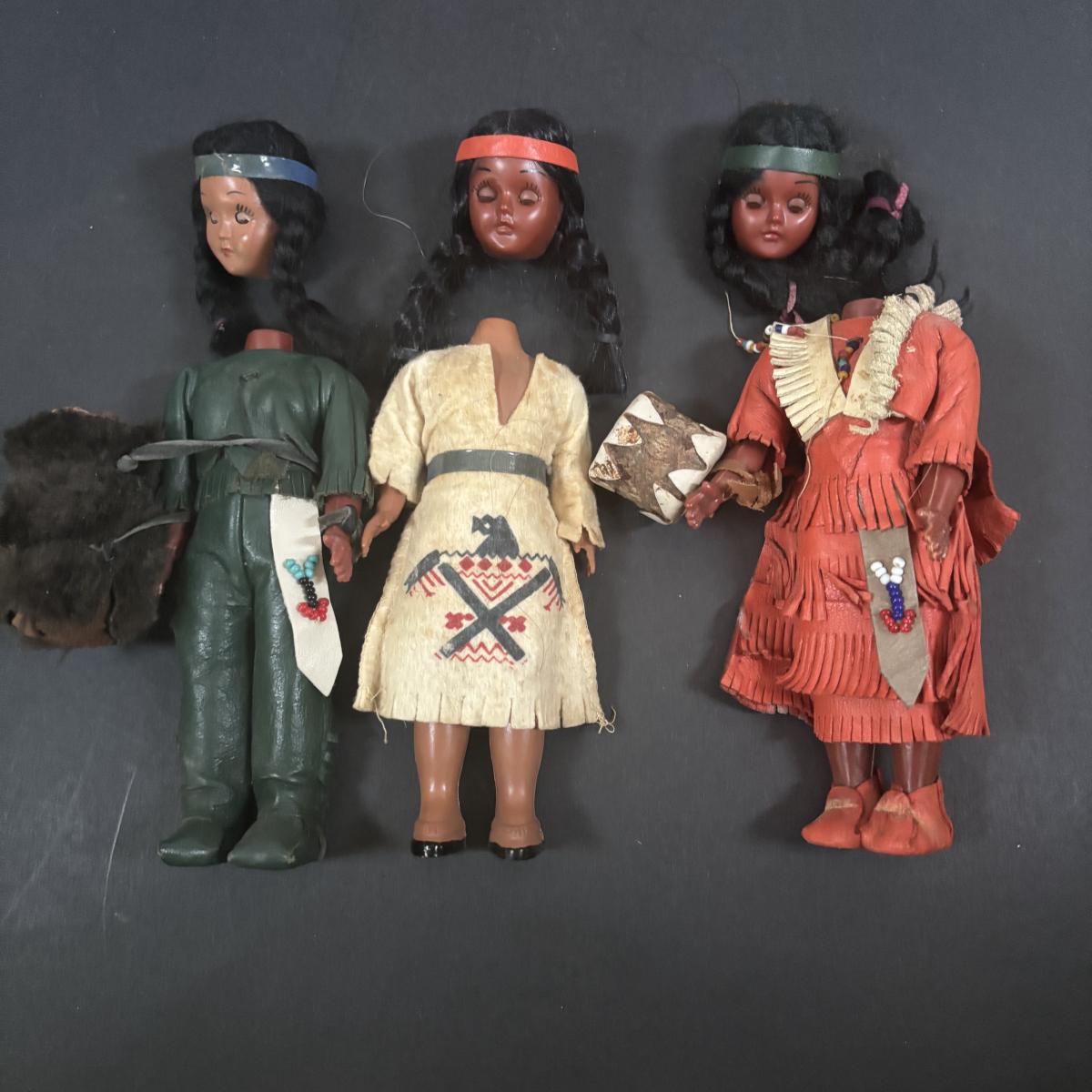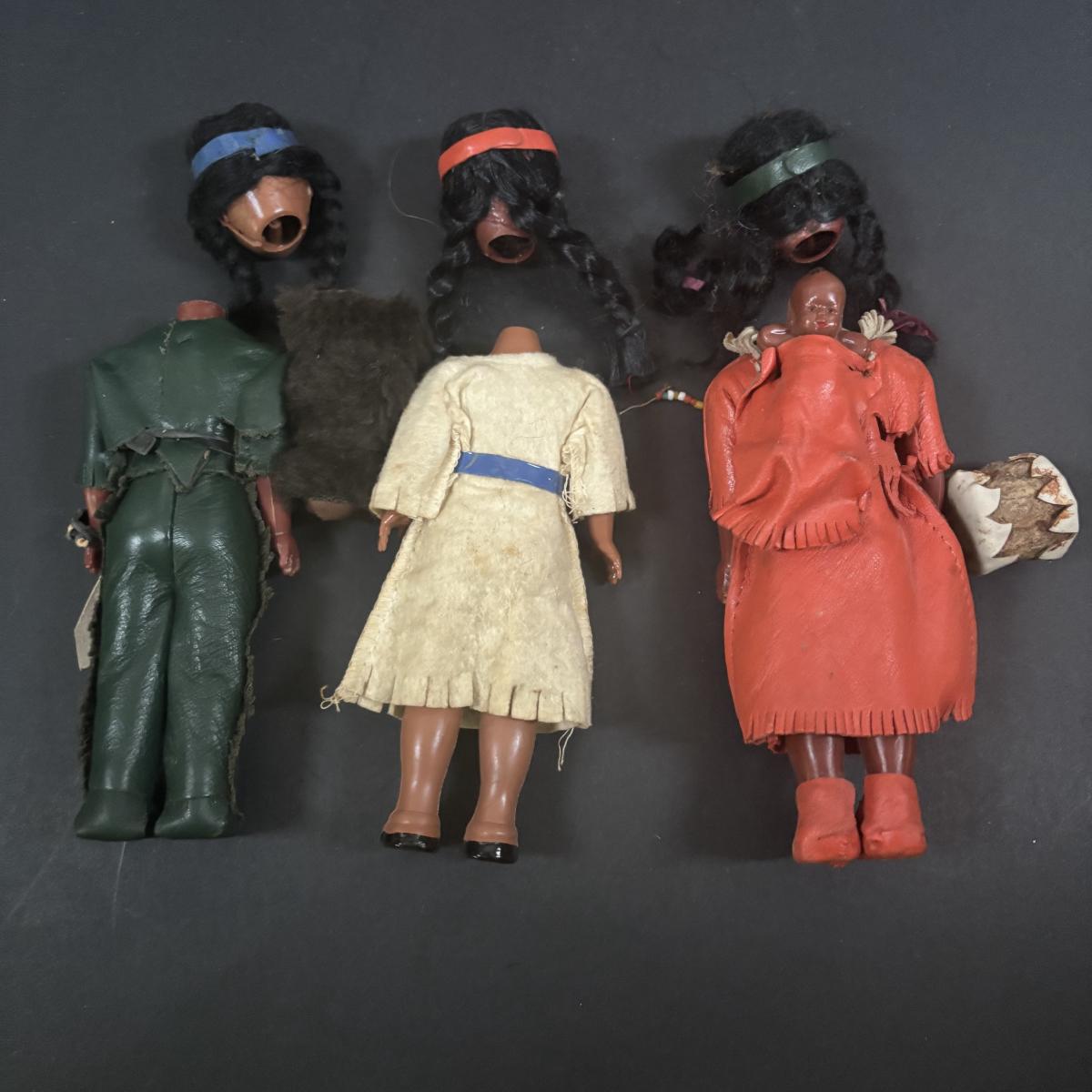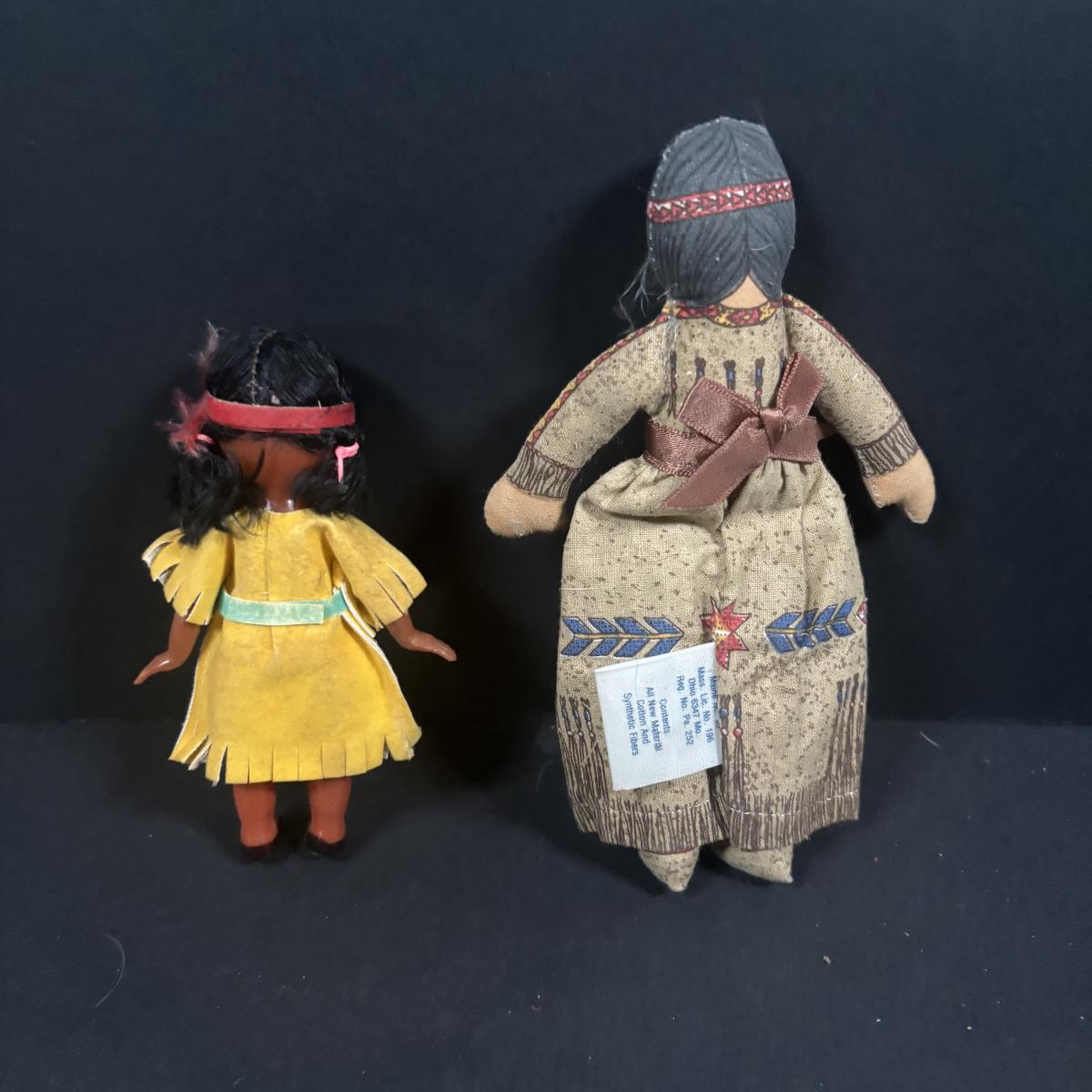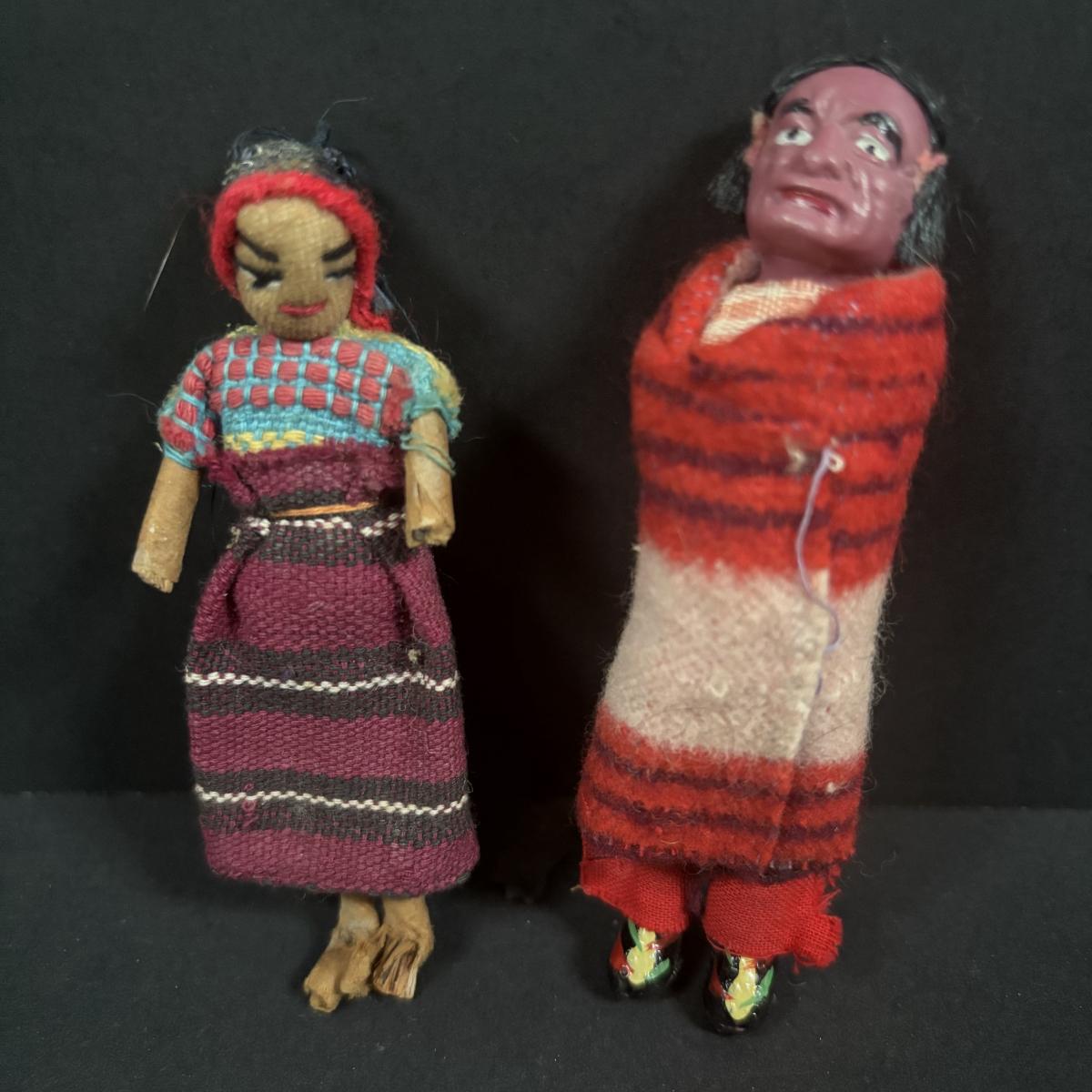 LOT 135: Vintage Native American Indian Dolls, Dolls for Repair, Skookum Doll, Handcrafted Replica Birch Canoes & Beaded Necklaces
