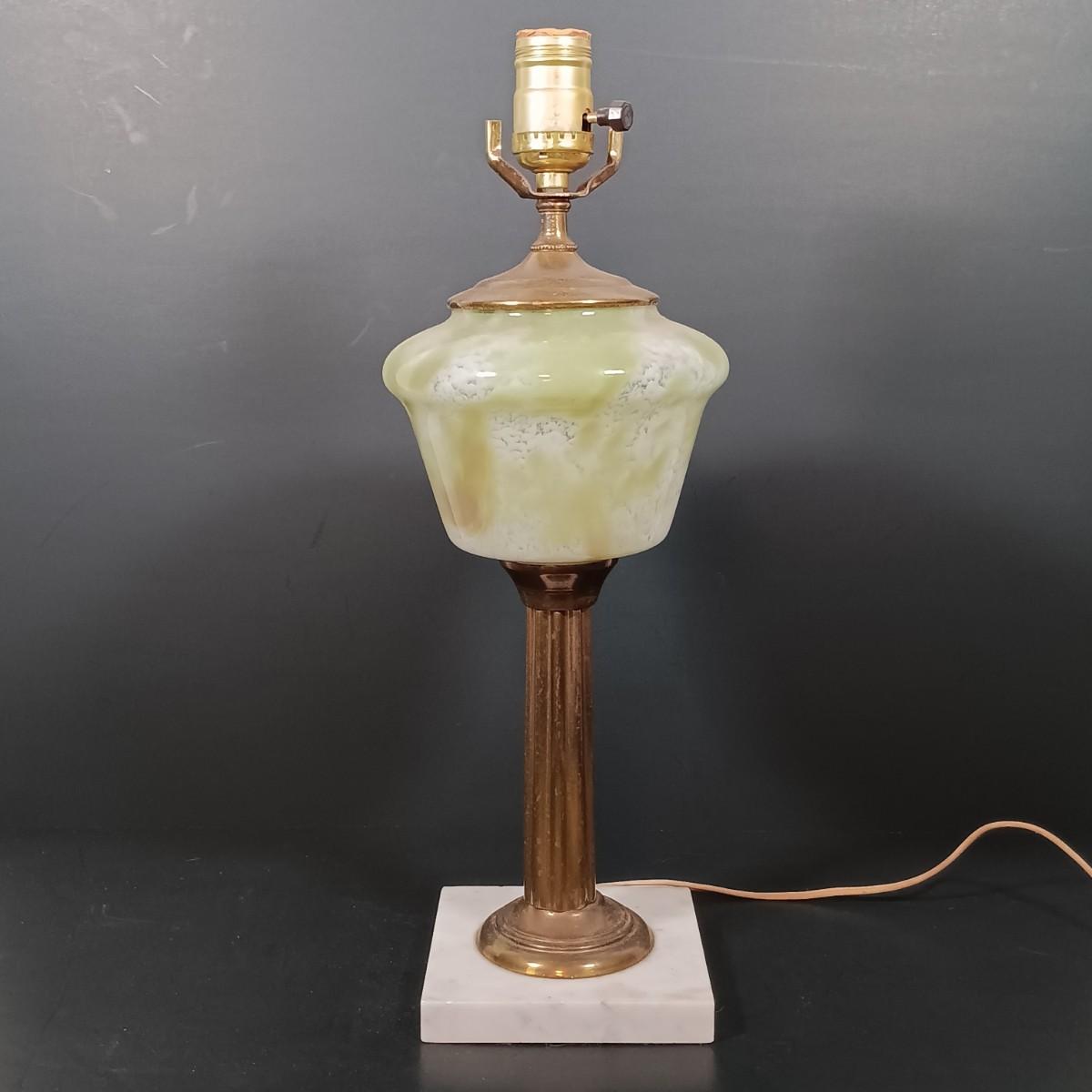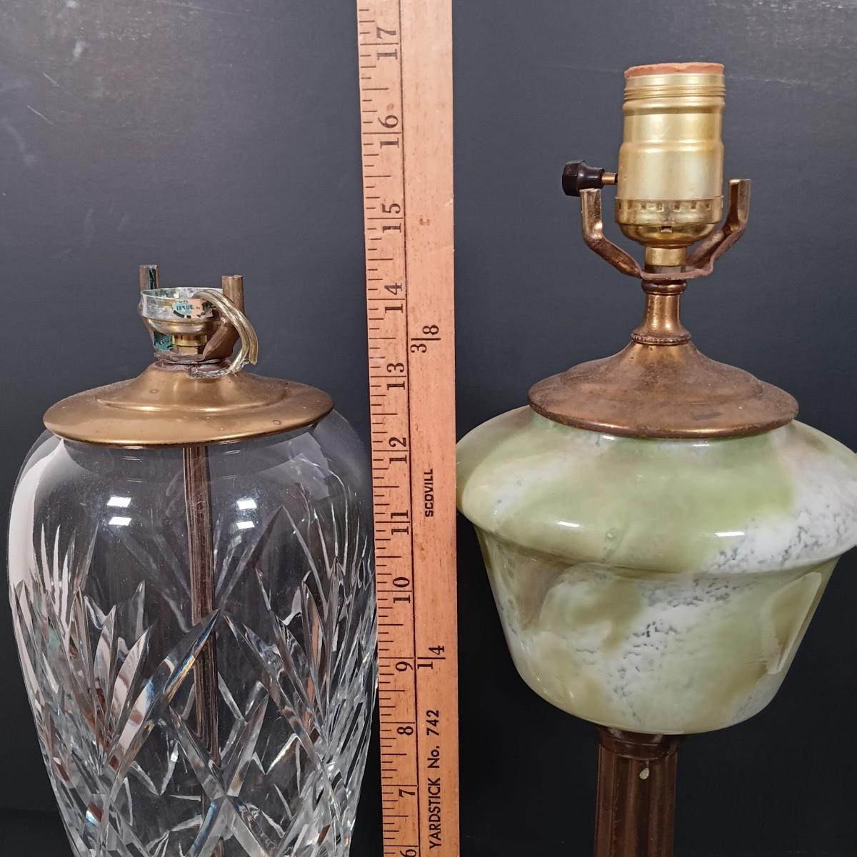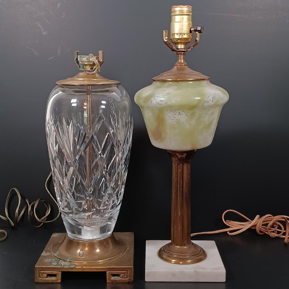 LOT 145: Green Glass Lamp with Marble Base & Crystal and Brass Lamp