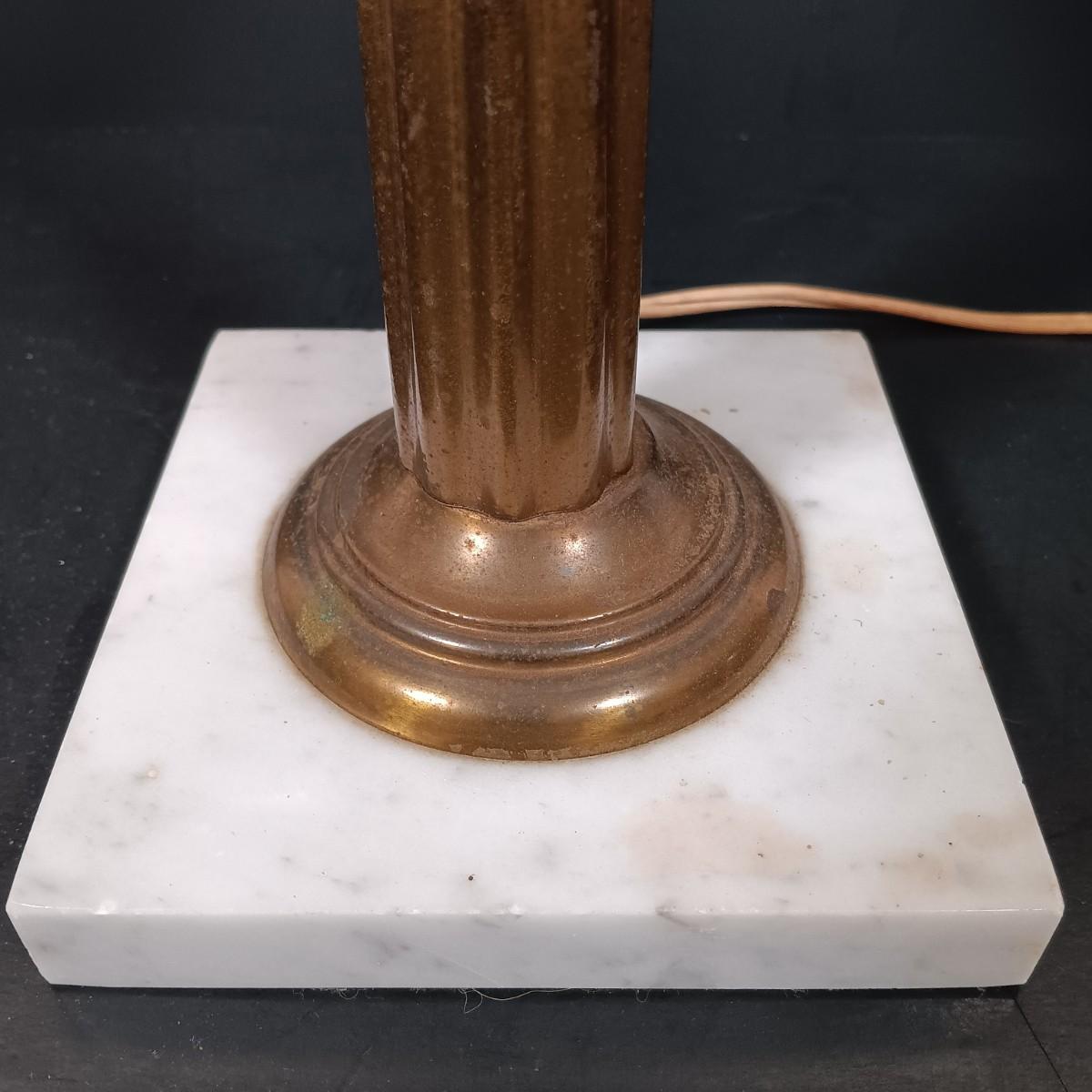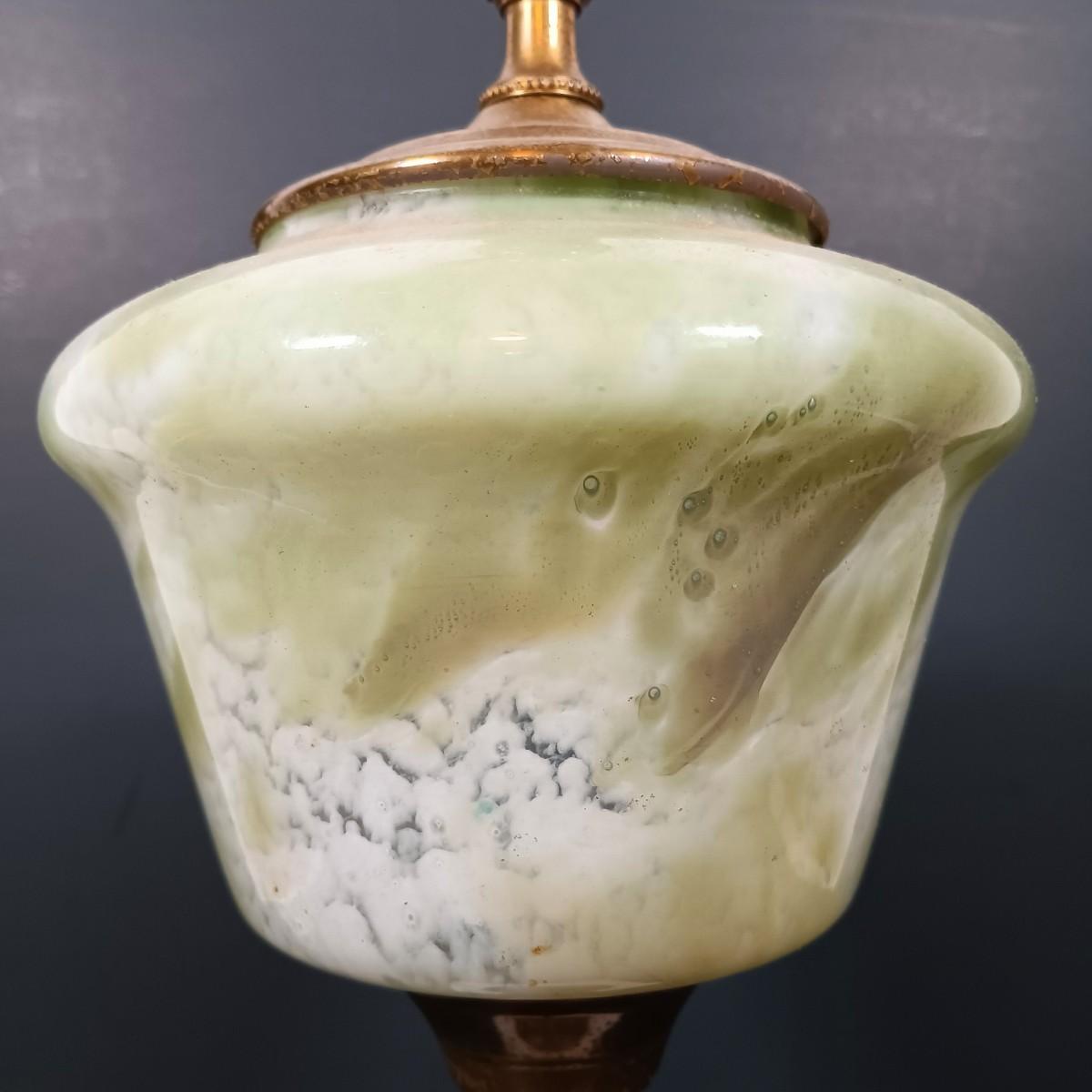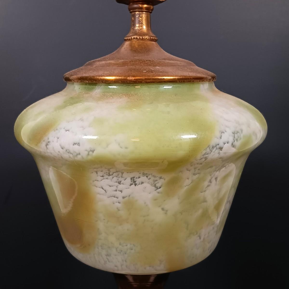LOT 145: Green Glass Lamp with Marble Base & Crystal and Brass Lamp