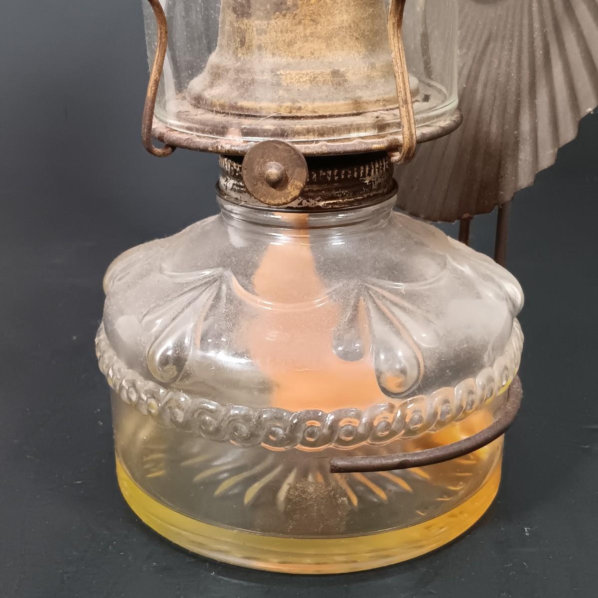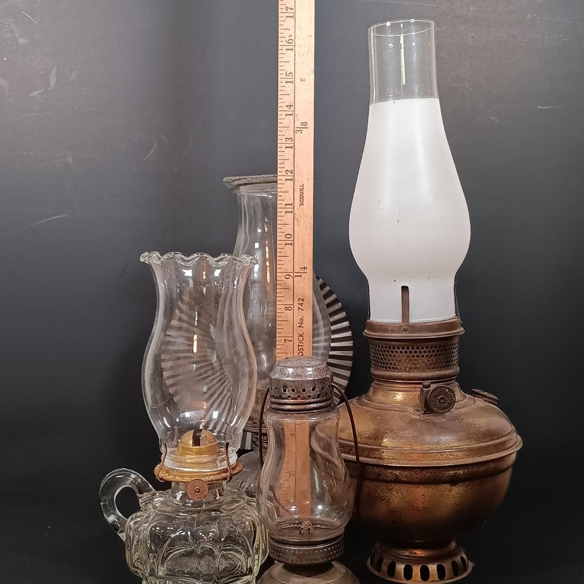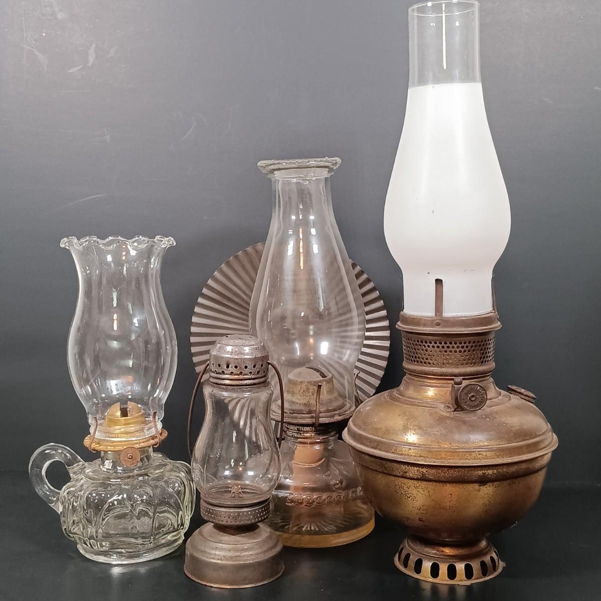 LOT 150: Skaters Oil Lantern, Finger Oil Lamp, Glass Lamp with Reflector & Metal Hurricane Lamp
