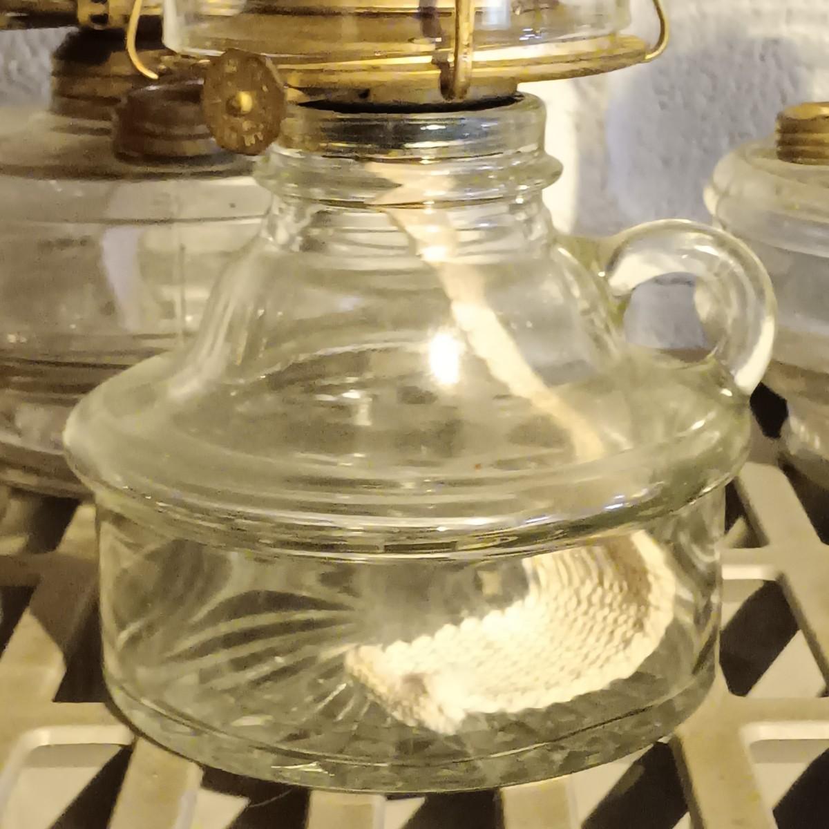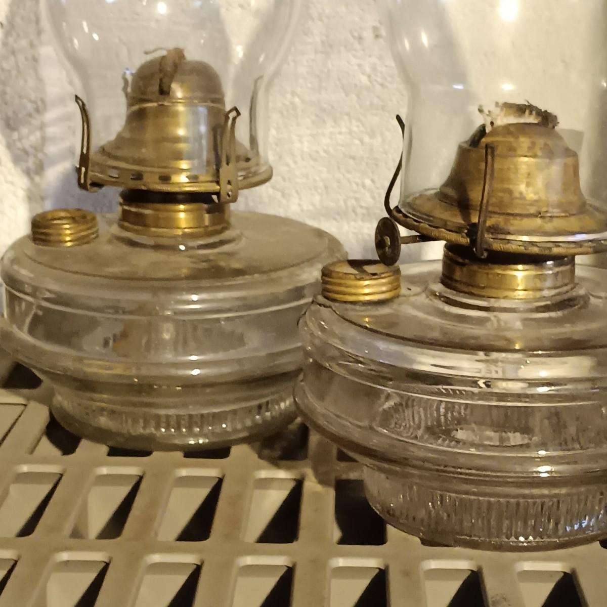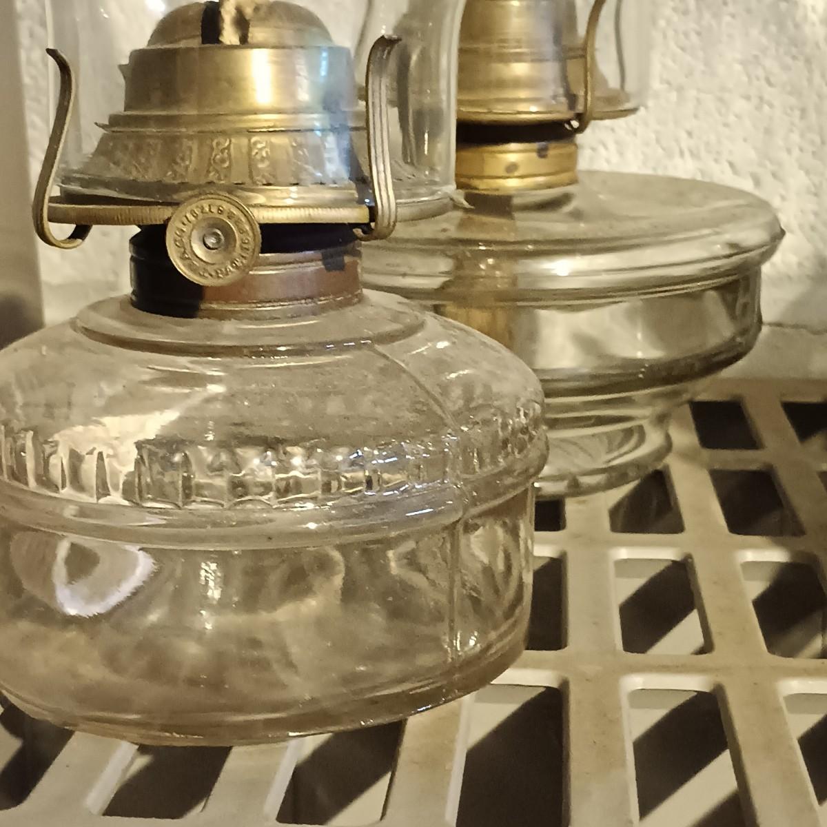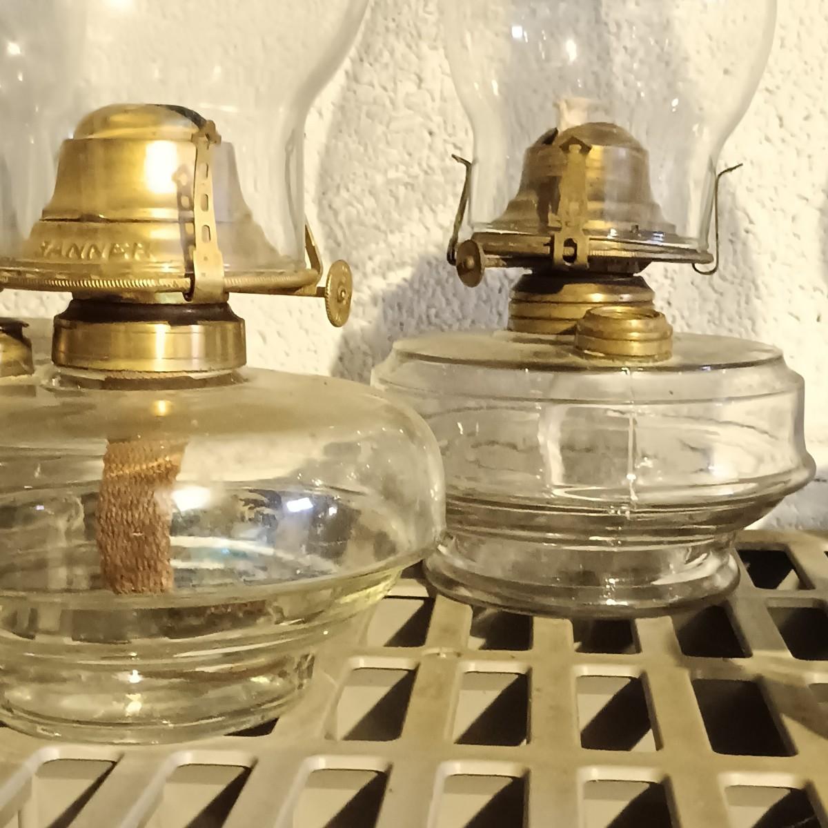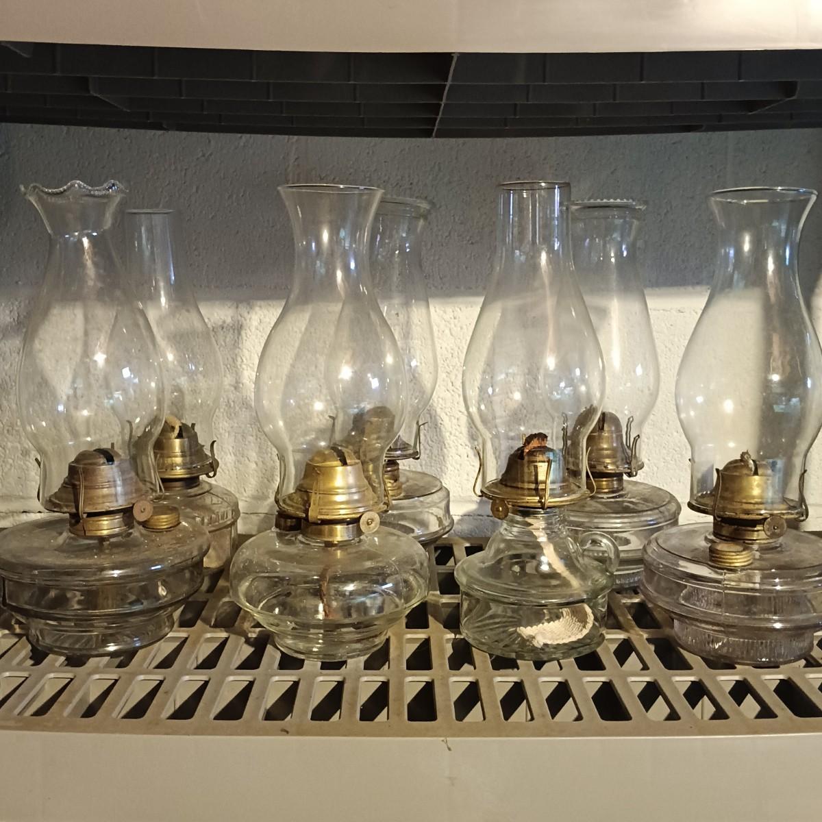 LOT 159: Collection of Vintage Glass Oil Lamps - Banner, P&A, Eagle & More