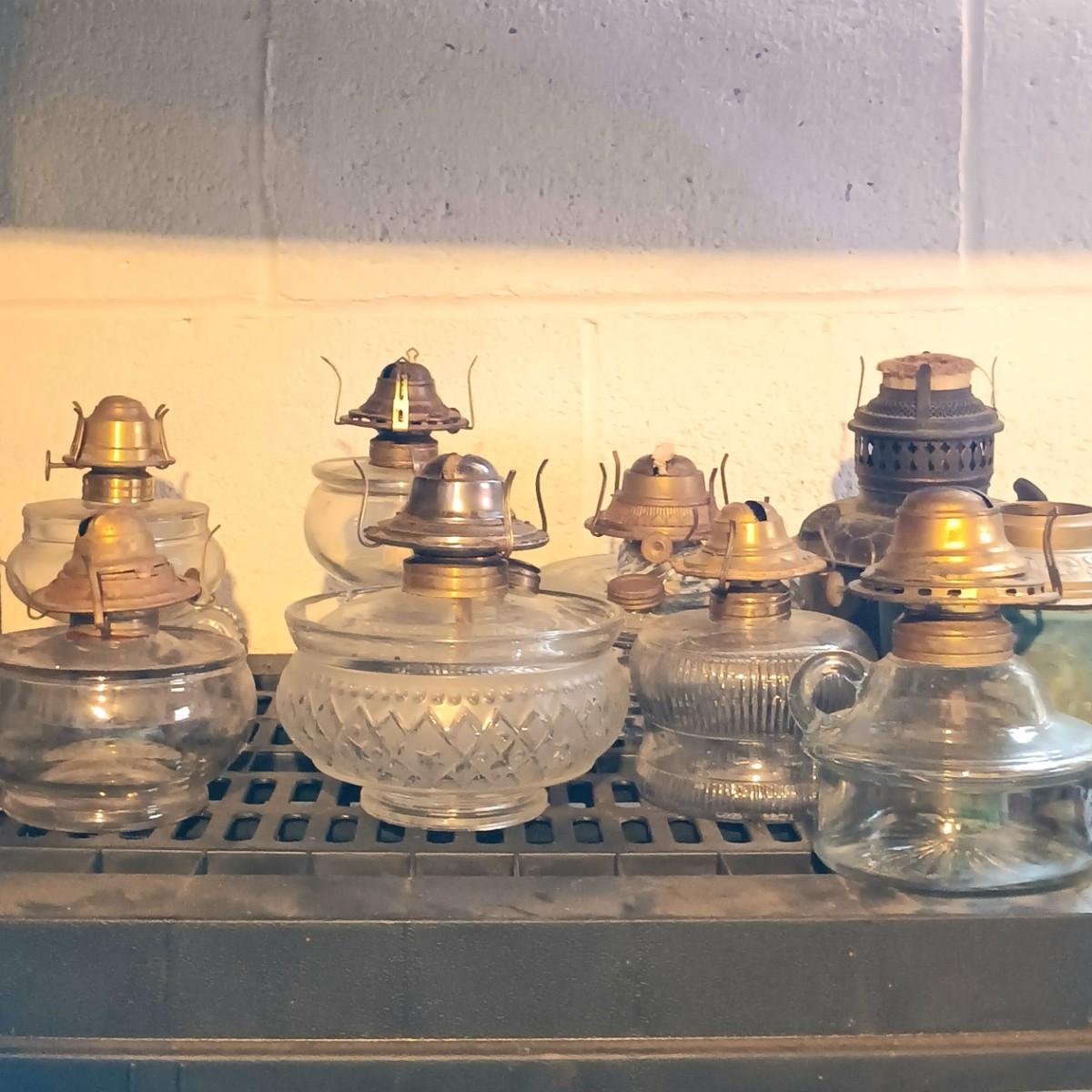 LOT 161: Collection of Vintage Glass and Metal Oil Lamps - Rayo, Eagle, Queen Anne & More