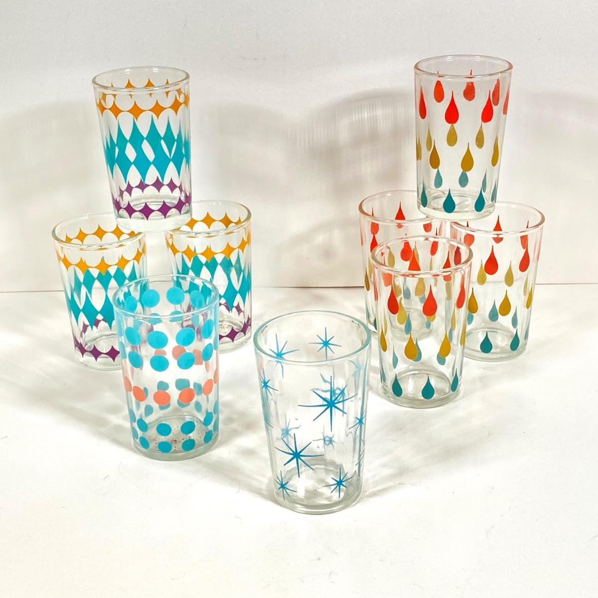 LOT 174: Collection of Colorful Vintage Juice Glasses