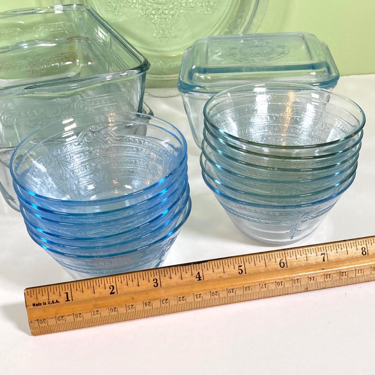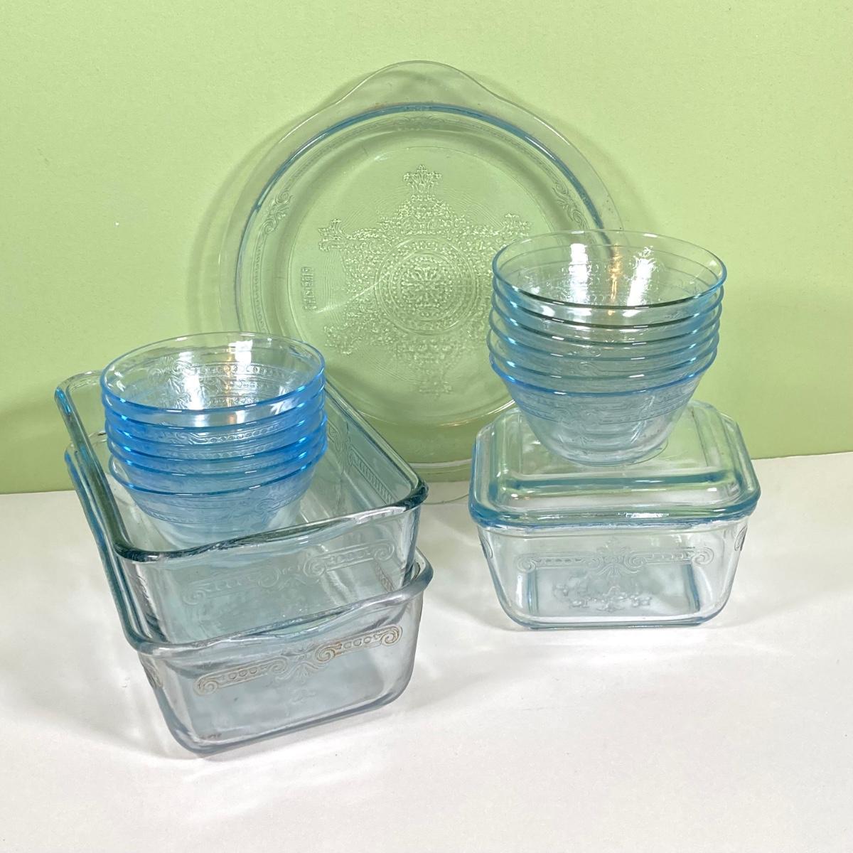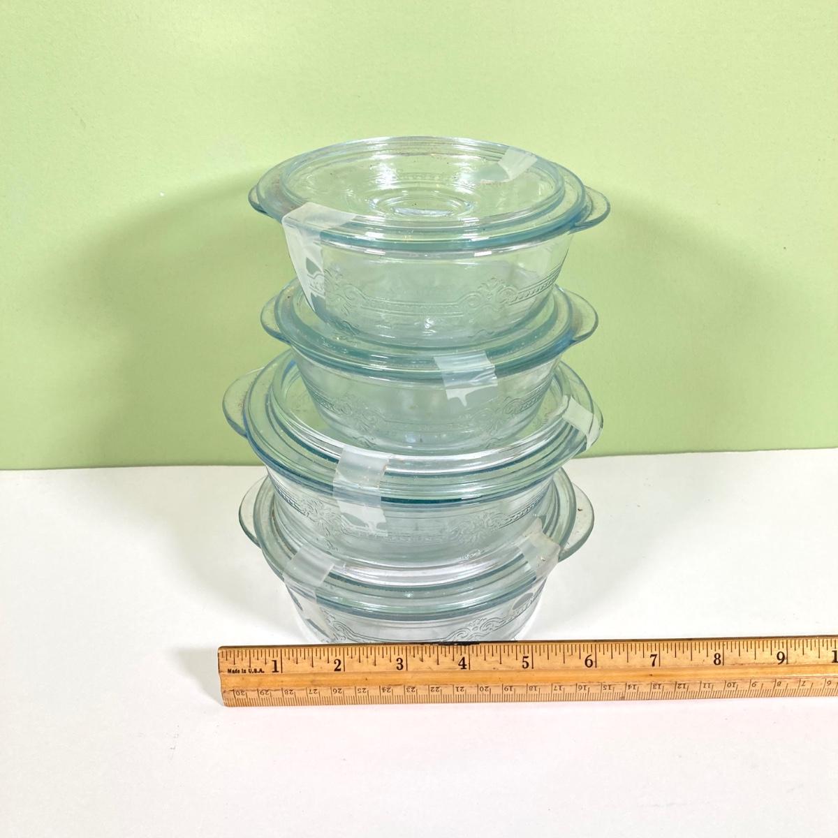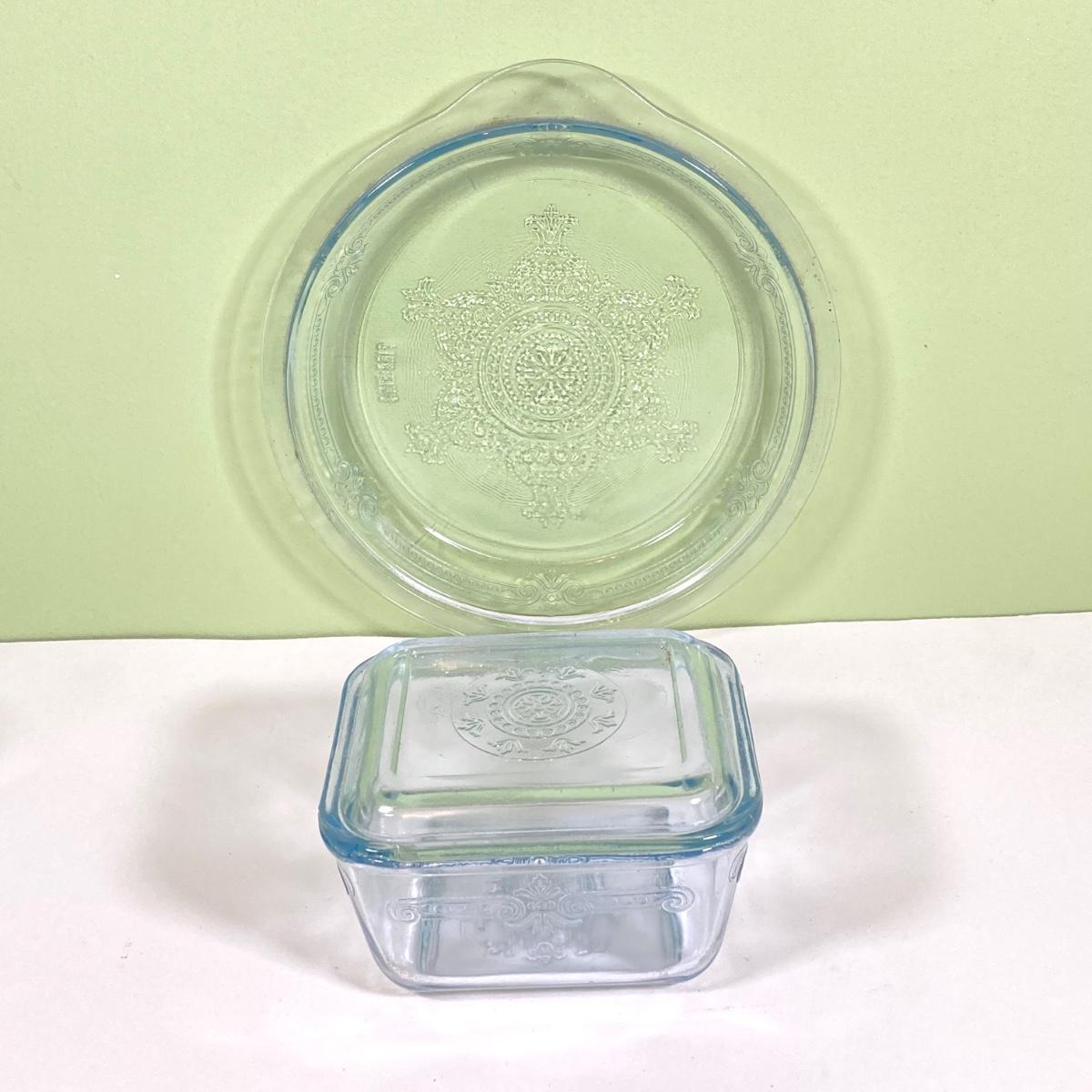 LOT 180: Fire King Oven Glass Collection - 2 Rectangular Casserole Dishes, Small Lidded Rectangular Refrigerator Dish, Plate, Bowl, Custard Cups, Lidded Casserole Dishes and 2 Lids