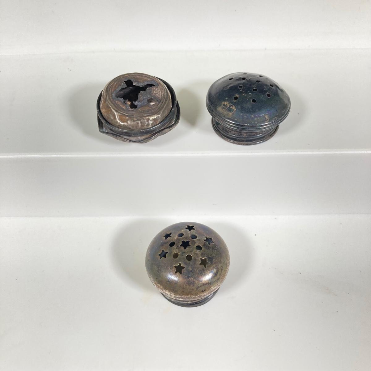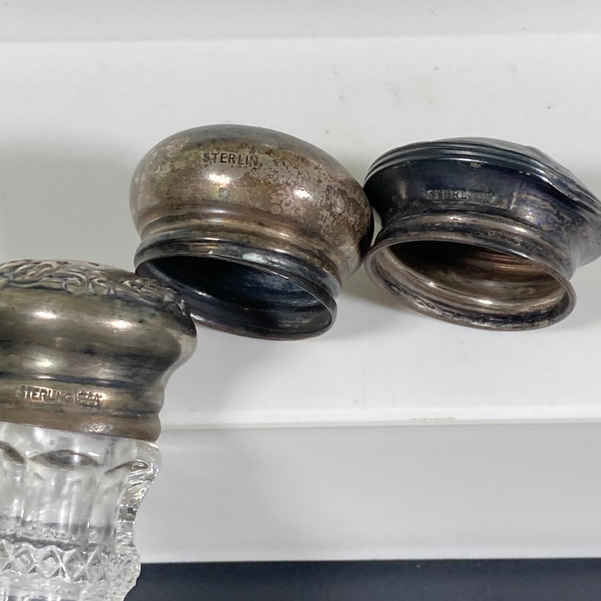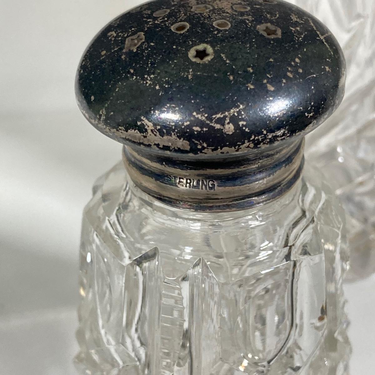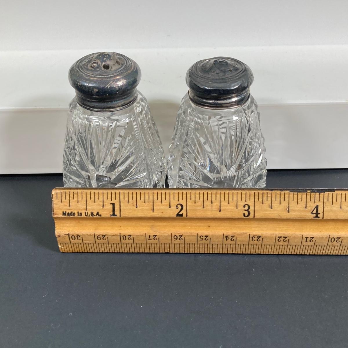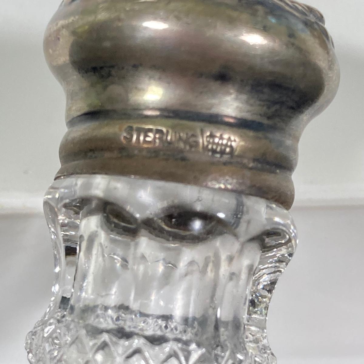 LOT 183: Large Collection of Glass Salt and Pepper Shakers with Sterling Silver Tops