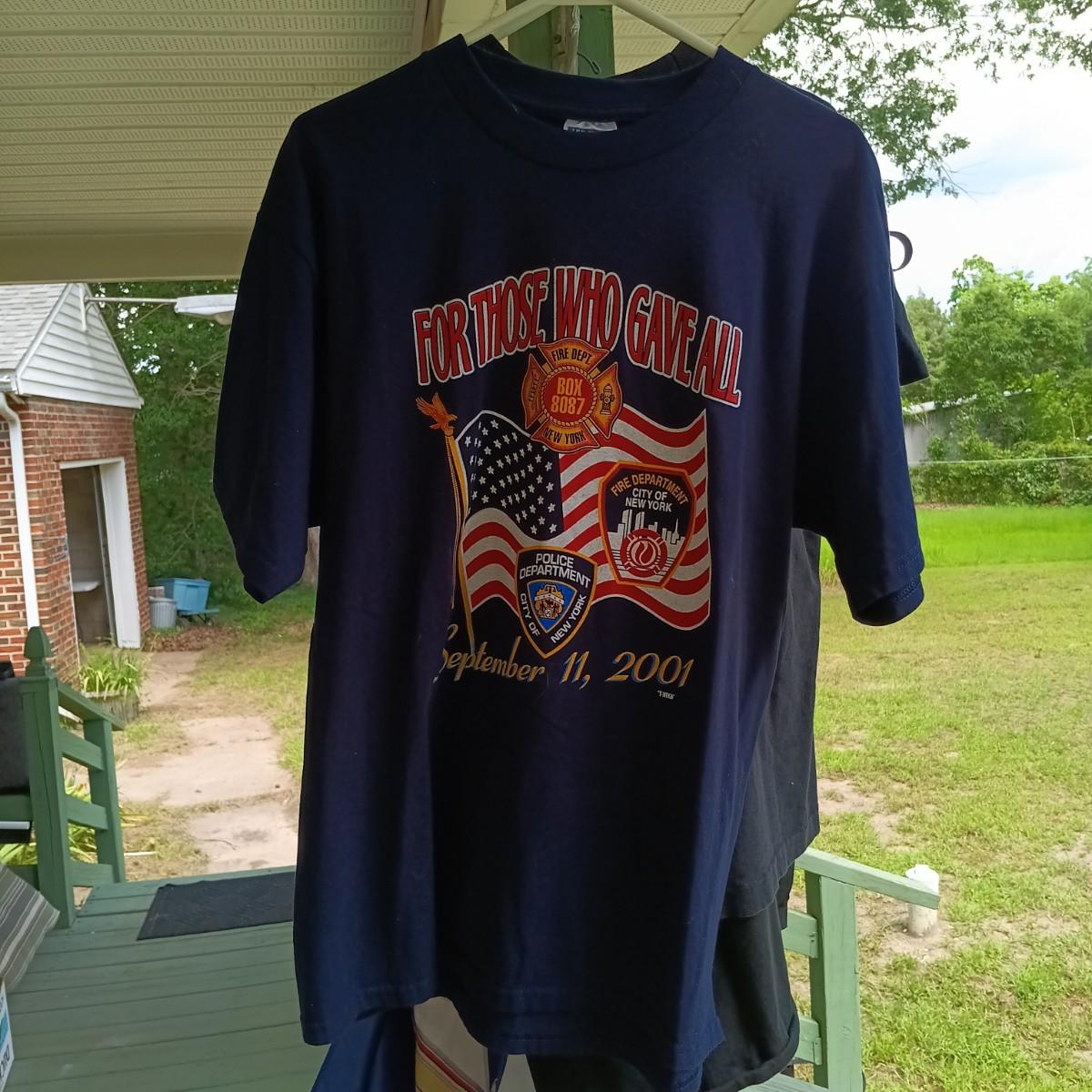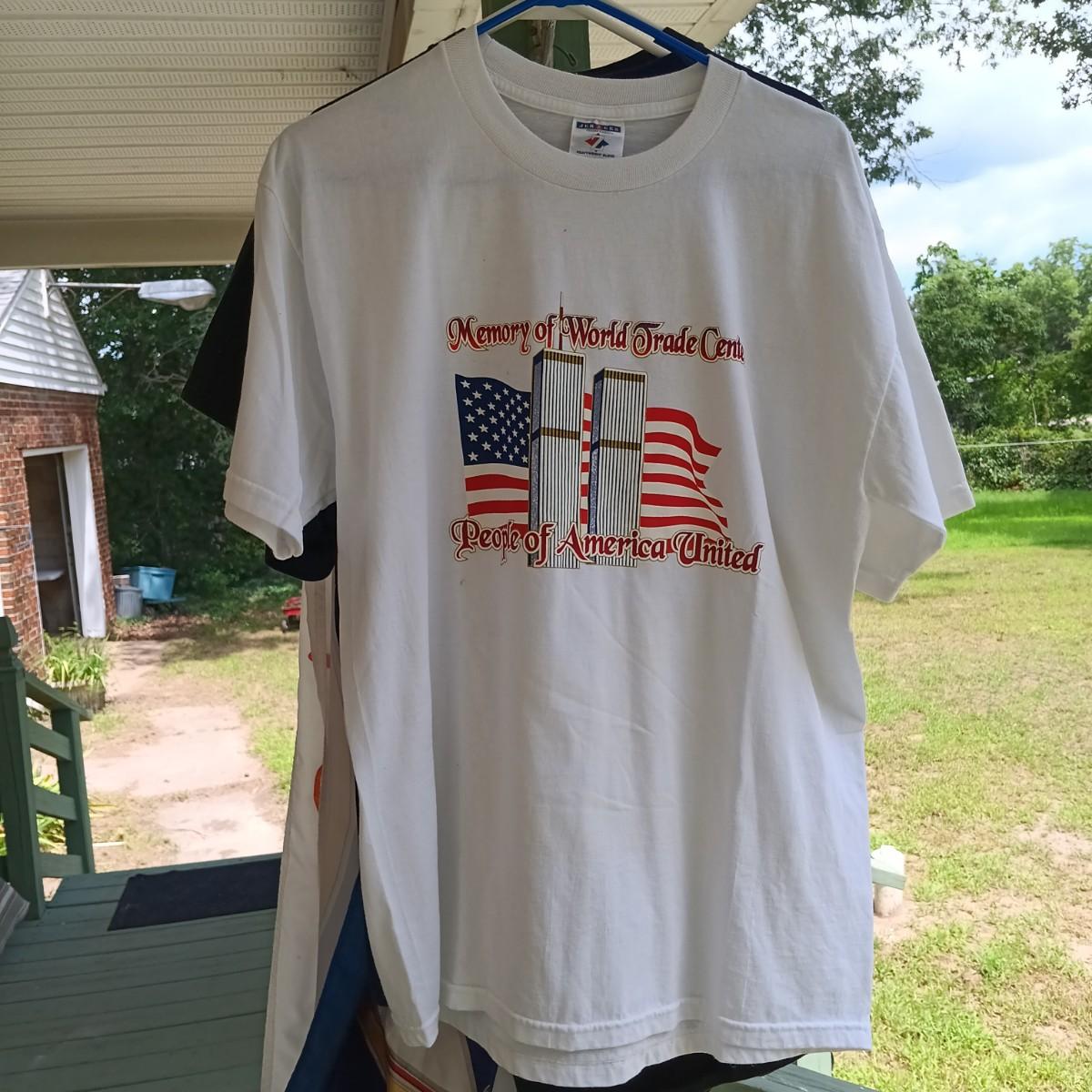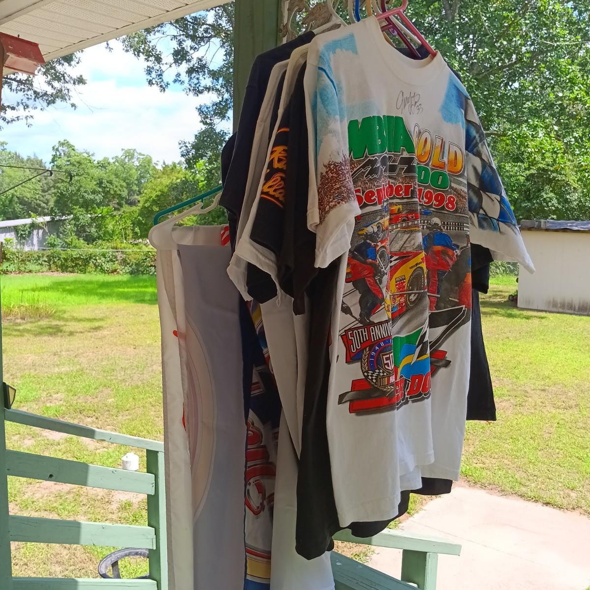 LOT 193: Nascar and 9/11 Related T-Shirts with (1) Signed Shirt and (2) Nascar Flags