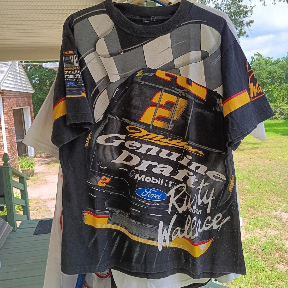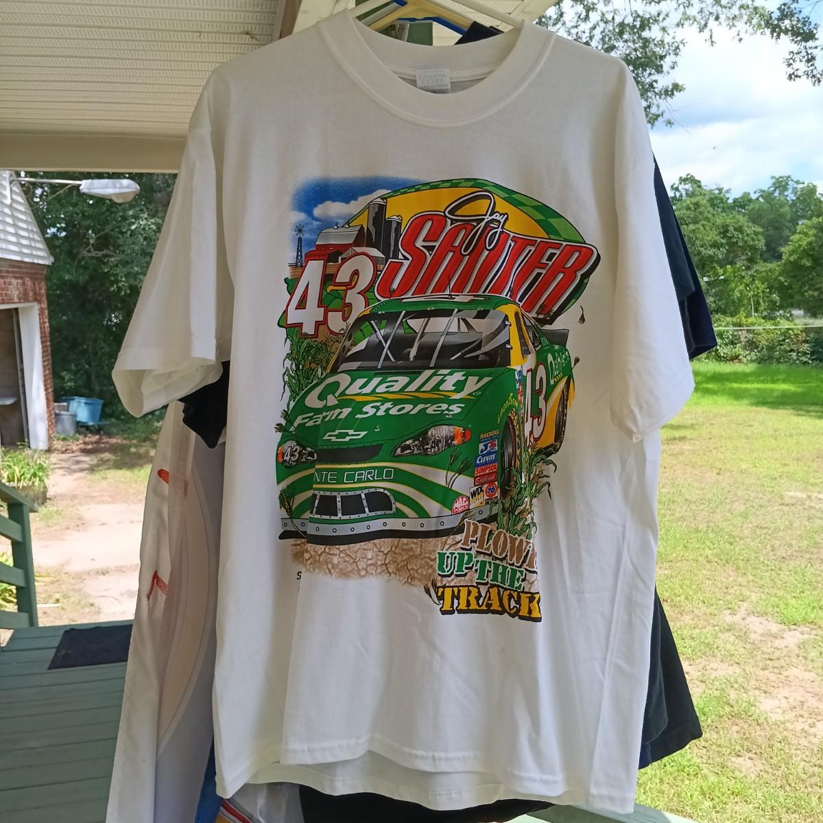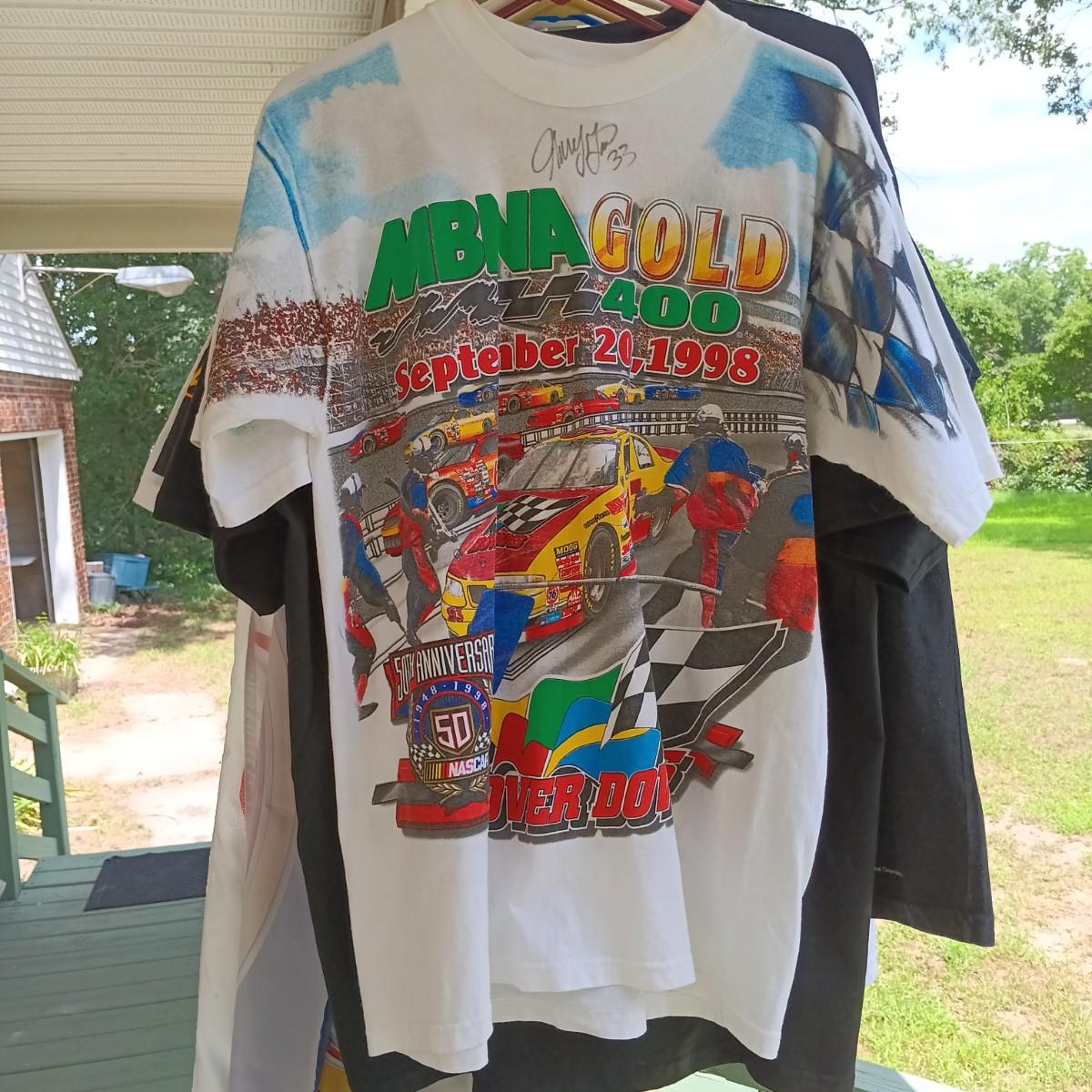LOT 193: Nascar and 9/11 Related T-Shirts with (1) Signed Shirt and (2) Nascar Flags