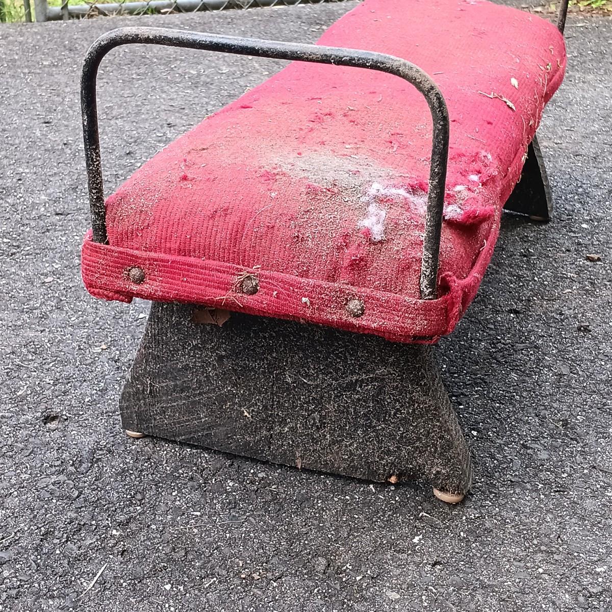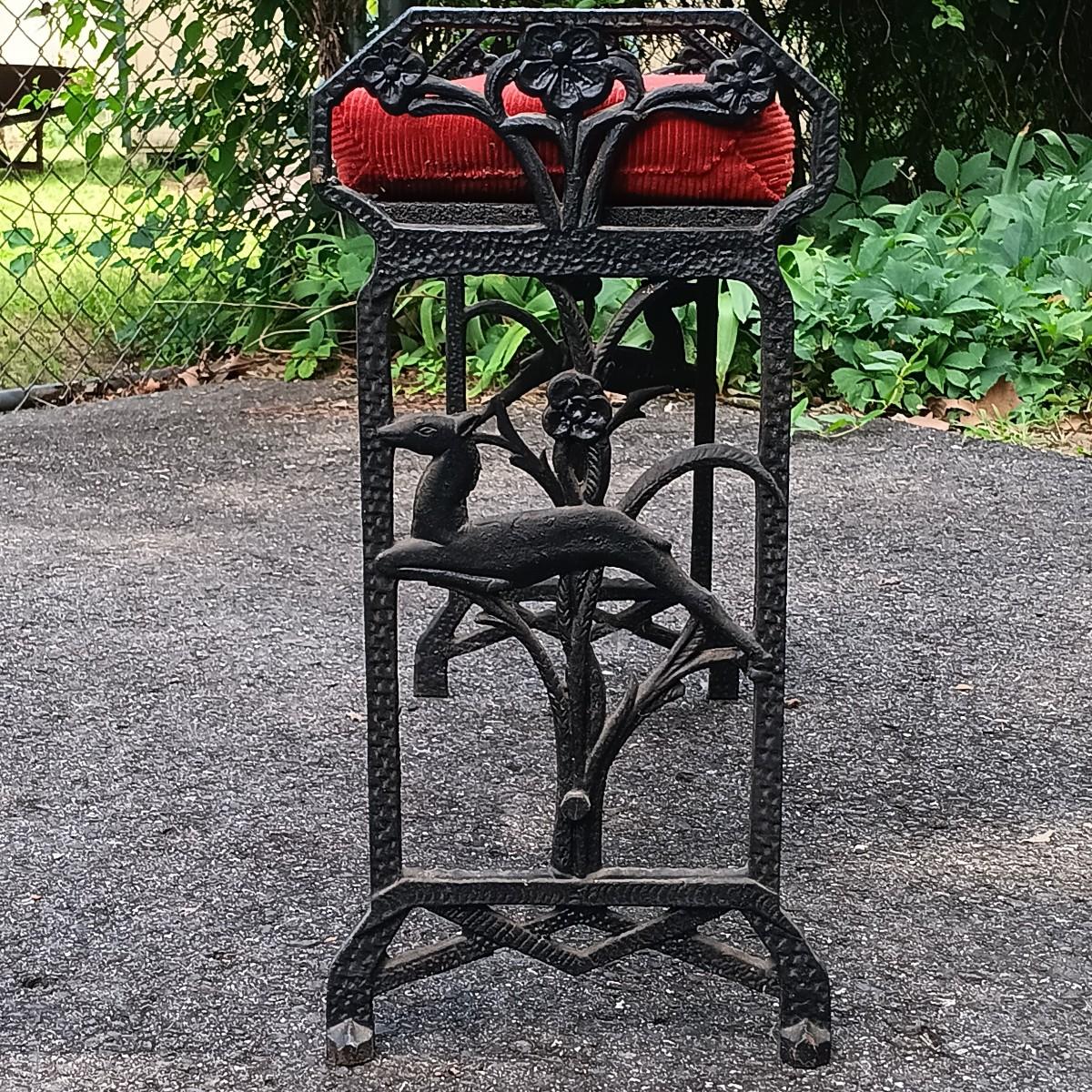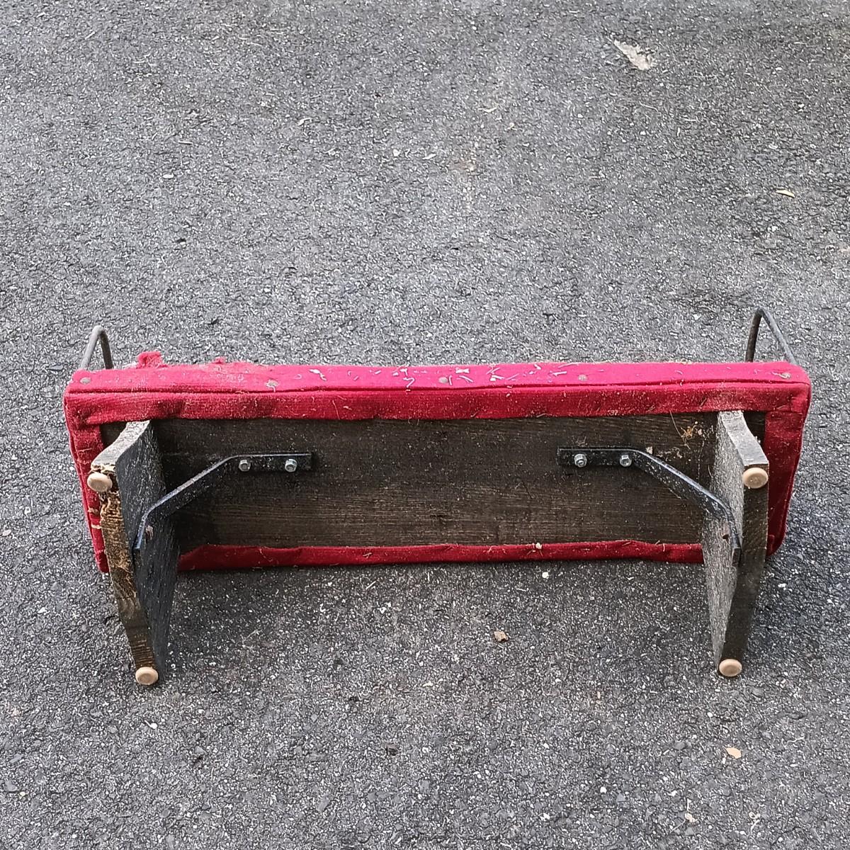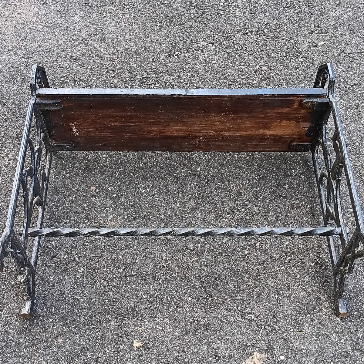 LOT 195: Antique Wrought Iron and Wood Bench with Metal and Wood Upholstered Stool