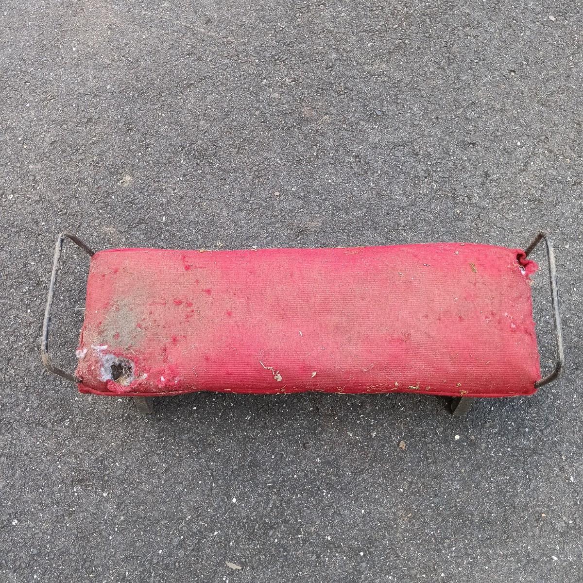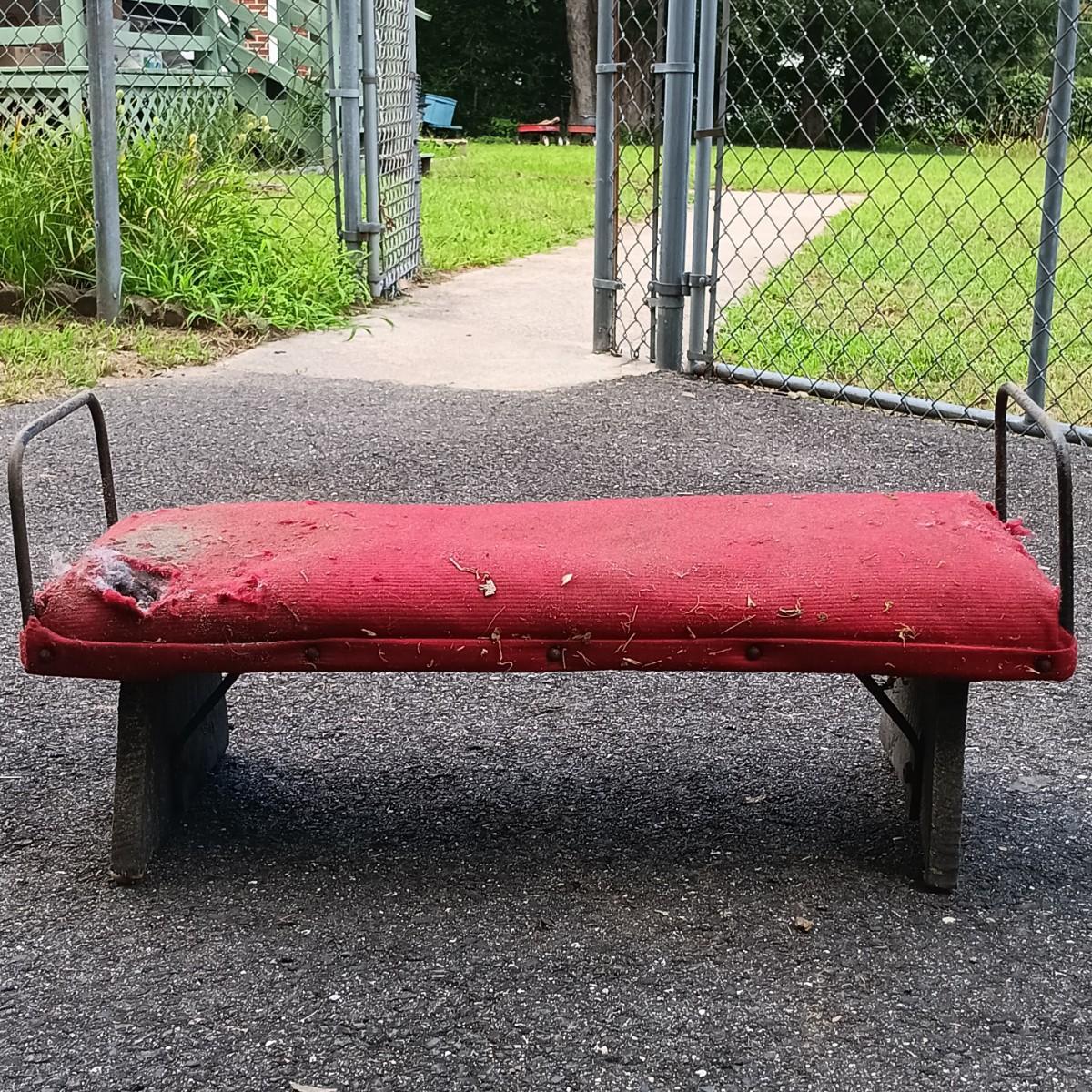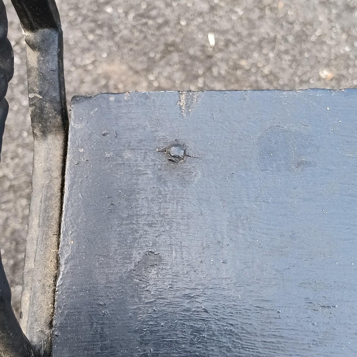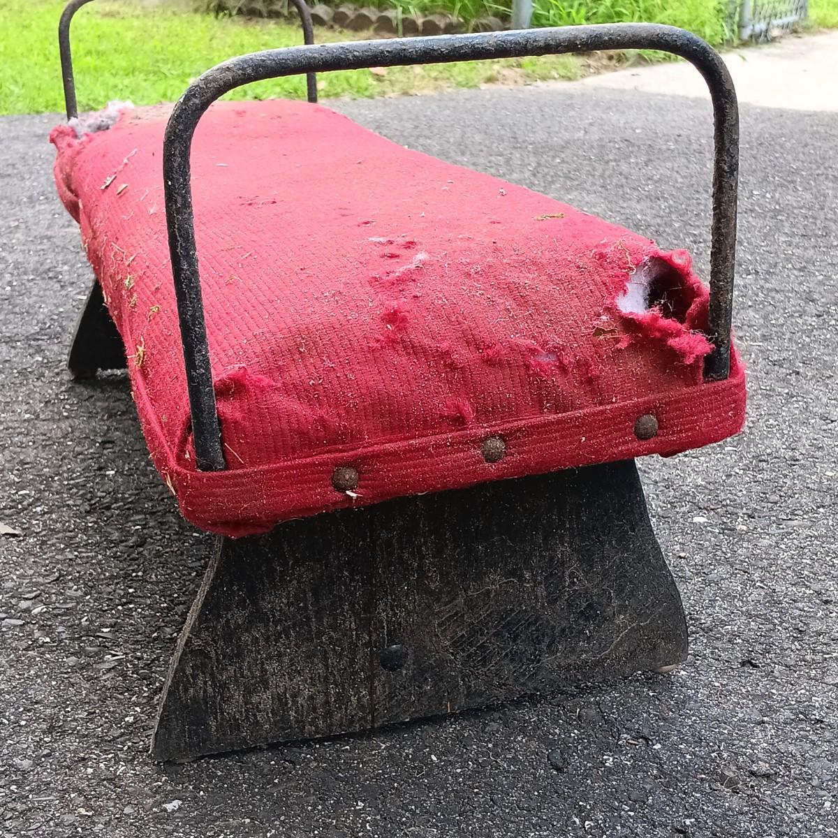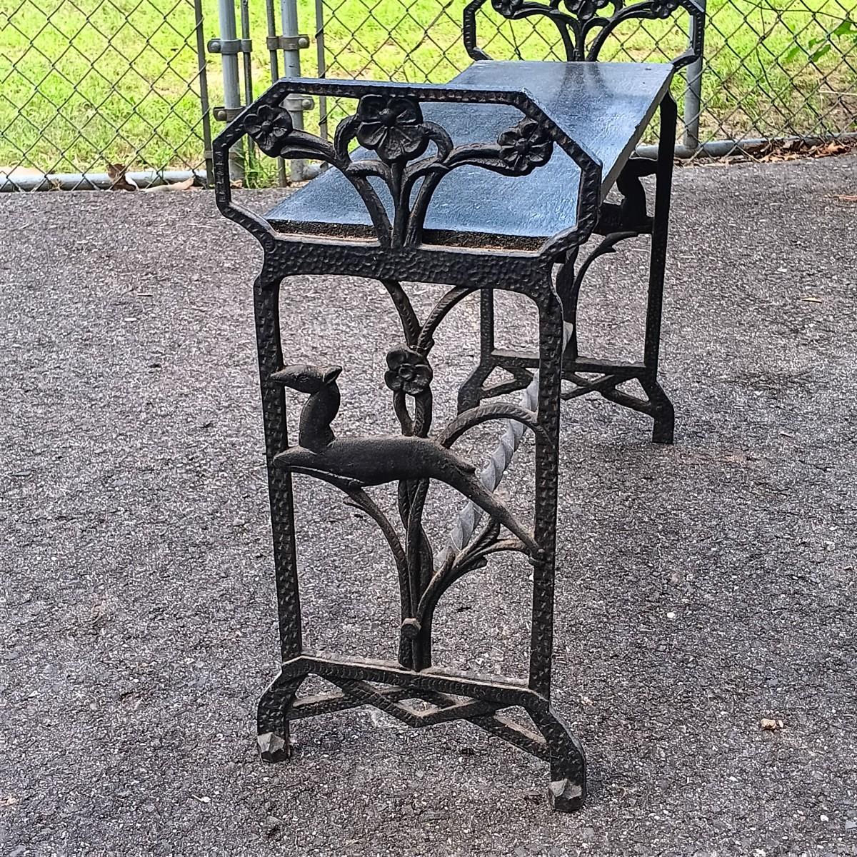 LOT 195: Antique Wrought Iron and Wood Bench with Metal and Wood Upholstered Stool