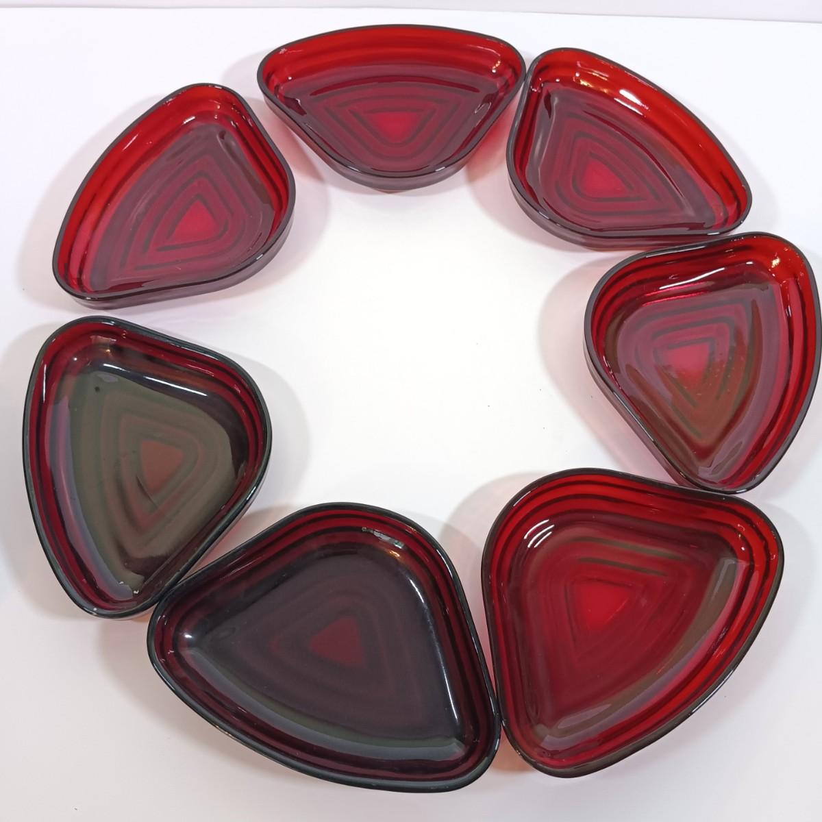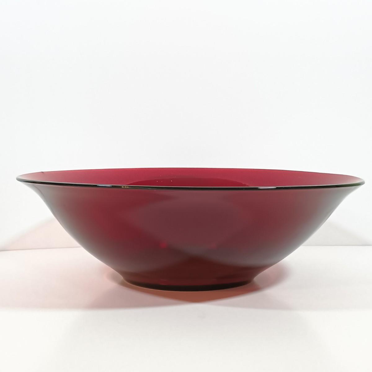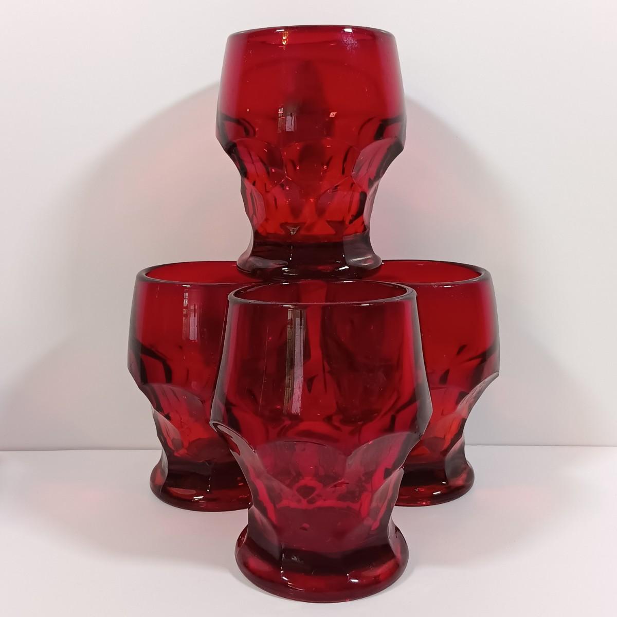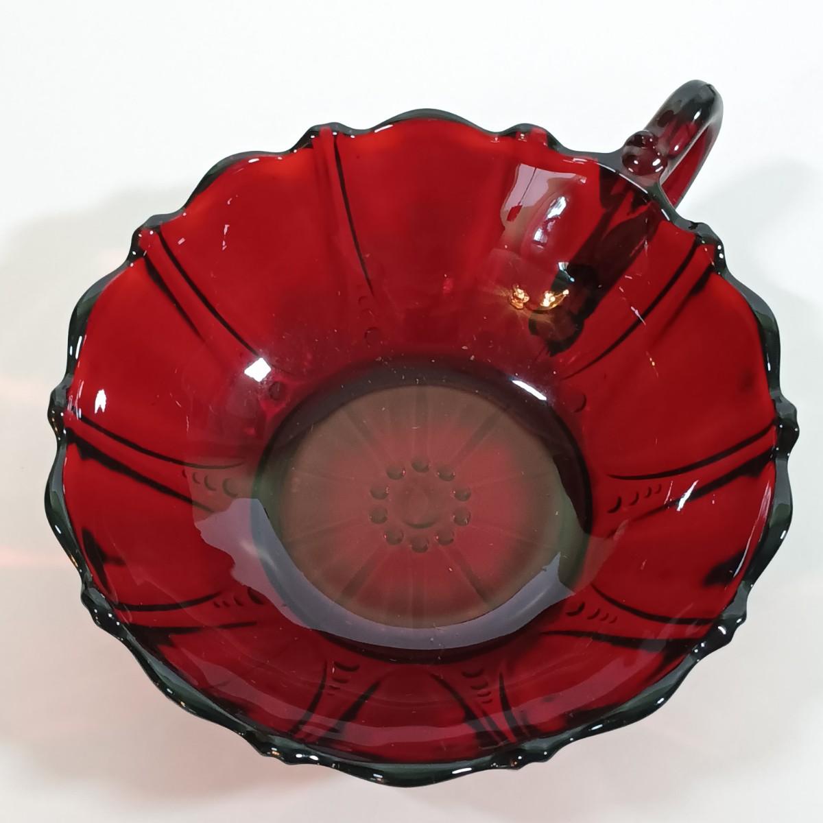 LOT 196: Ruby Red Glass Lazy Susan Inserts, Handled Serving Saucers, Bowl, Vases & Tumblers