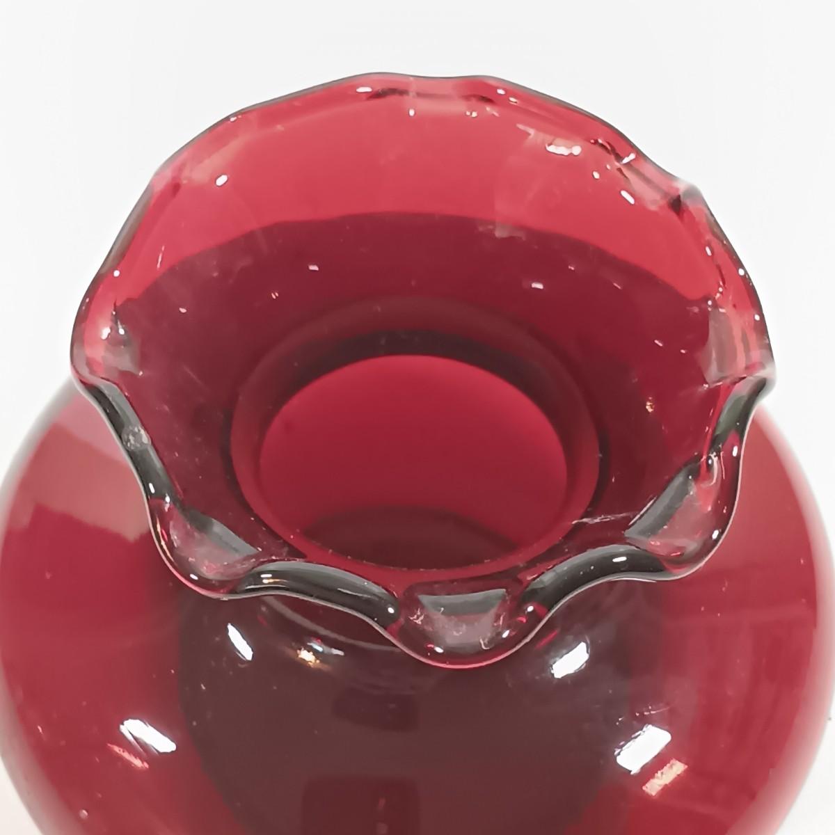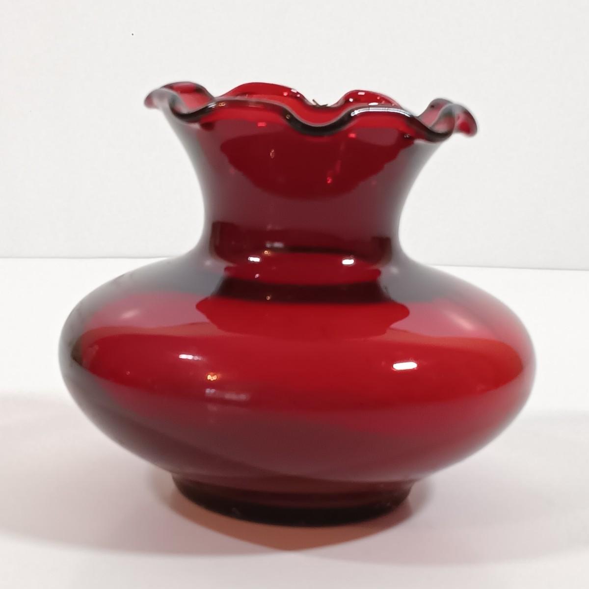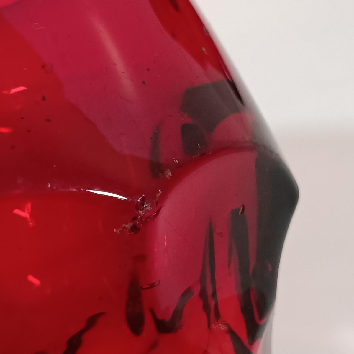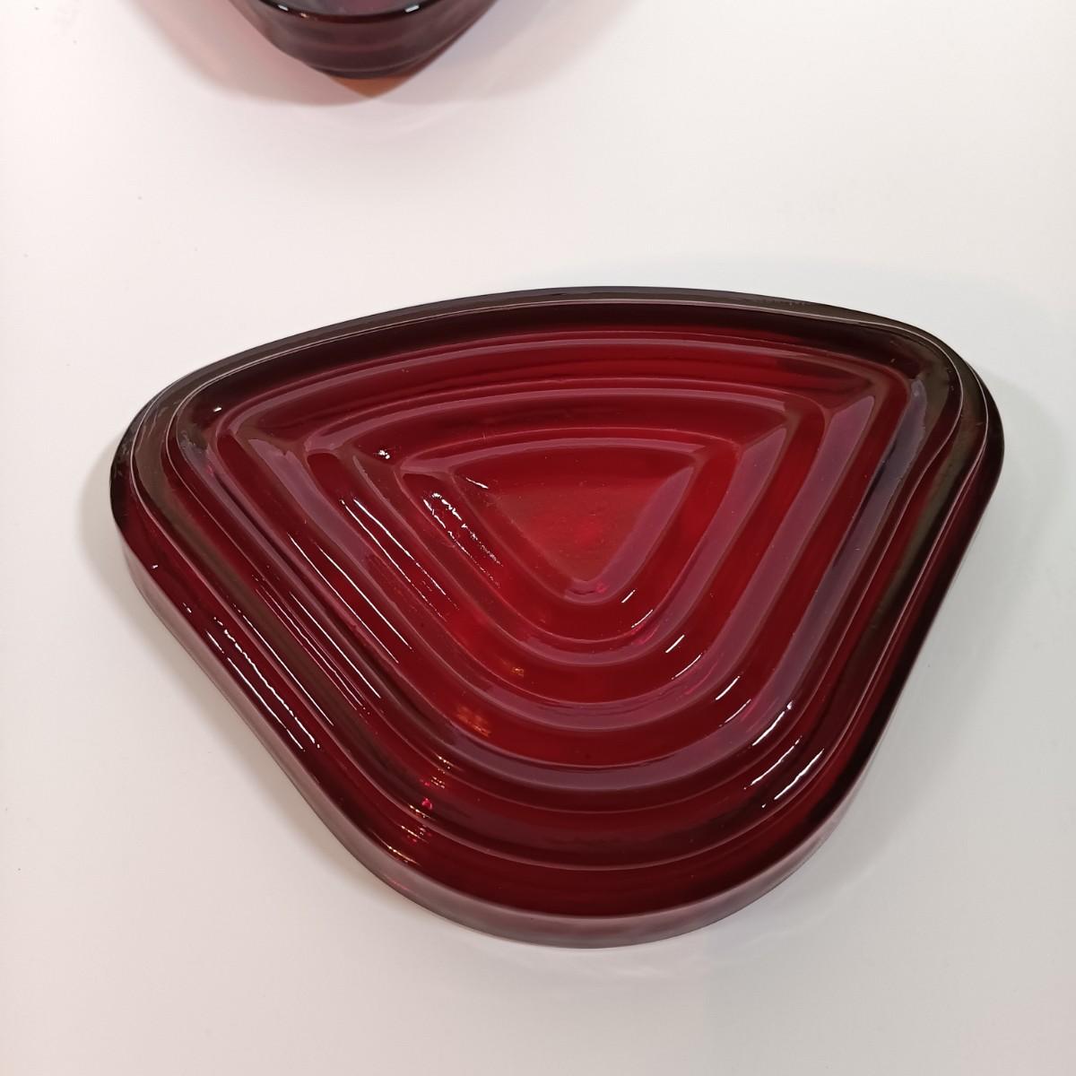 LOT 196: Ruby Red Glass Lazy Susan Inserts, Handled Serving Saucers, Bowl, Vases & Tumblers