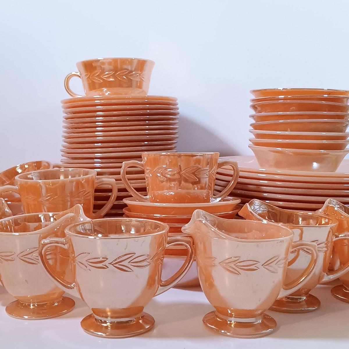 LOT 199: Collection of Fire King Peach Lustreware Dishes