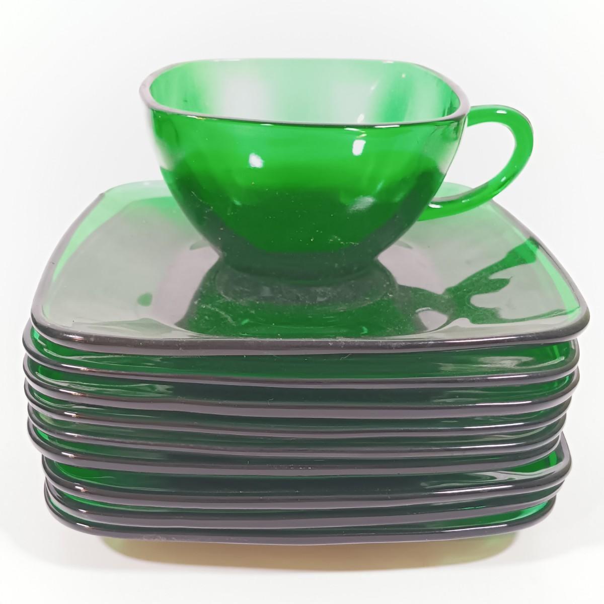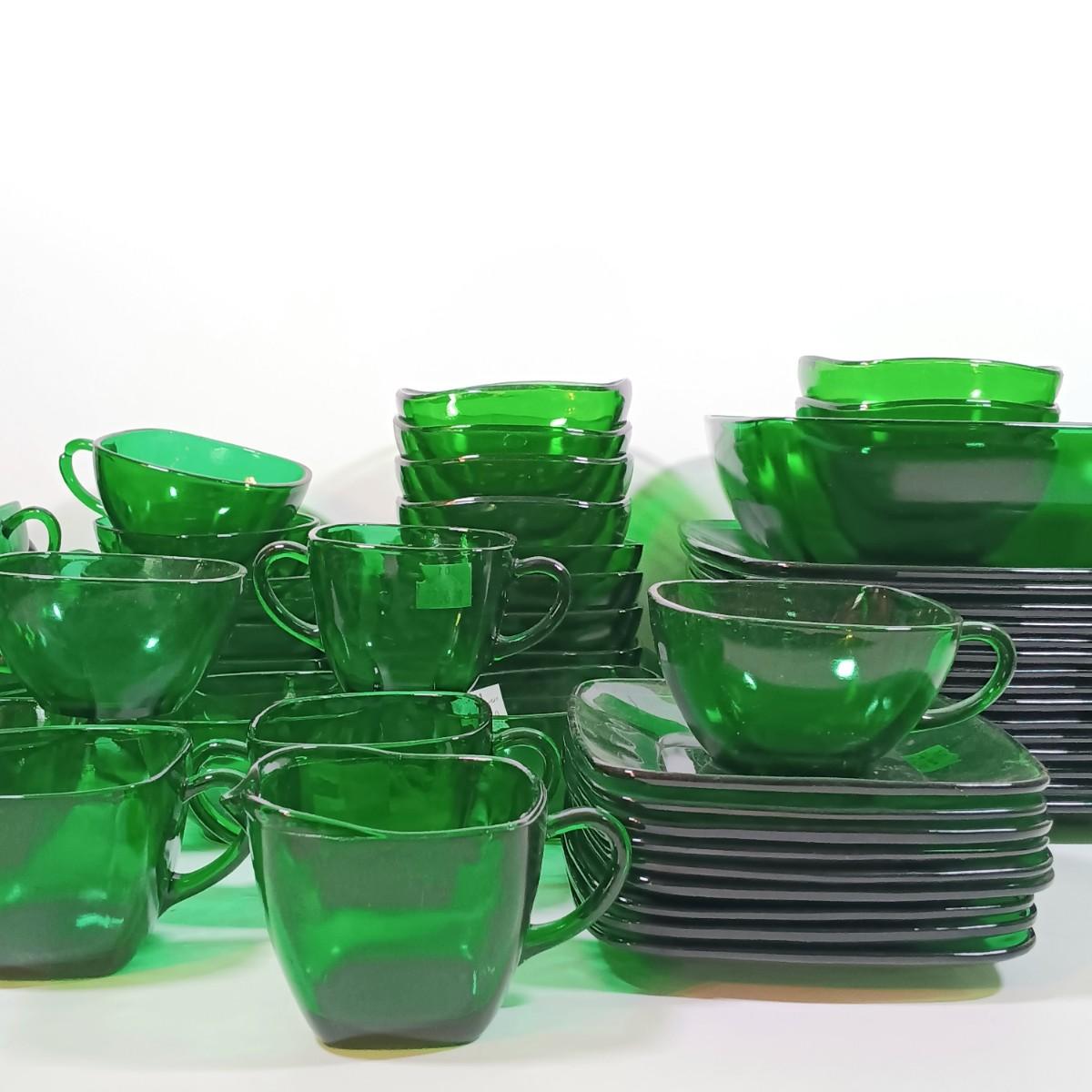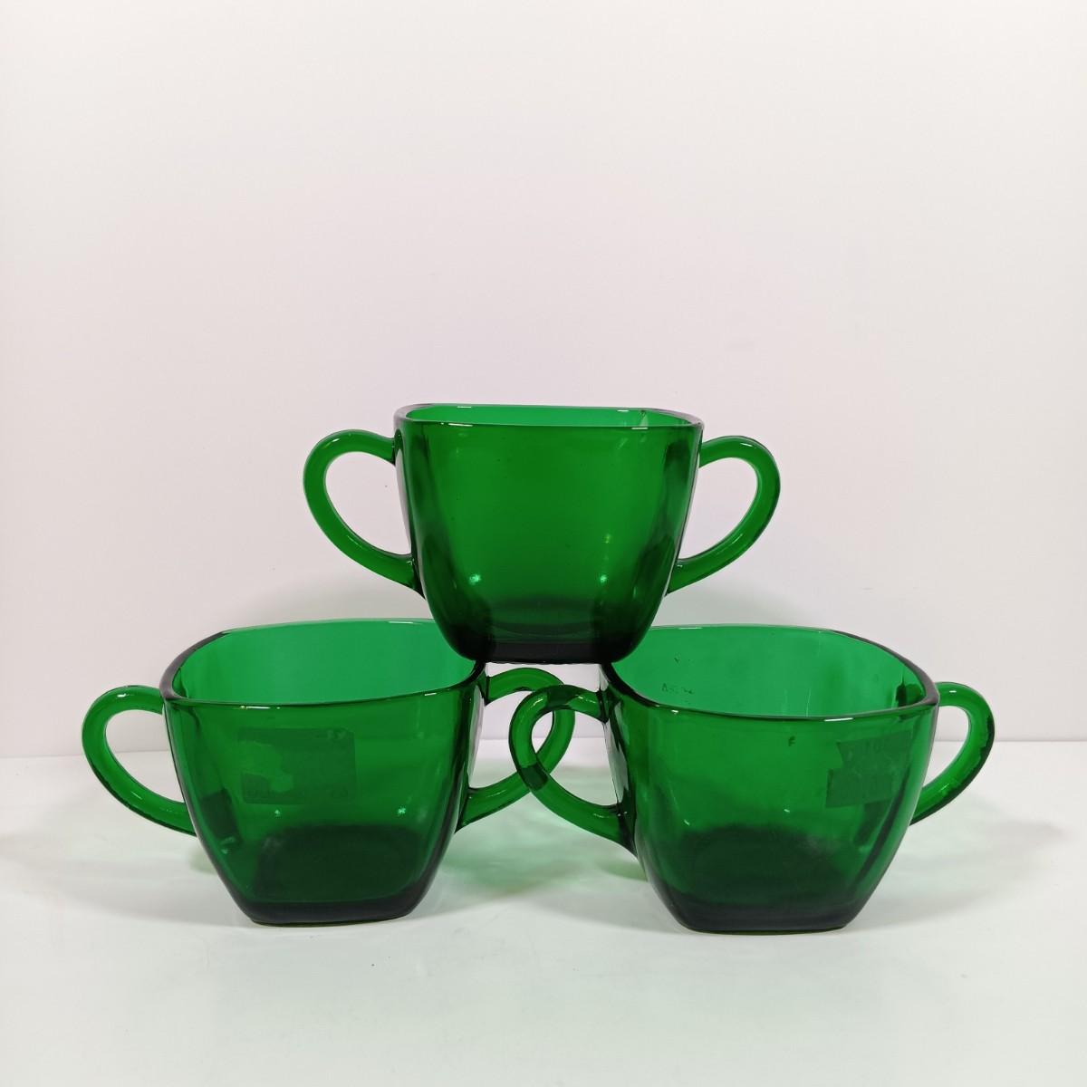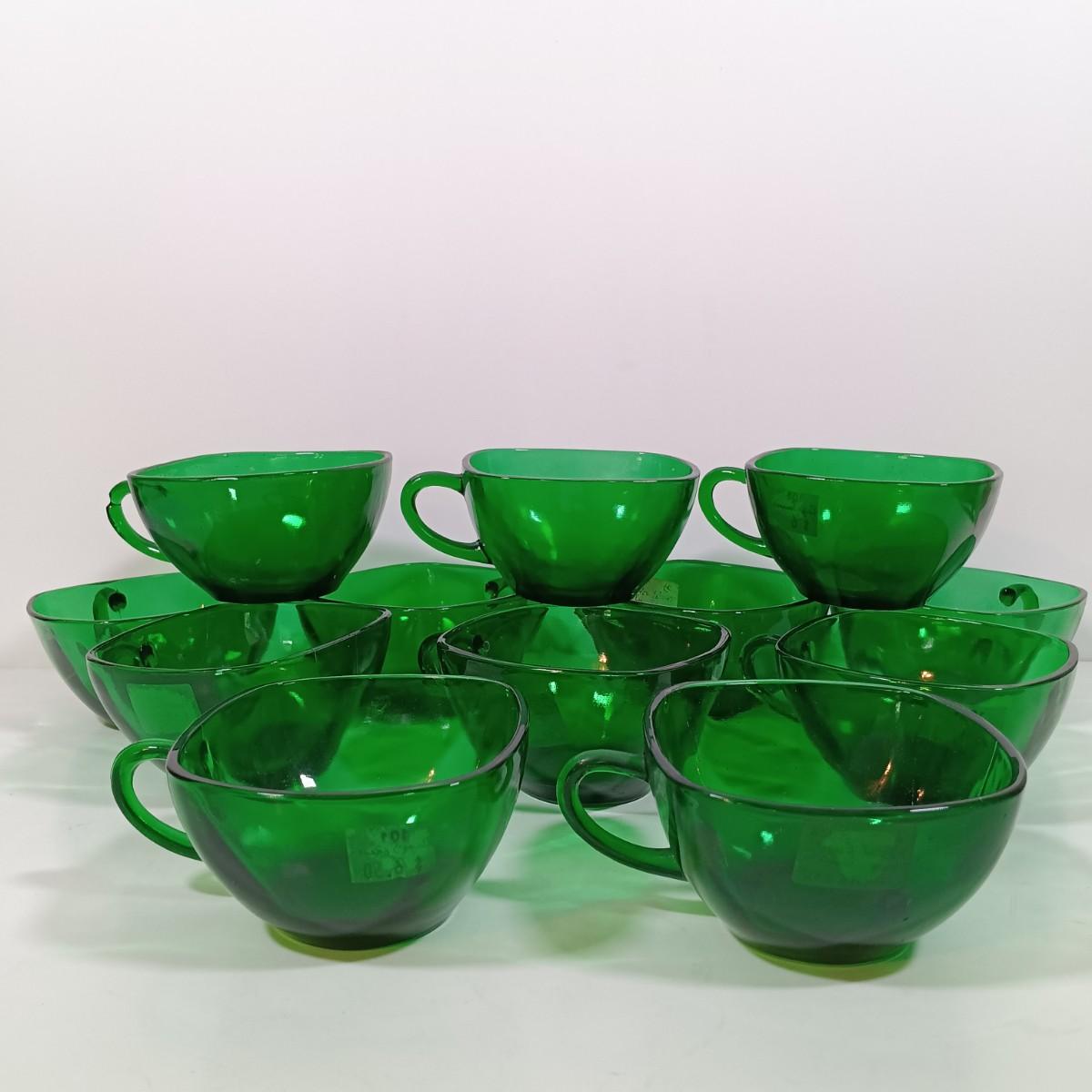 LOT 205: Anchor Hocking Forest Green Coffee Cups, Sugar Bowls, Bowls & More