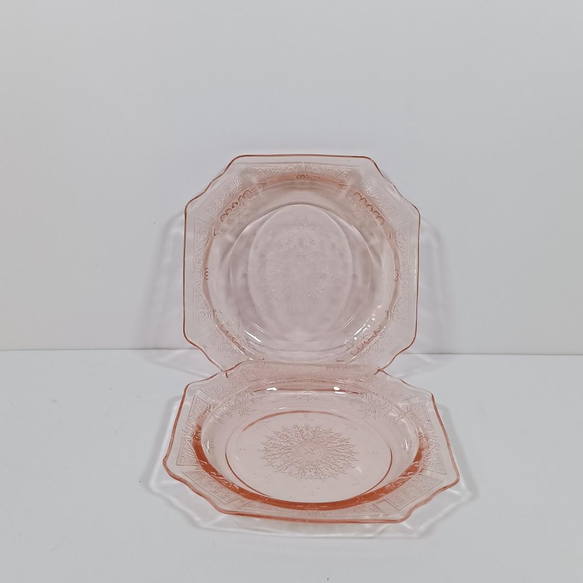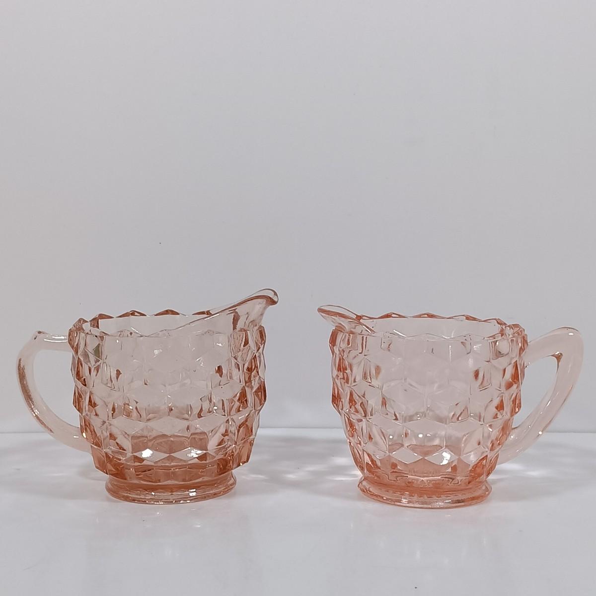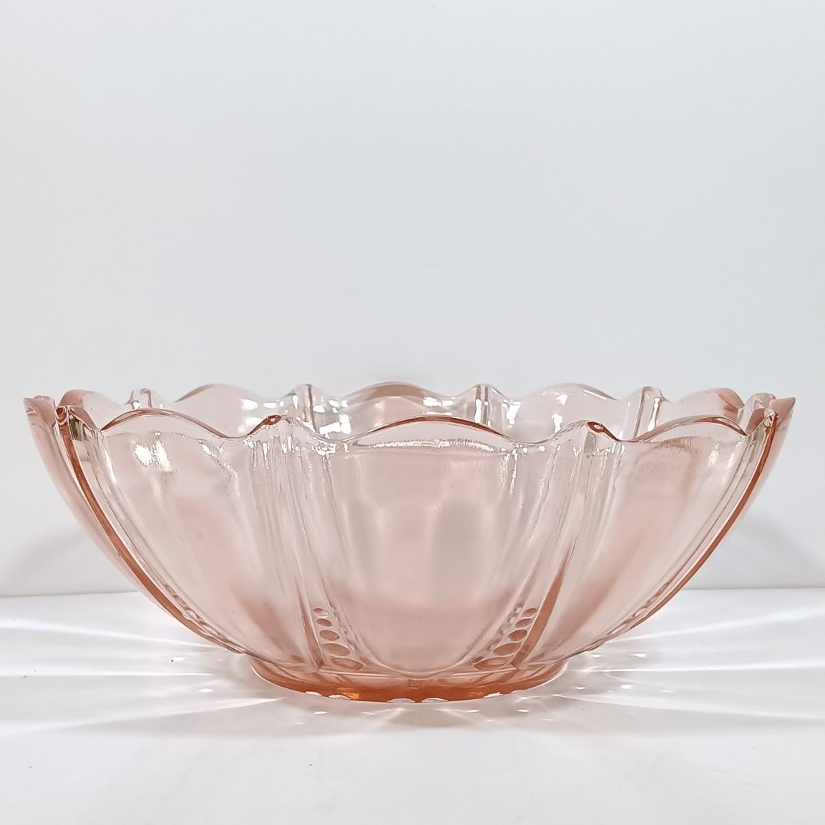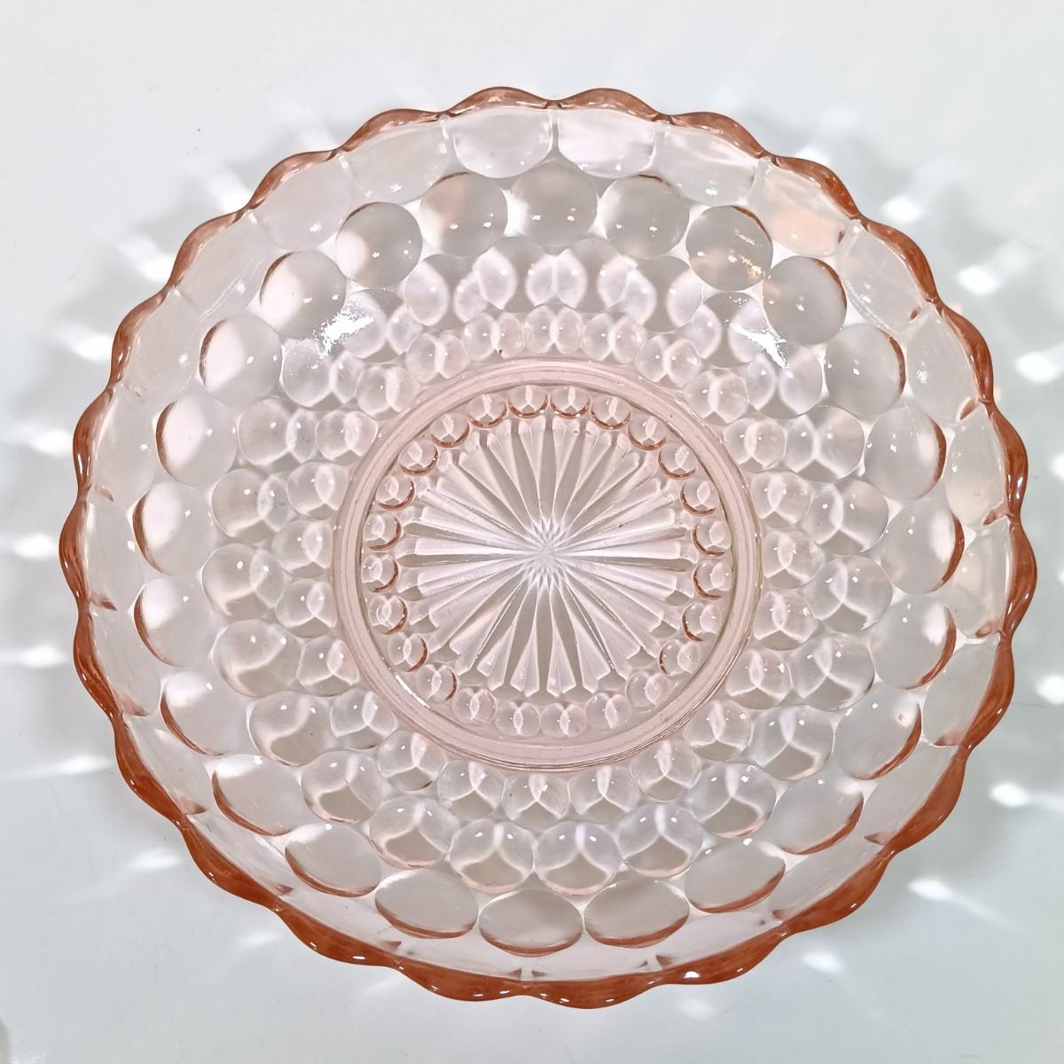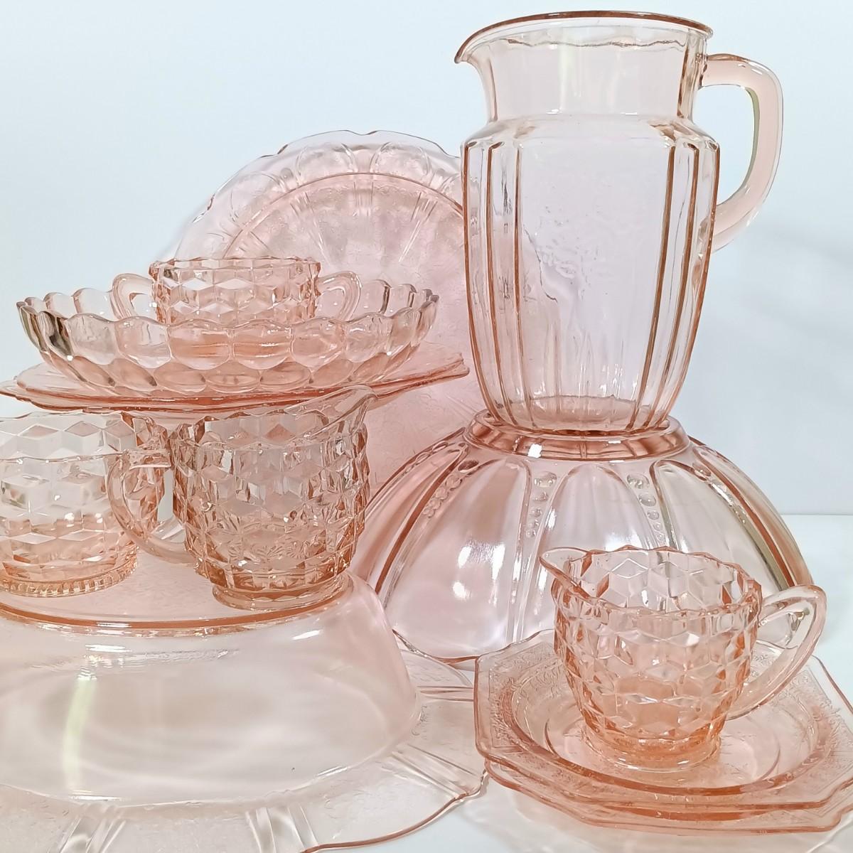 LOT 208: Pink Depression Glass Dishes - Bubble Bowl, Oyster and Pearl Bowl, Pitcher & More