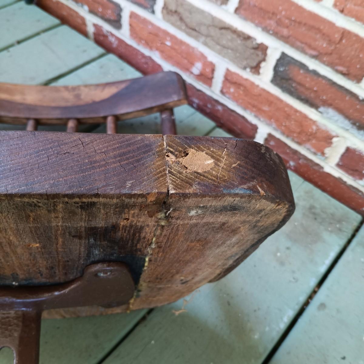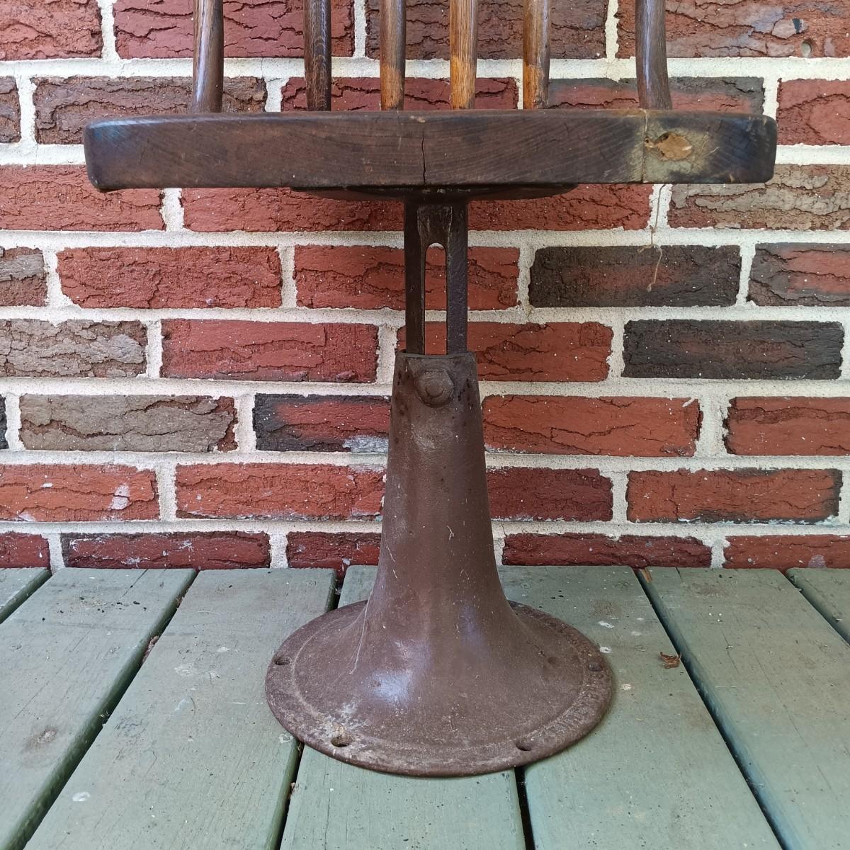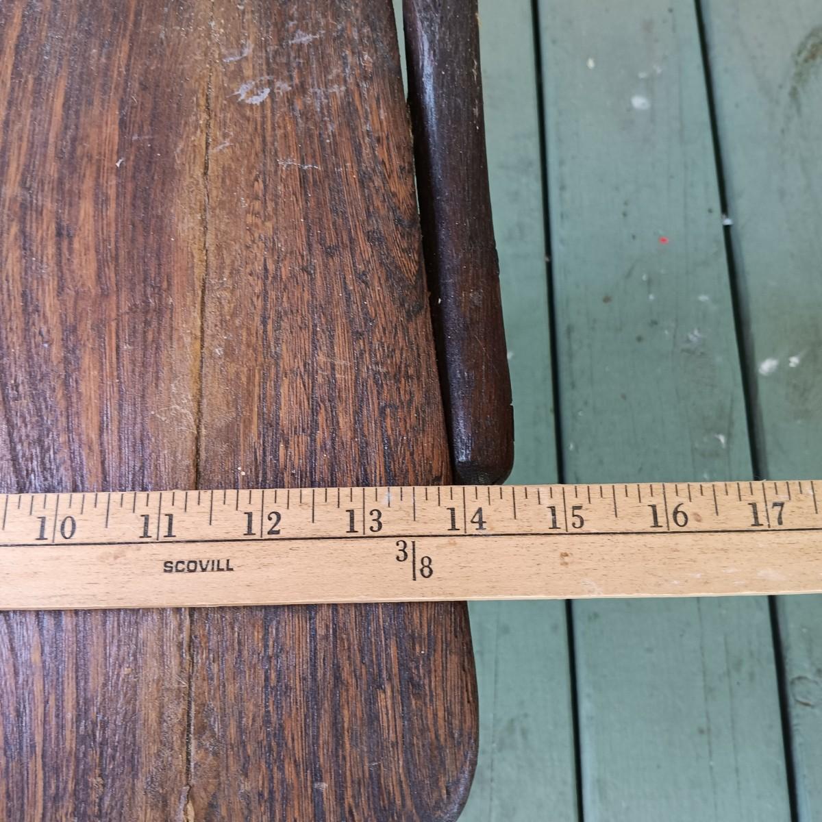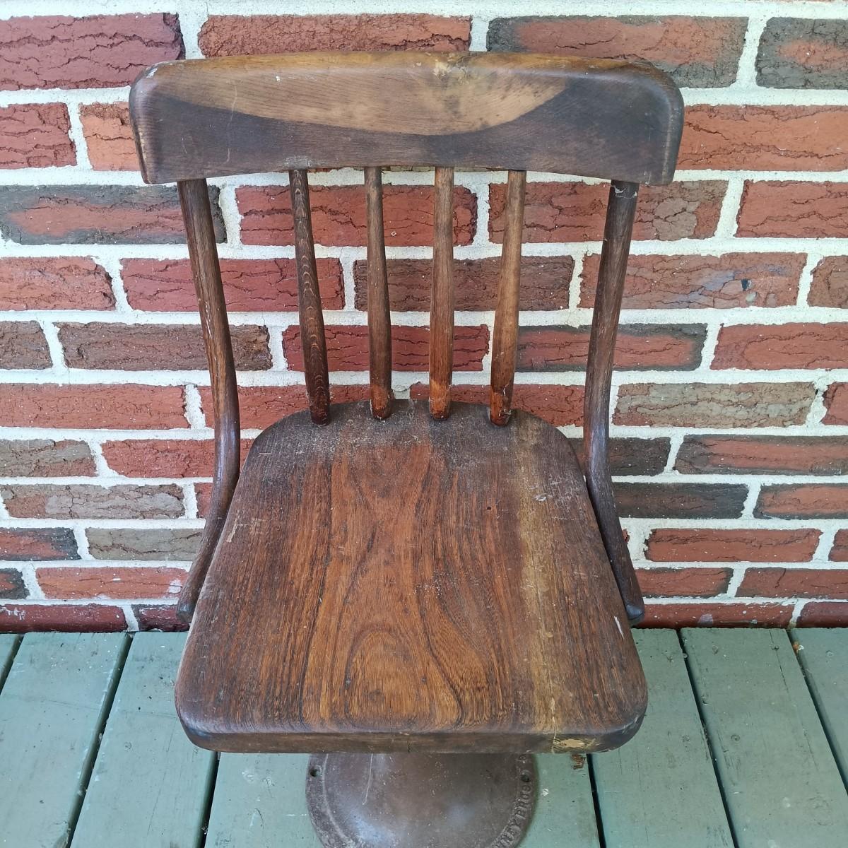 LOT 215: Kennedy Bros. Oak and Metal Child's School Chair with Handpainted Rattan Seat Child's Chair