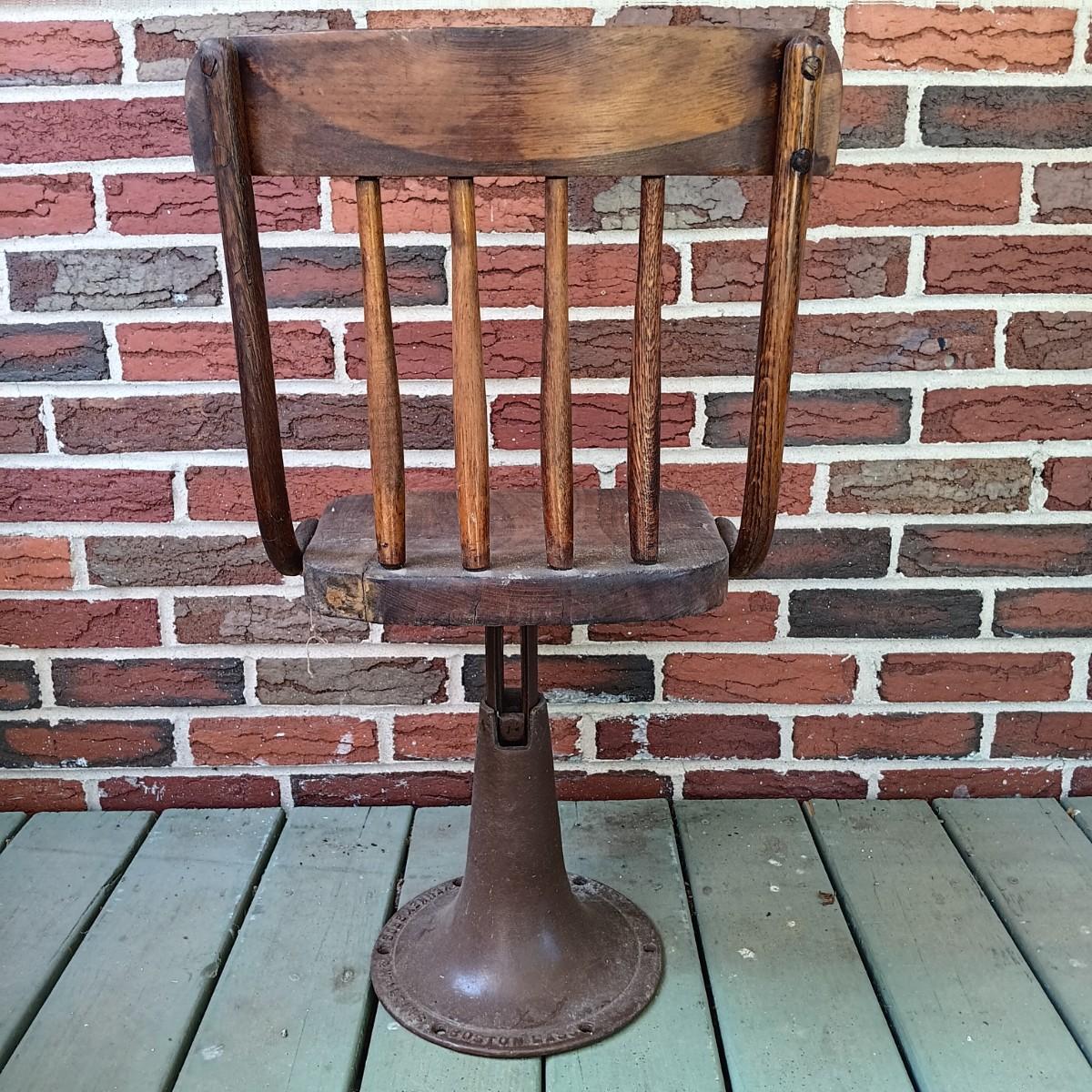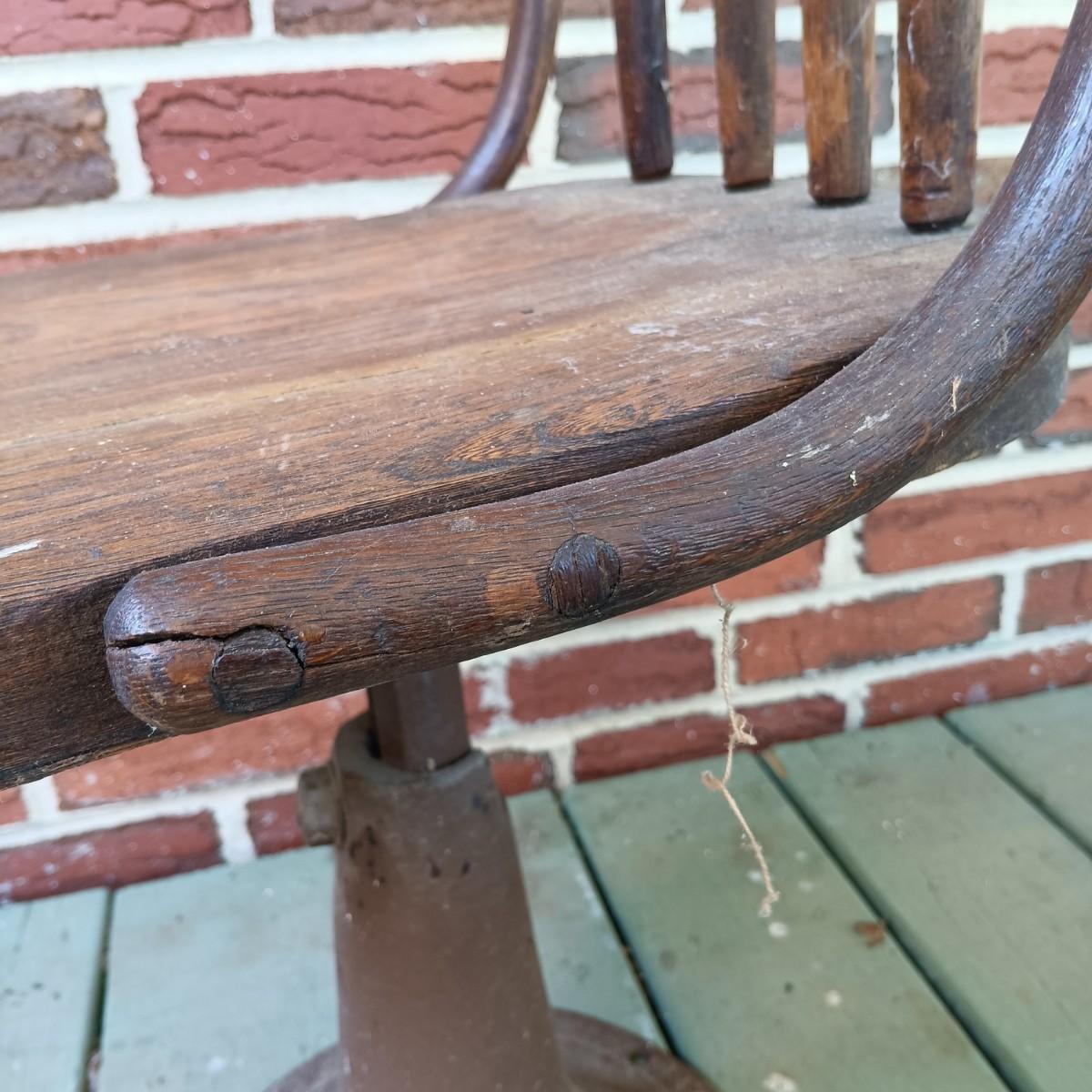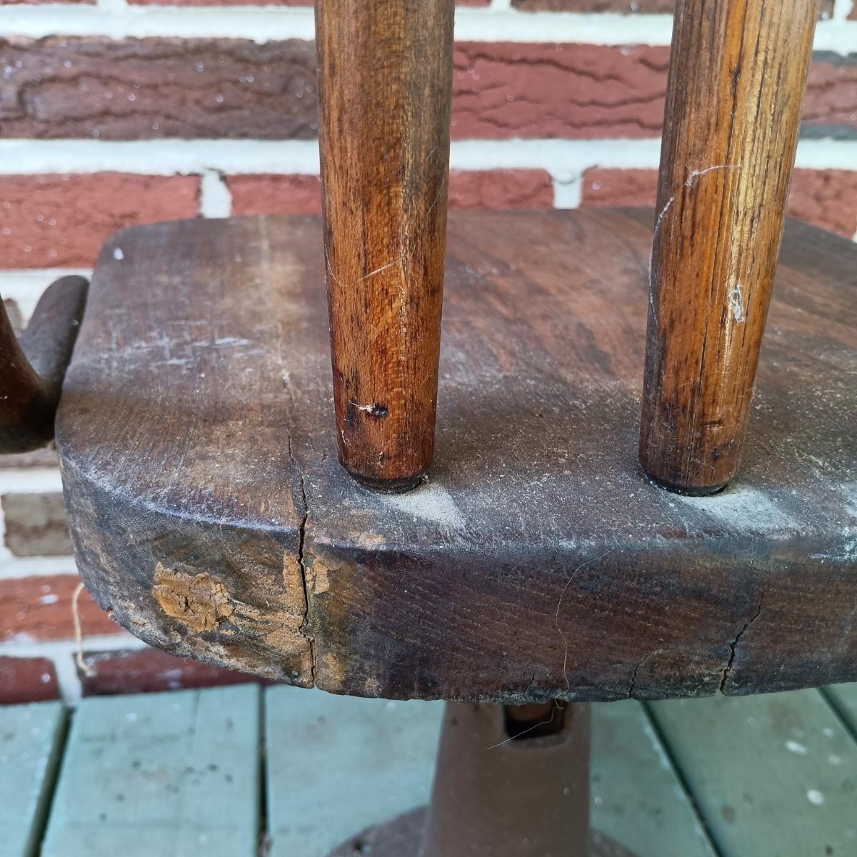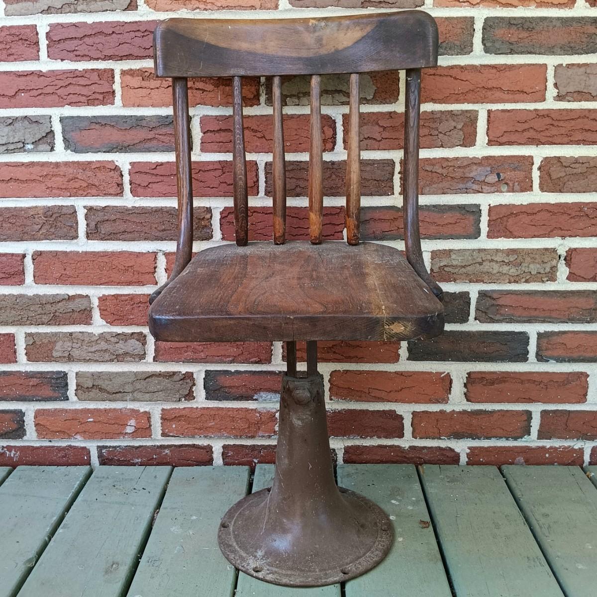 LOT 215: Kennedy Bros. Oak and Metal Child's School Chair with Handpainted Rattan Seat Child's Chair