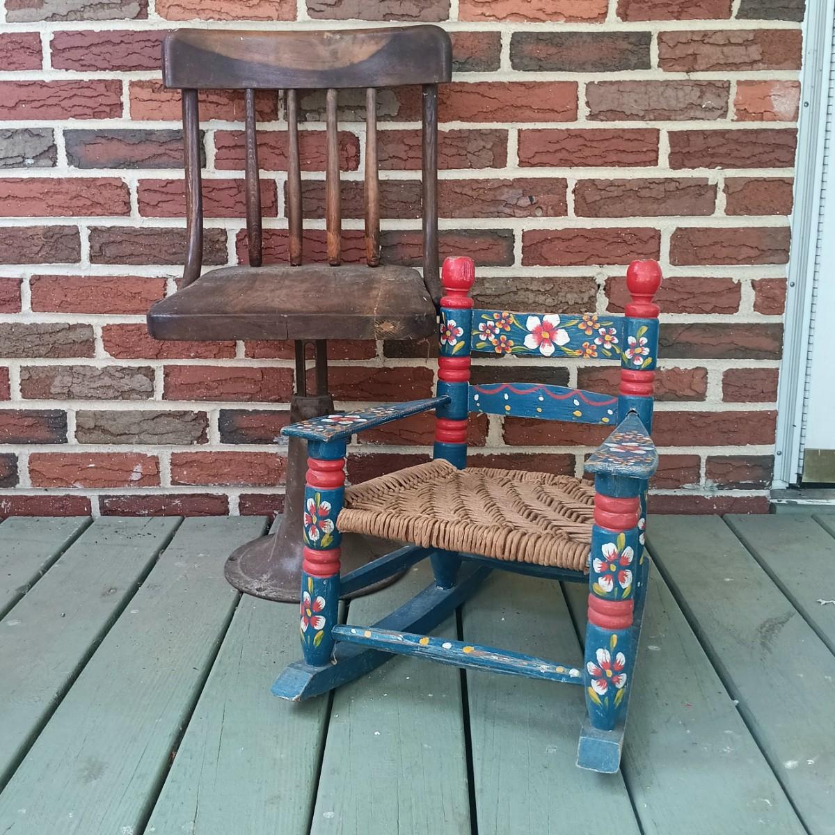 Handpainted Chair Dimensions: 14.5" x 19" x 17"