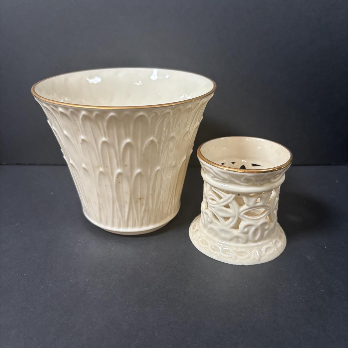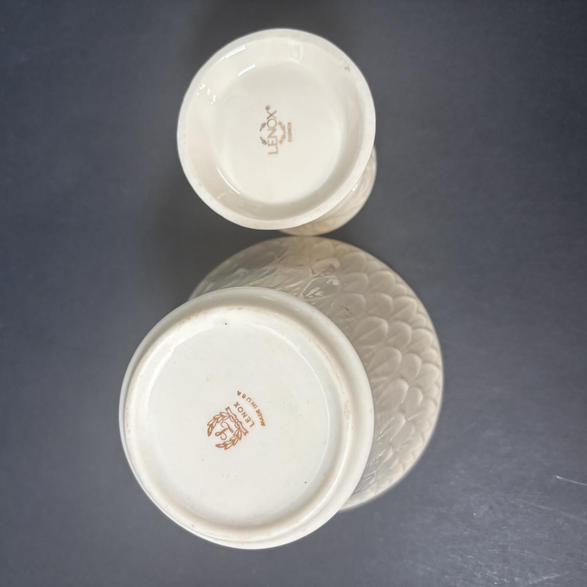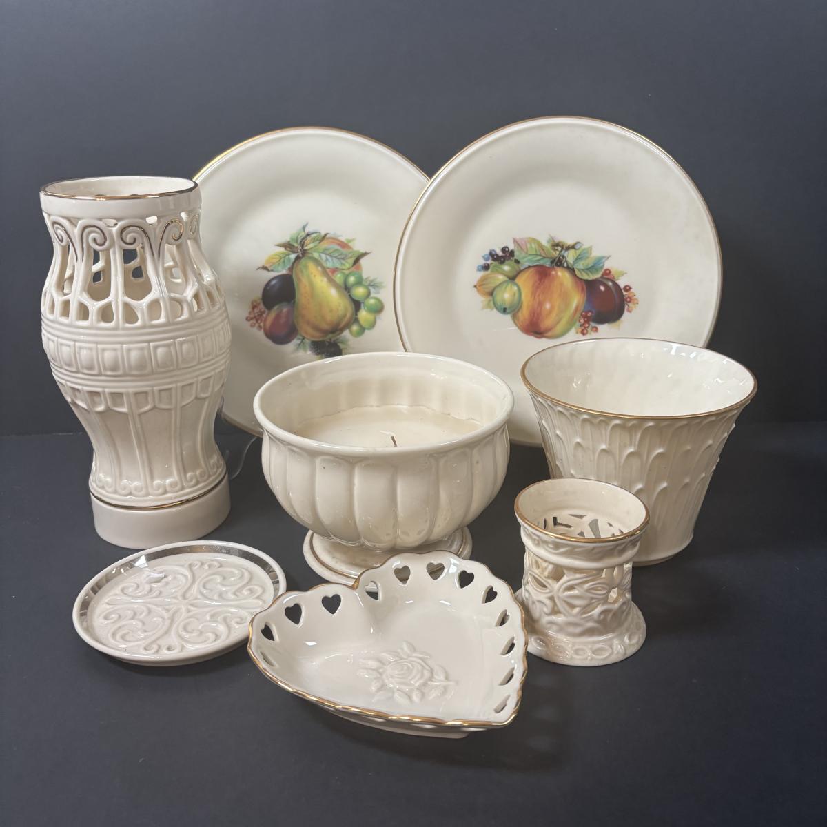 LOT 217: Lenox Collection: Fruit "Special" Salad/Dessert Plates, Illuminations Scroll Votive Candle Holder, Nature's Impressions Planter and More