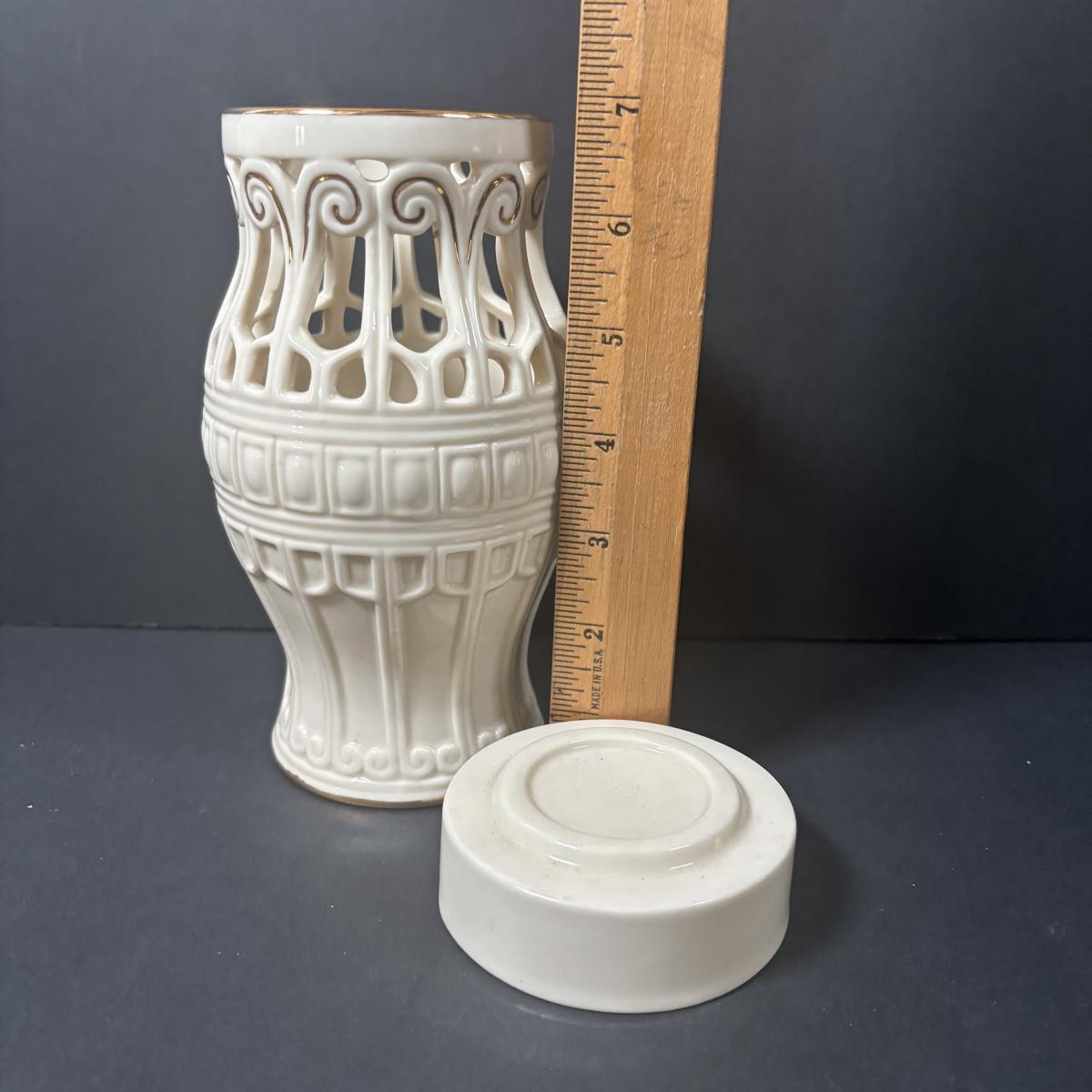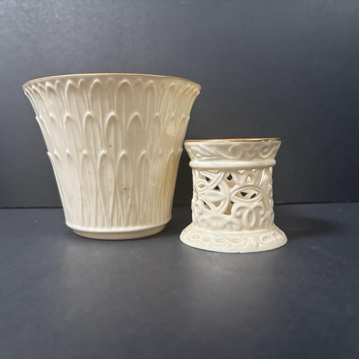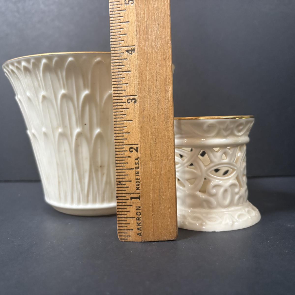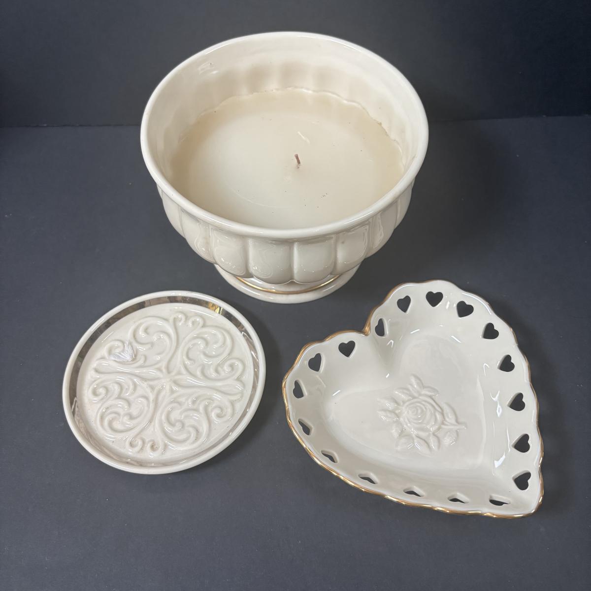 LOT 217: Lenox Collection: Fruit "Special" Salad/Dessert Plates, Illuminations Scroll Votive Candle Holder, Nature's Impressions Planter and More