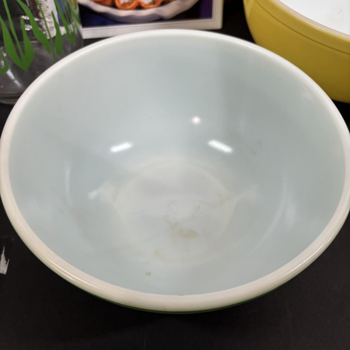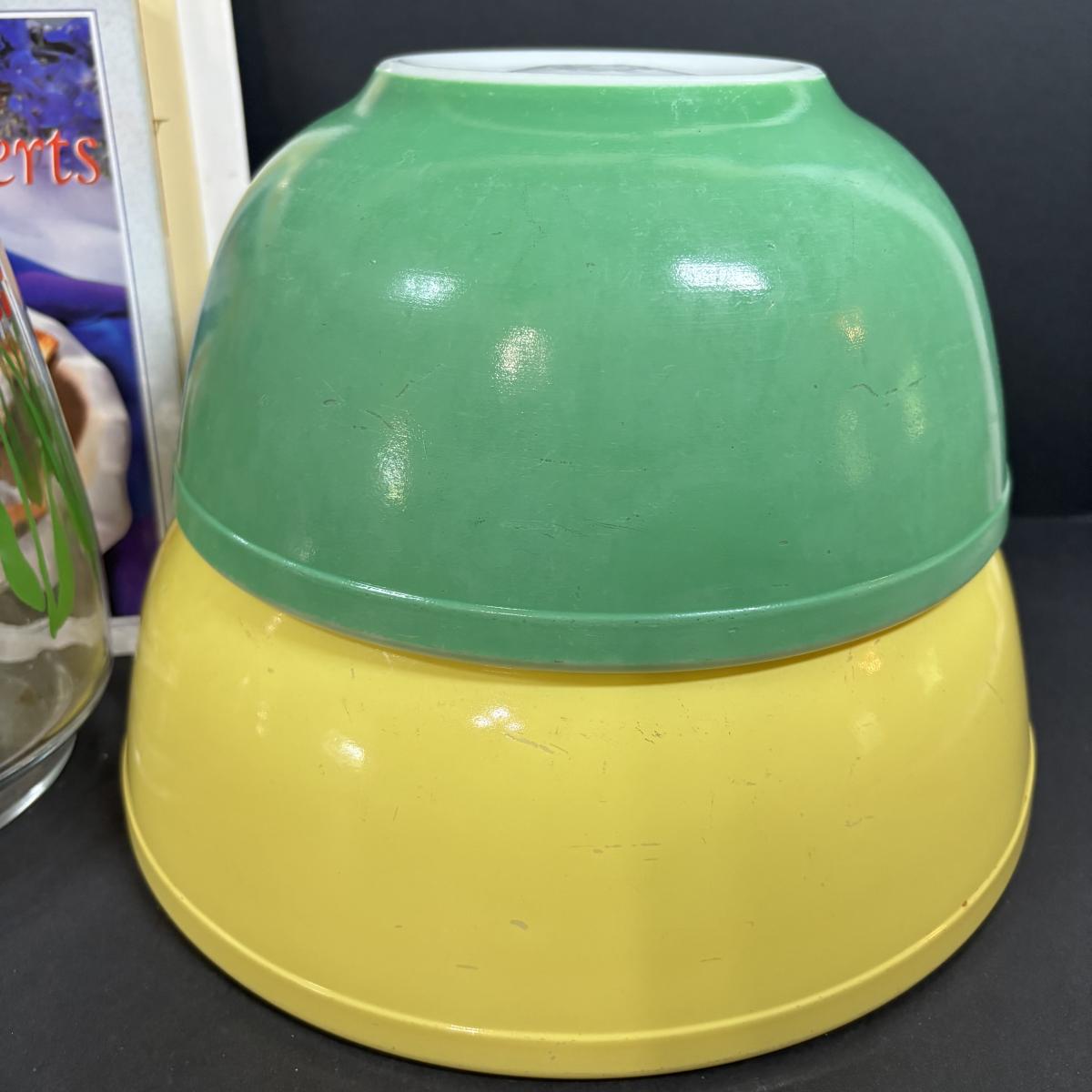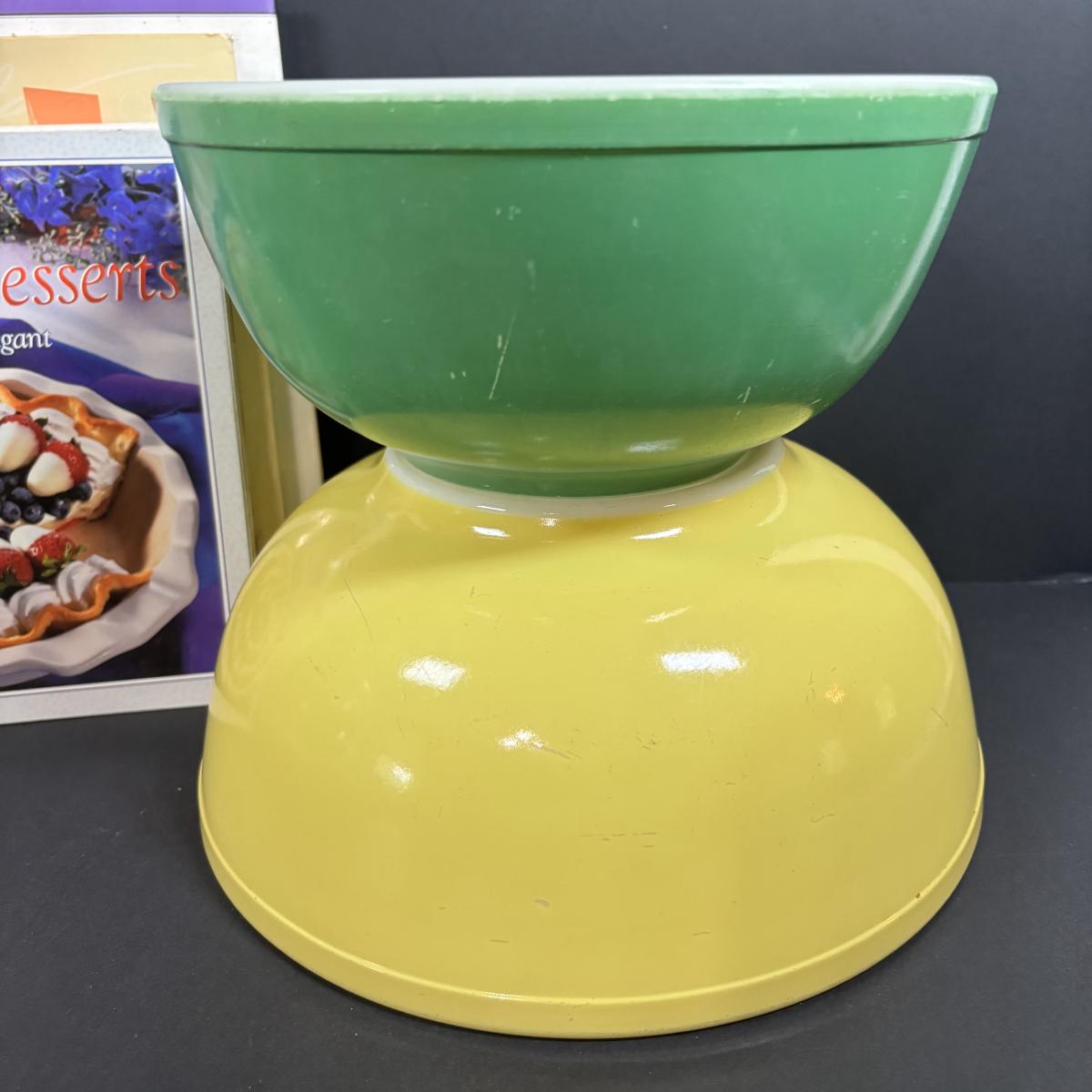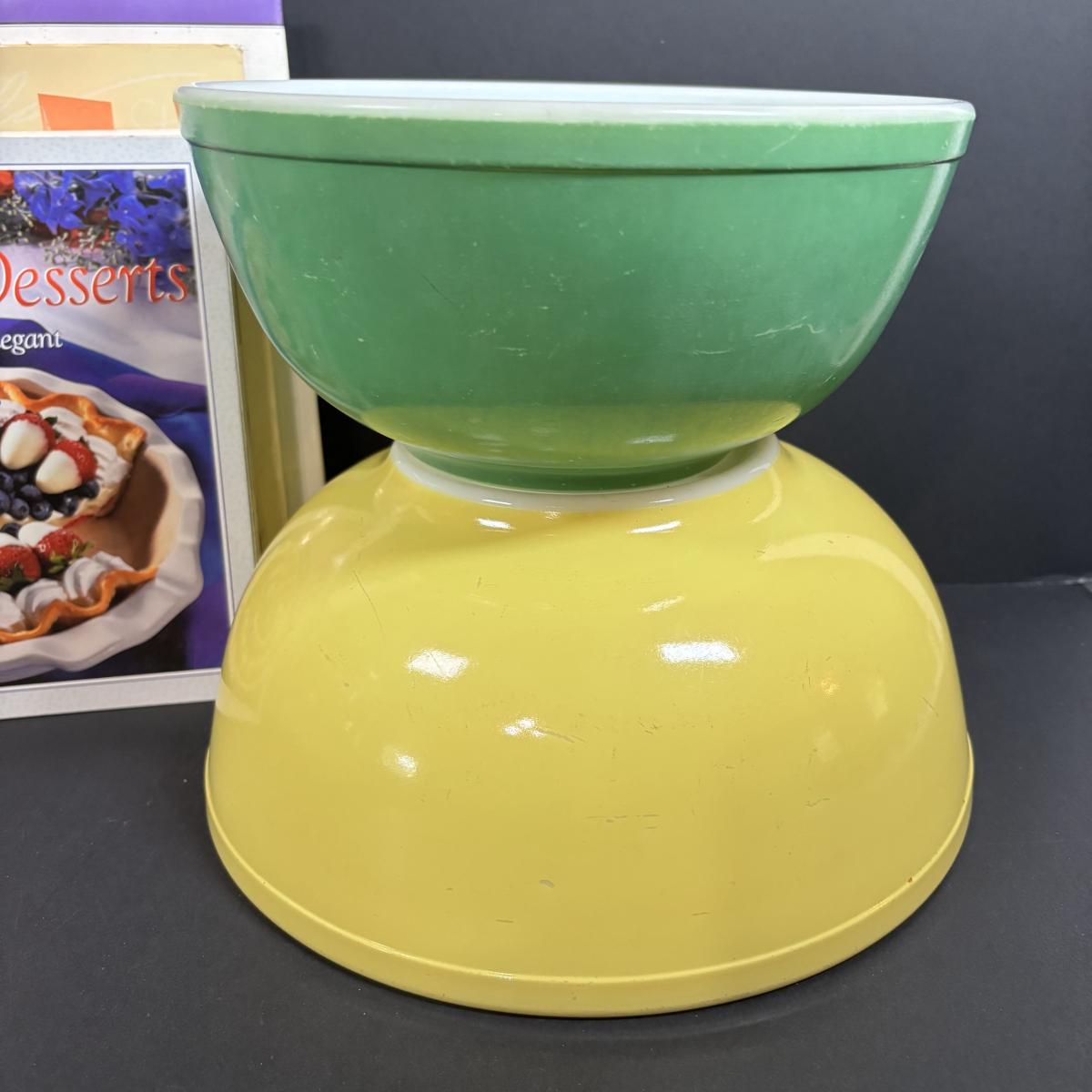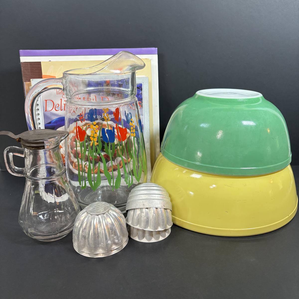 LOT 227: Pyrex Primary Color (2) Mixing Bowls, Jello Molds, Cookbooks & More