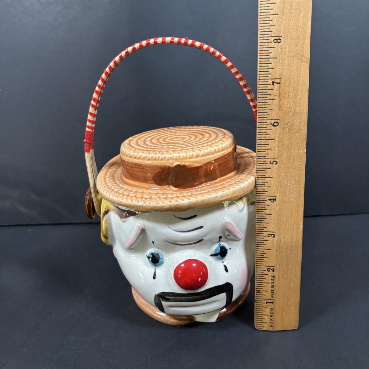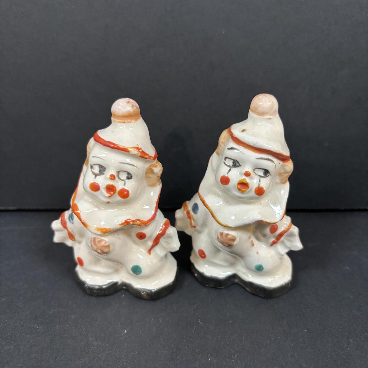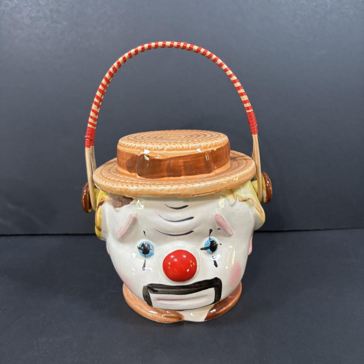 LOT 230: Ezra Brooks Shriner Clown Decanter, Sad Clown Biscuit Jar, Salt /Pepper Clowns and More