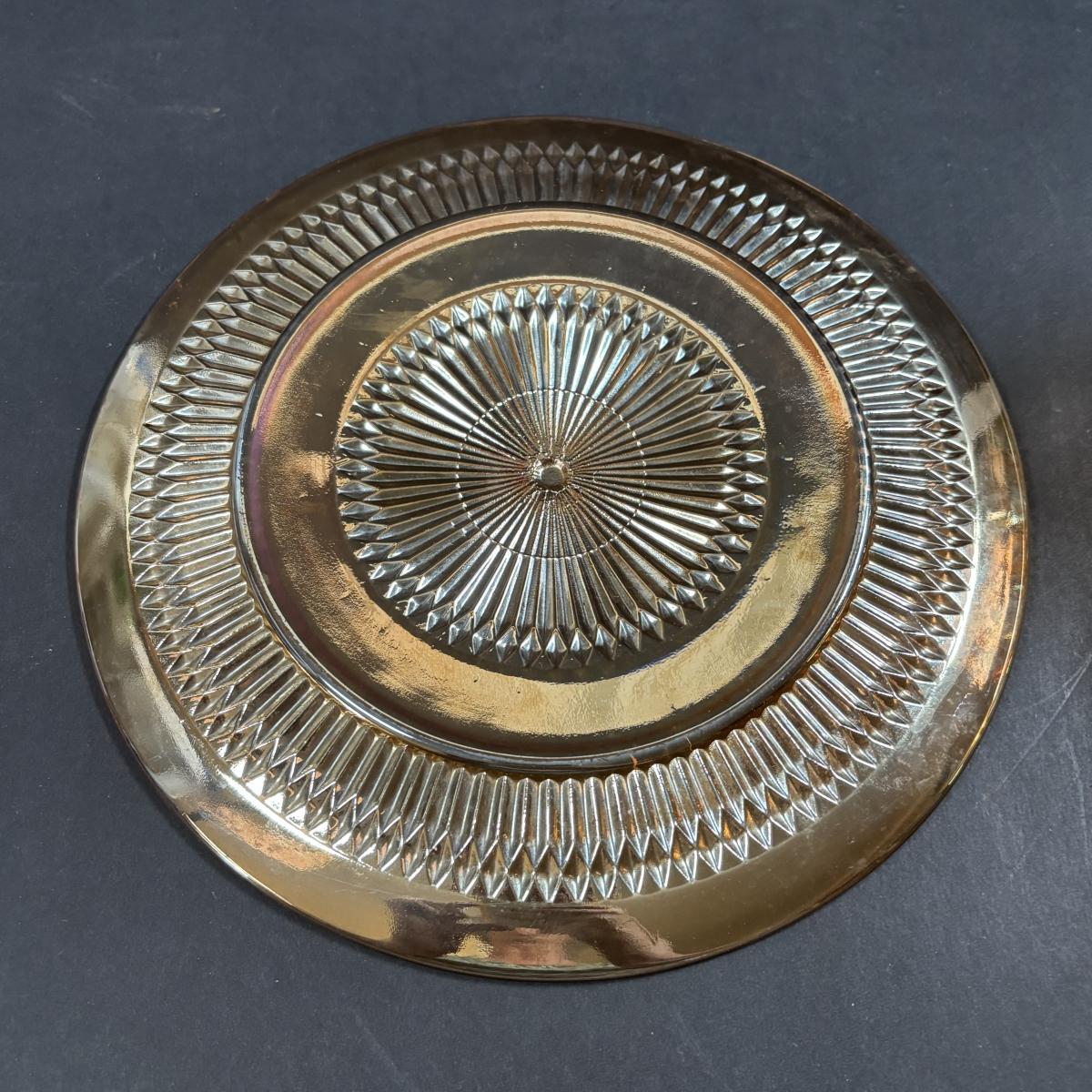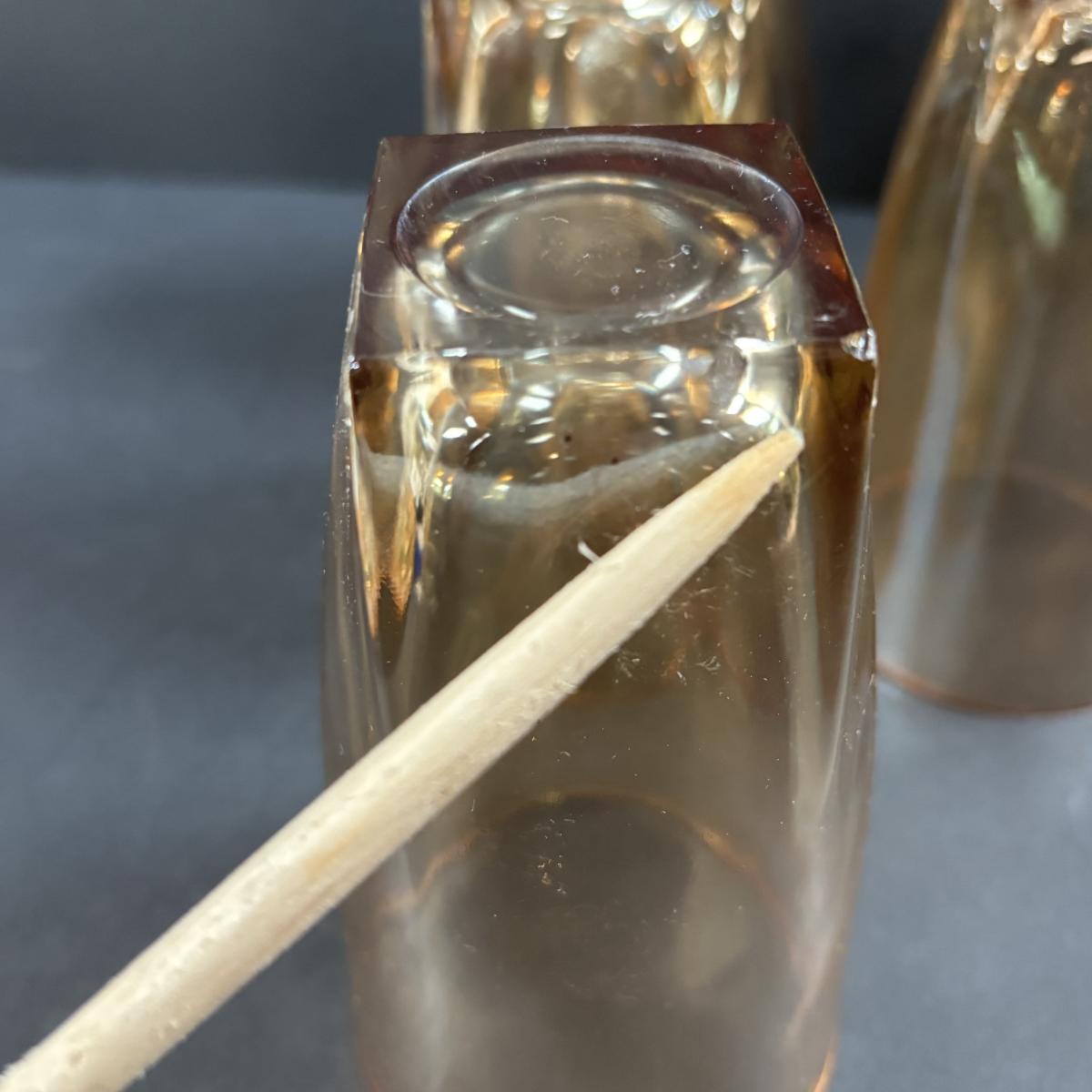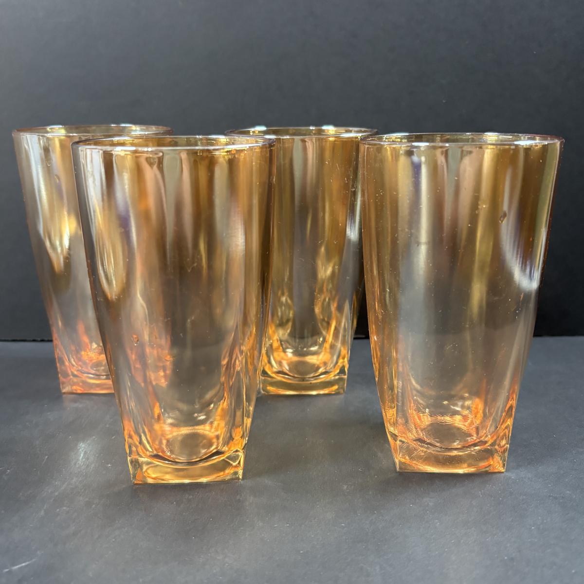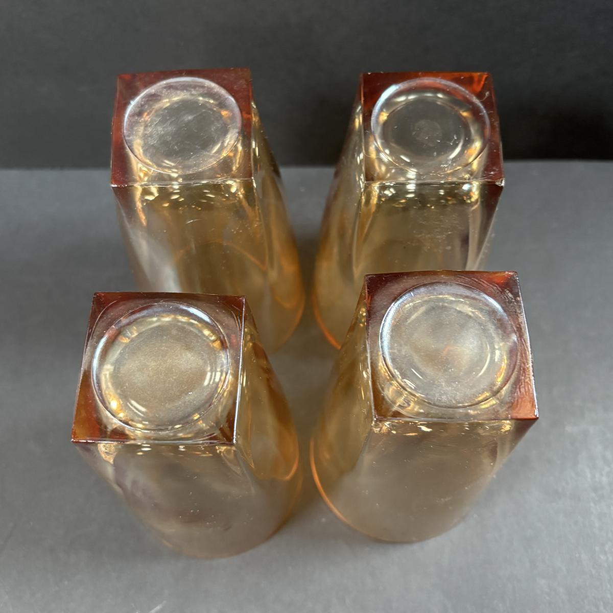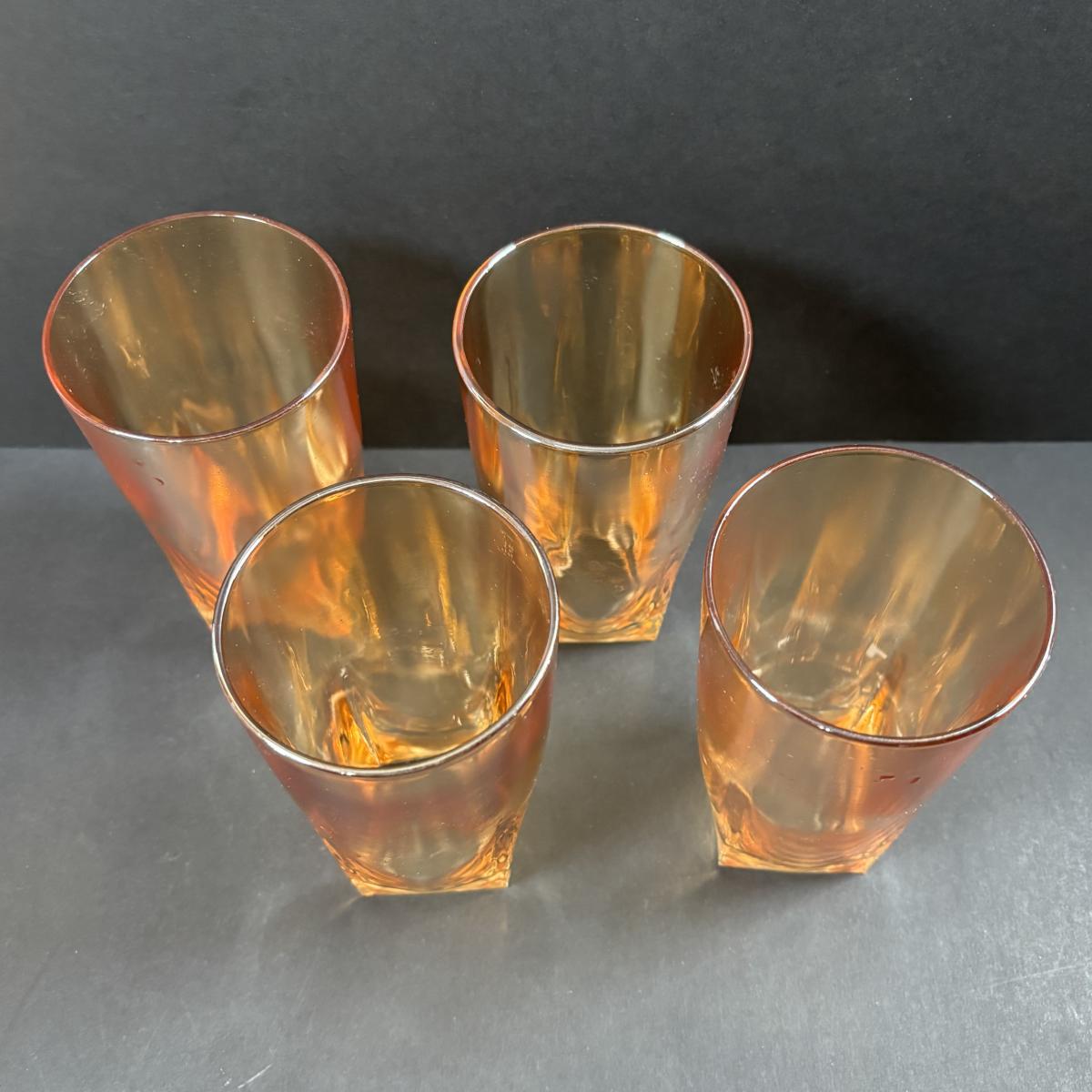 LOT 244: Bicentennial Amber Glass Liberty Bell Cookie Jar, Iridescent Marigold Tumblers & Serving Plate