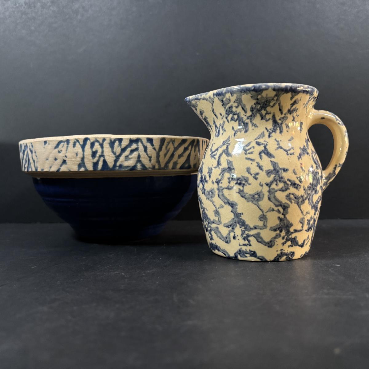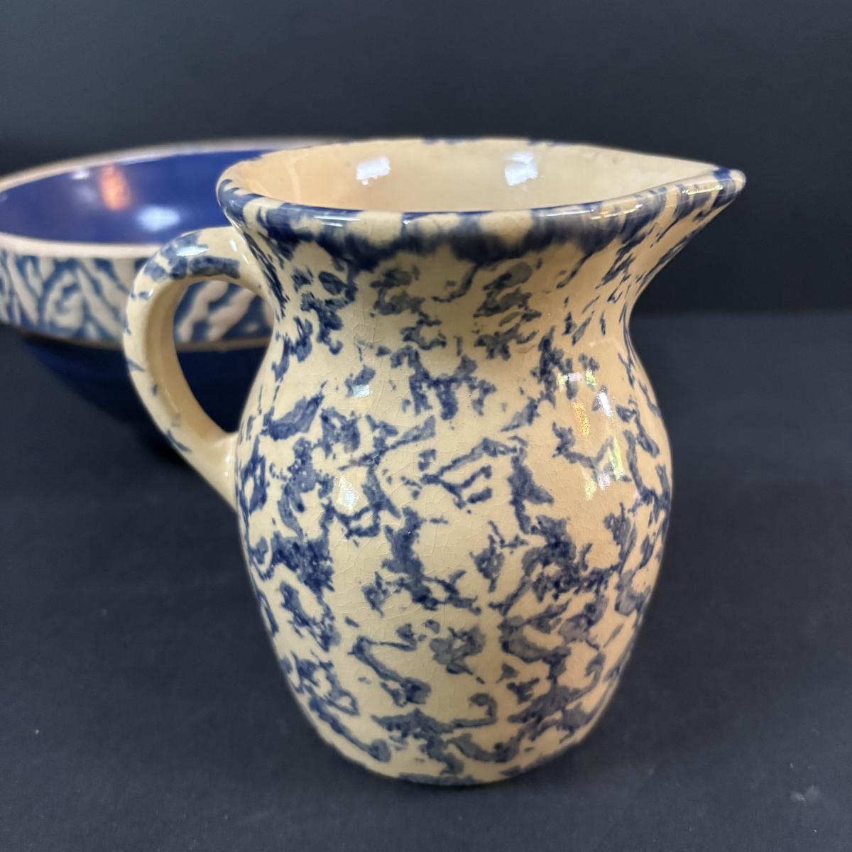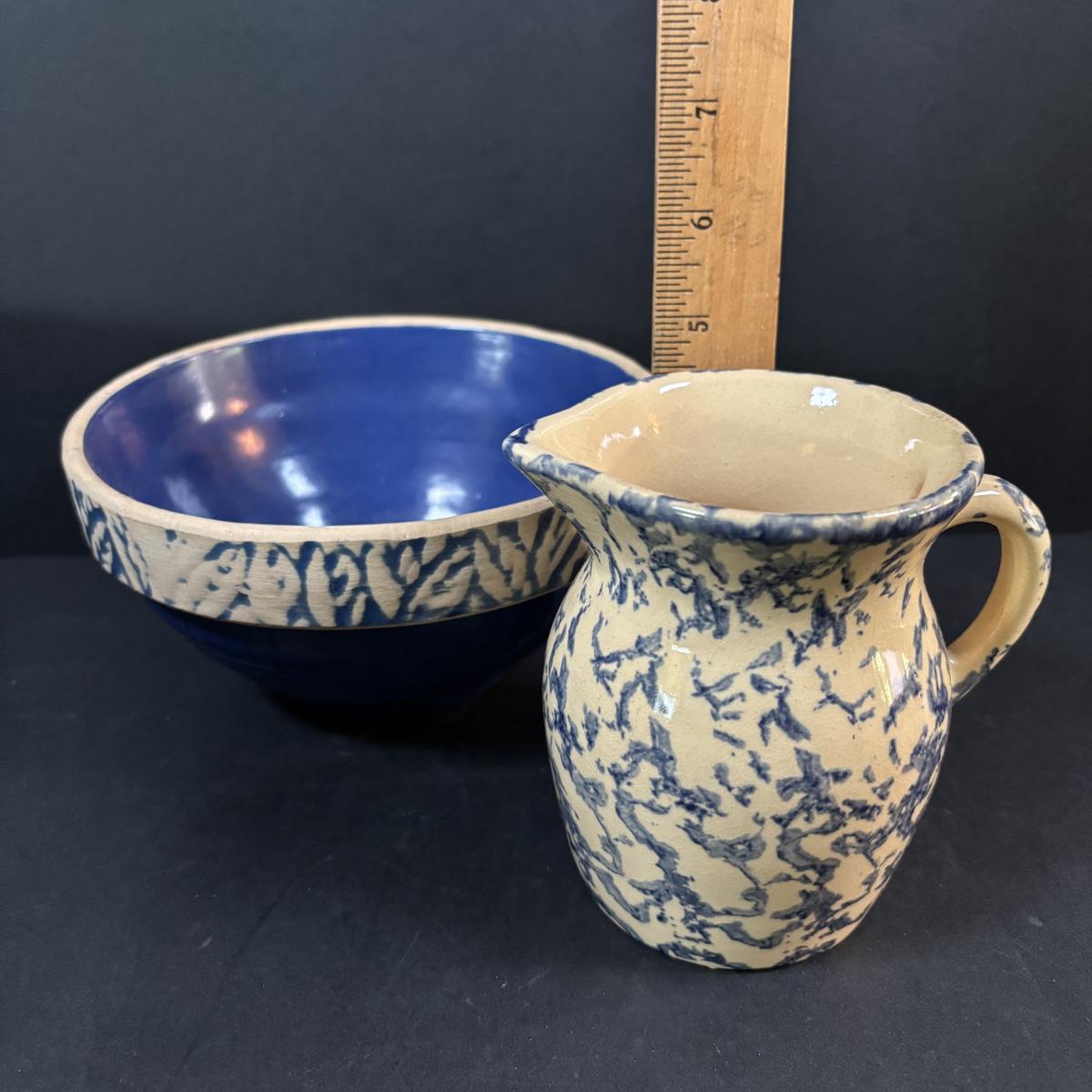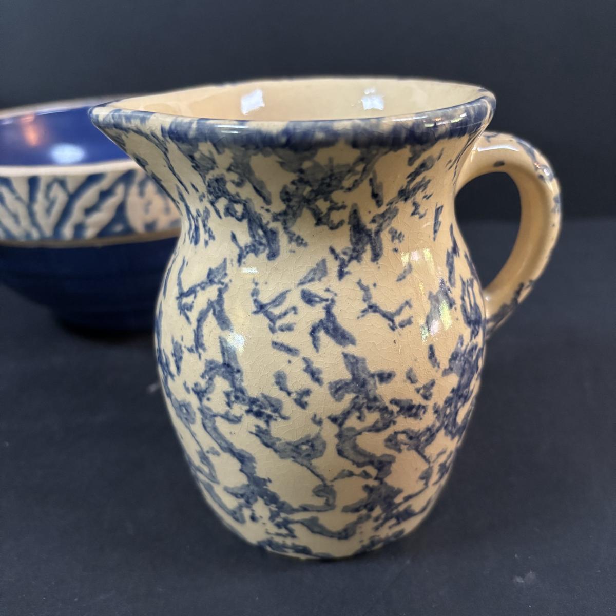 LOT 253: Williamsburg Pottery, Robinson Ransbottom Roseville spongeware Pitcher, 9-inch USA Brown Glaze Bowl & More