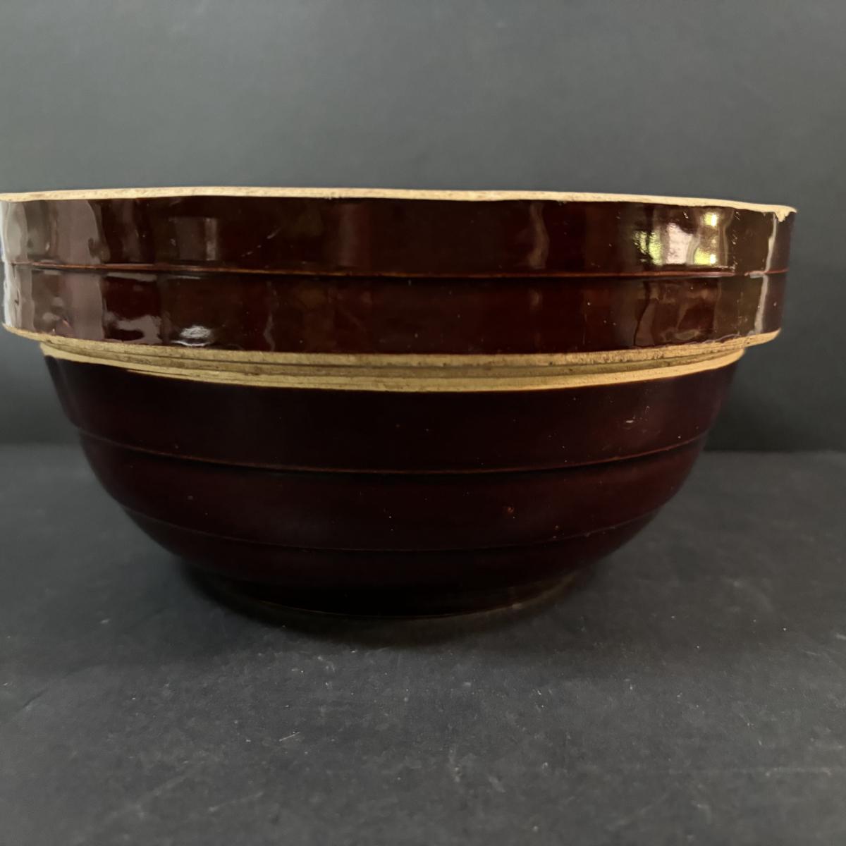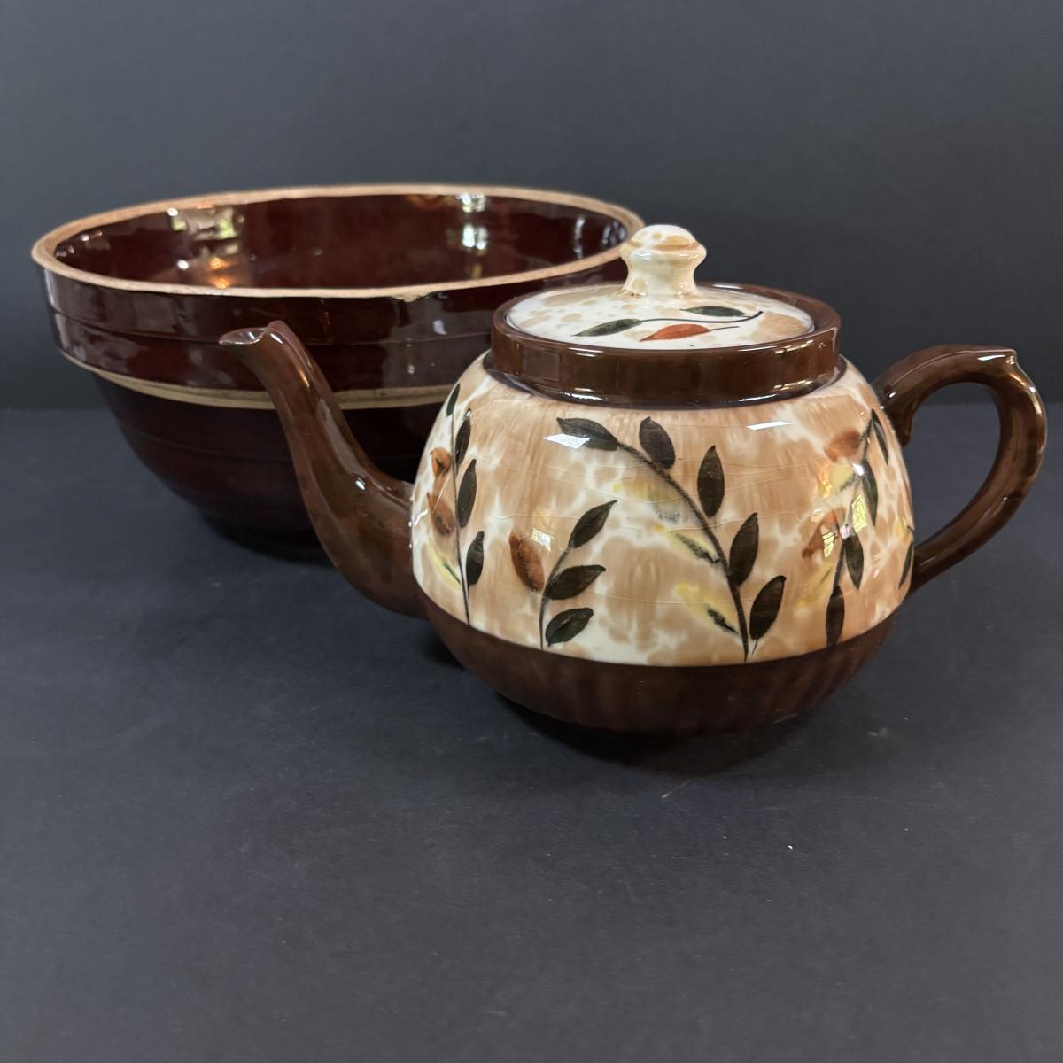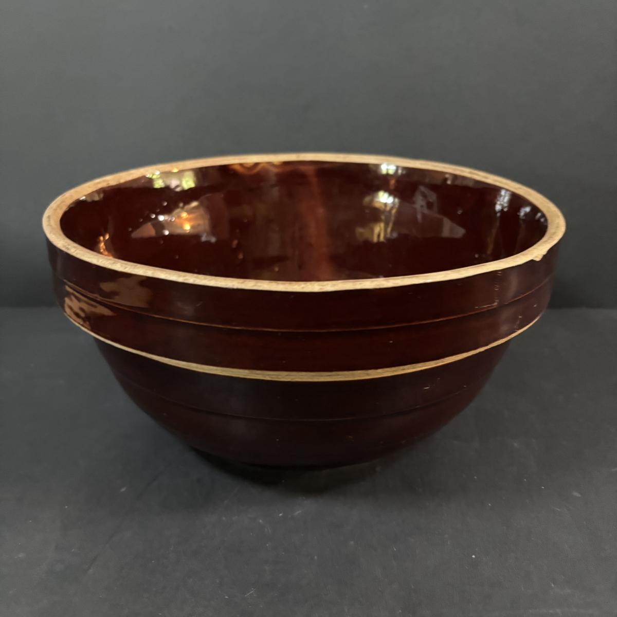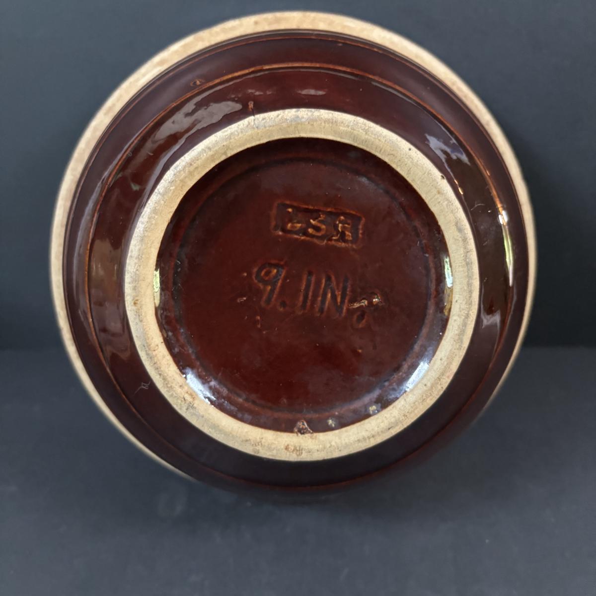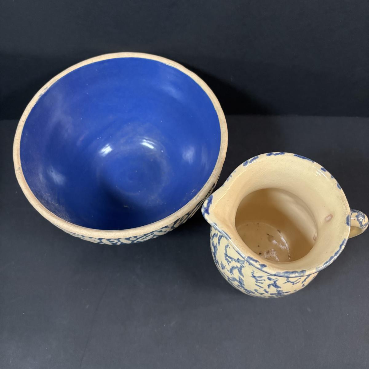 LOT 253: Williamsburg Pottery, Robinson Ransbottom Roseville spongeware Pitcher, 9-inch USA Brown Glaze Bowl & More