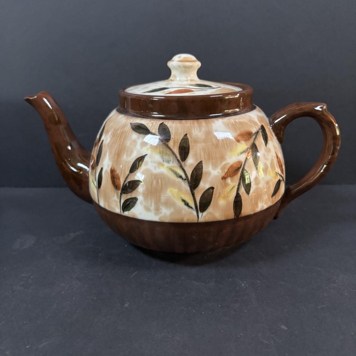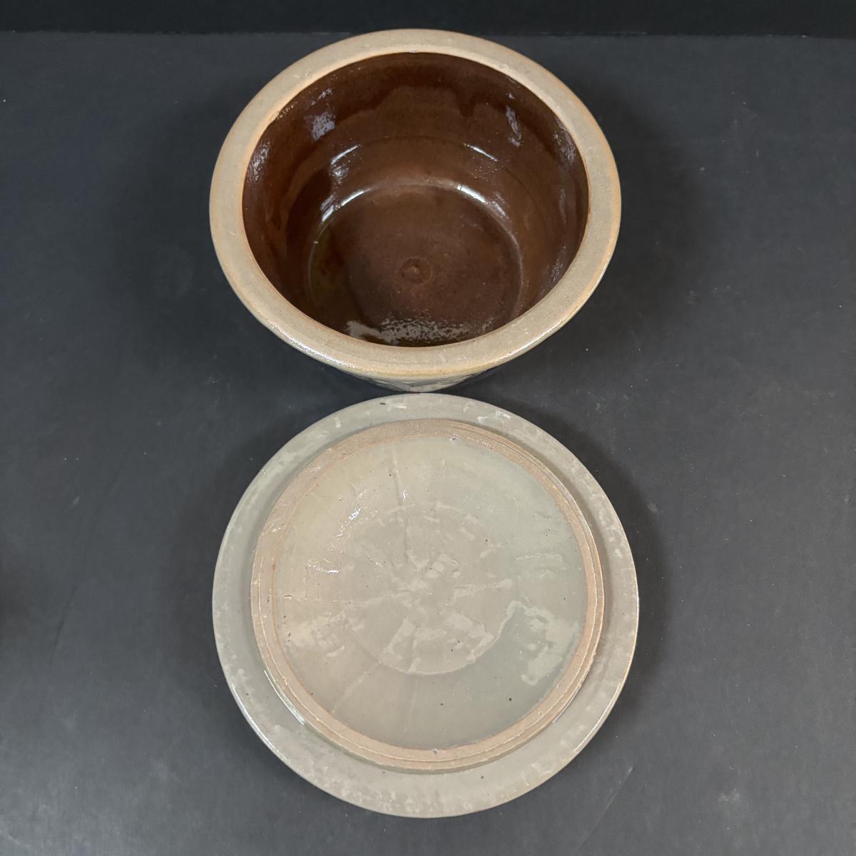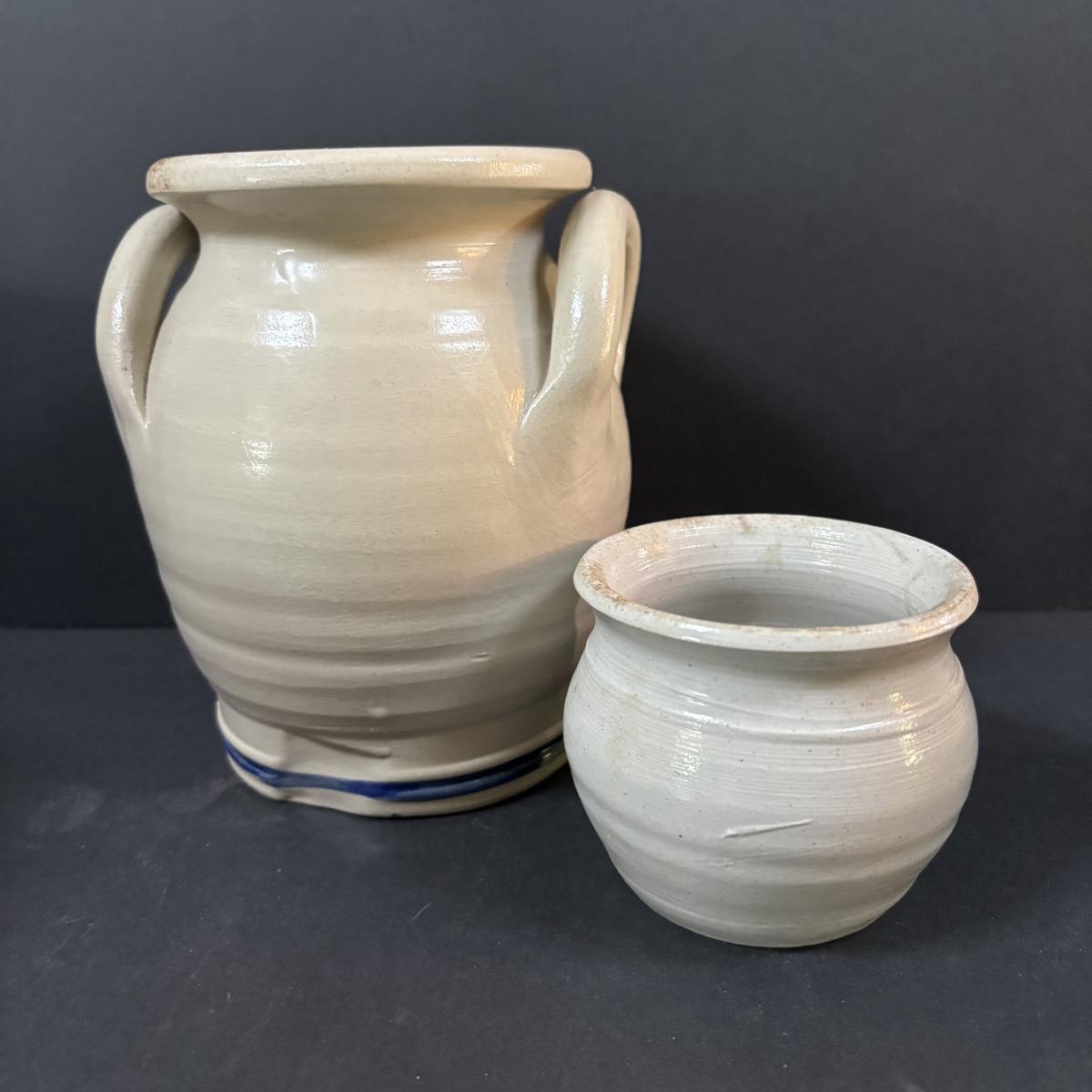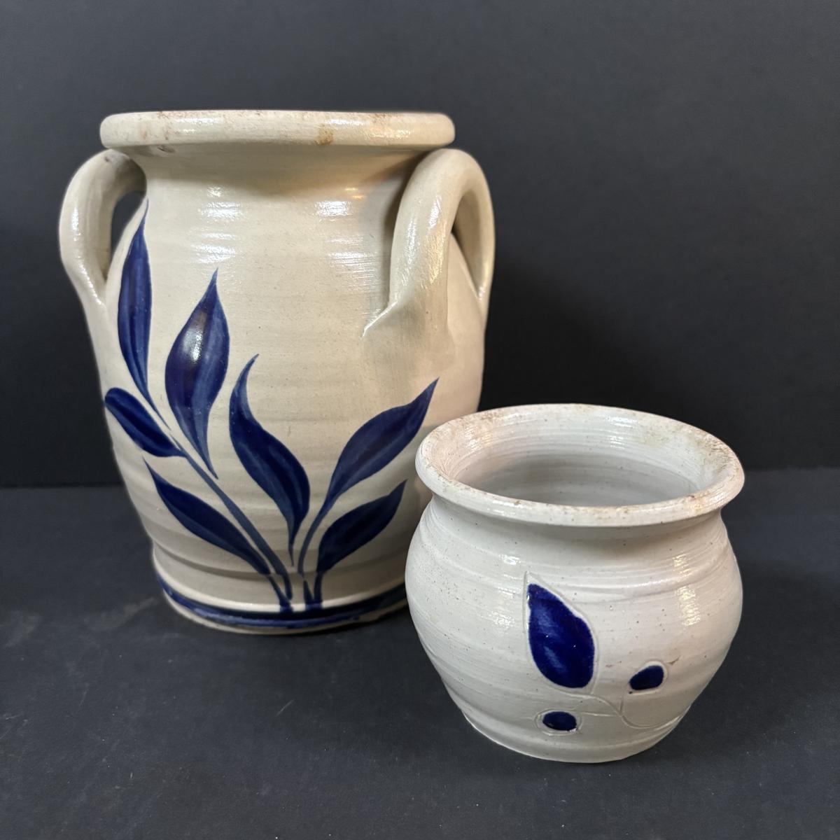 LOT 253: Williamsburg Pottery, Robinson Ransbottom Roseville spongeware Pitcher, 9-inch USA Brown Glaze Bowl & More