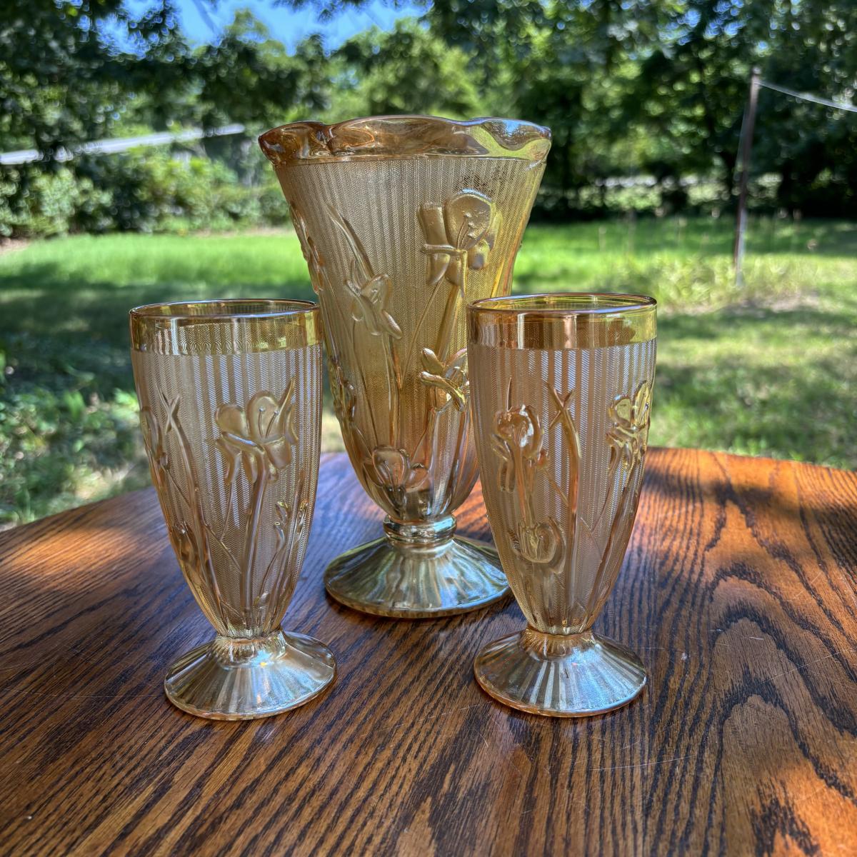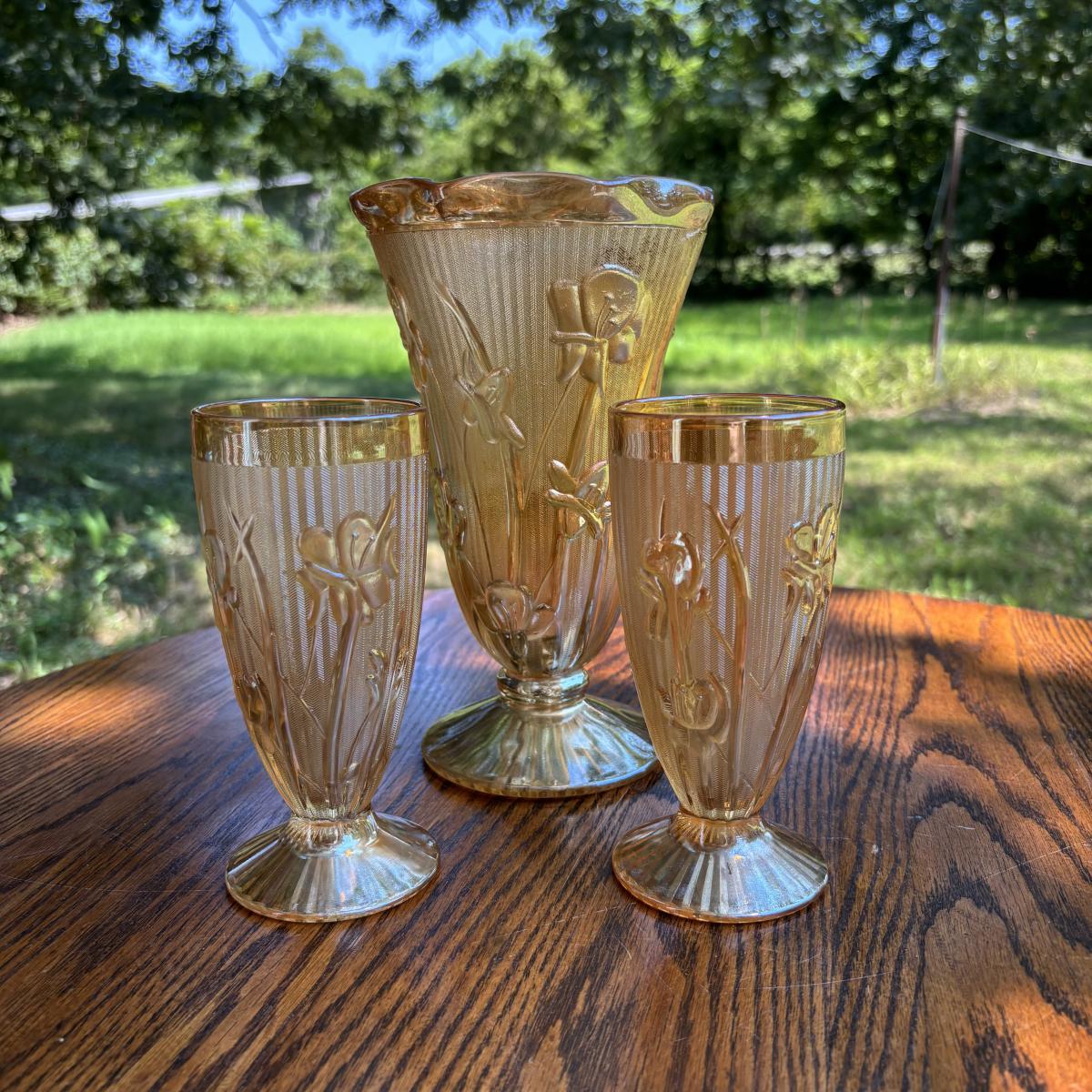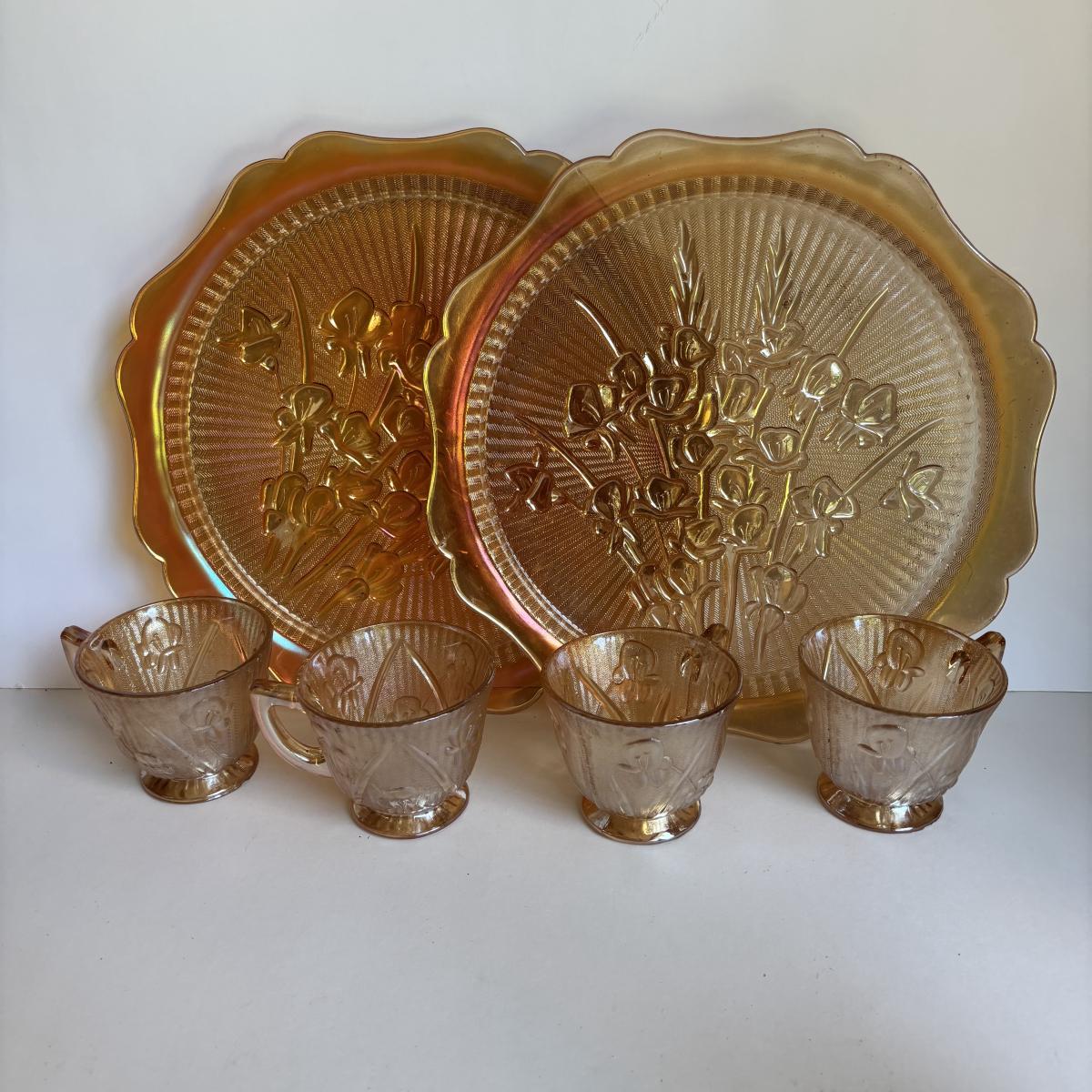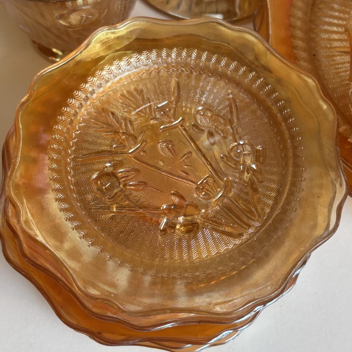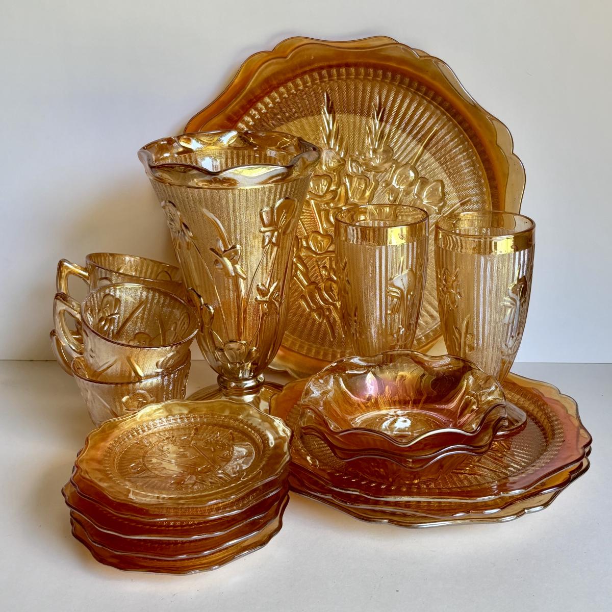 LOT 255: Jeanette Glass Iris and Herringbone Marigold Carnival Glass Collection