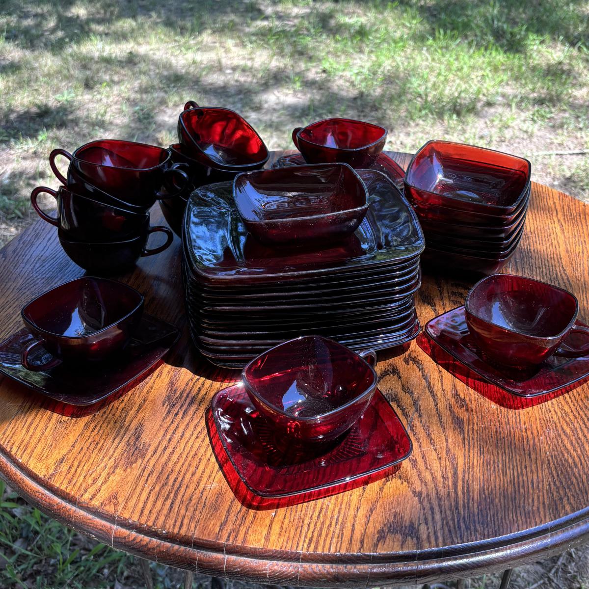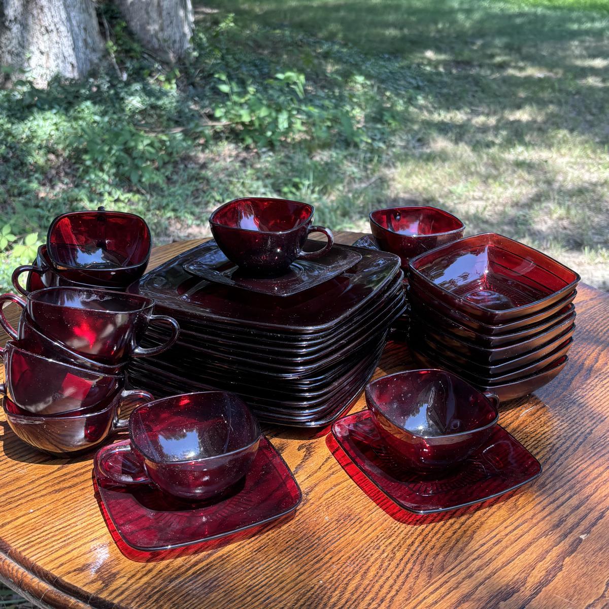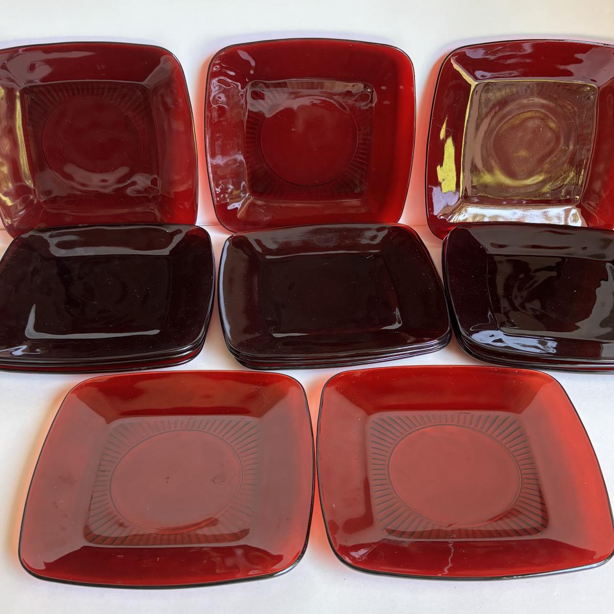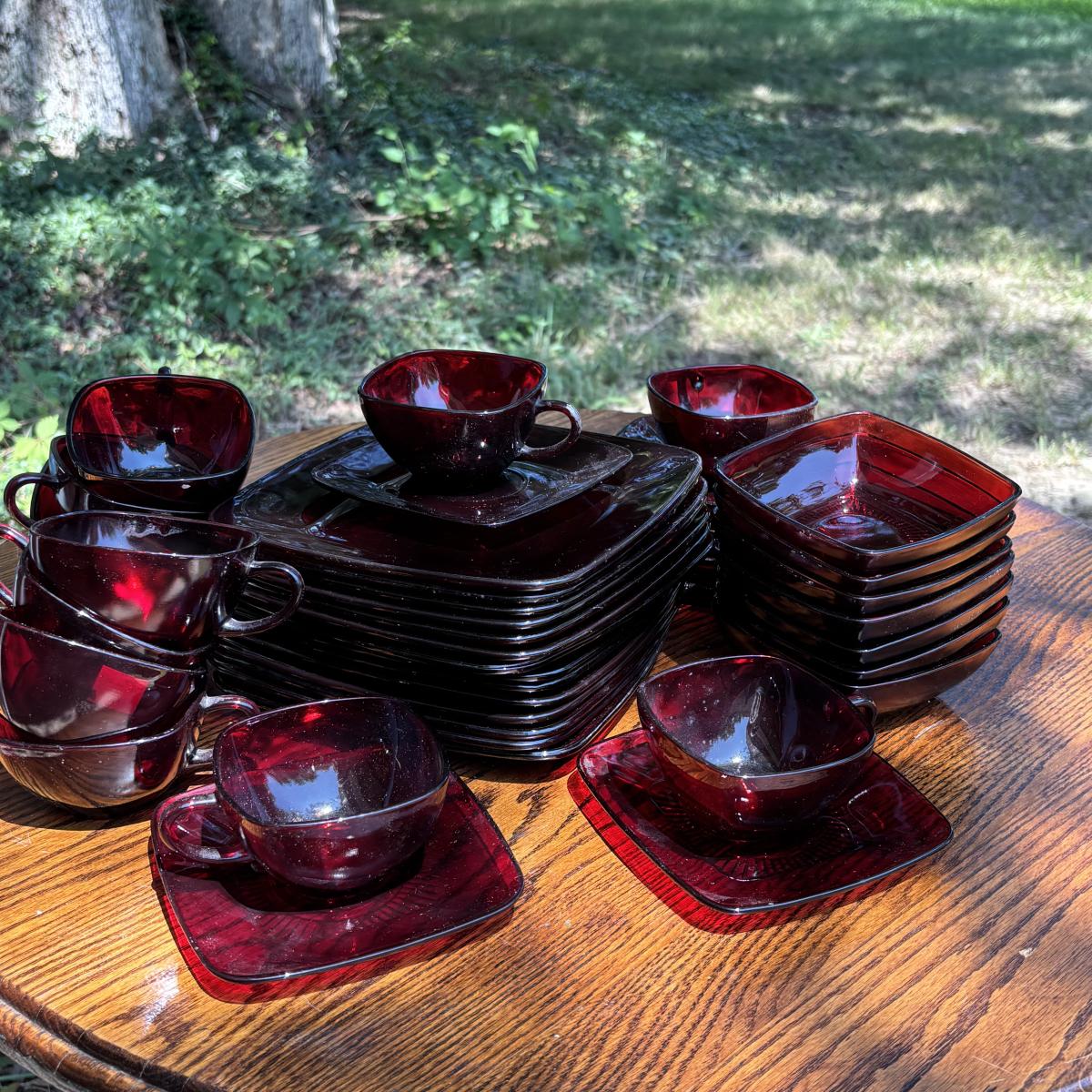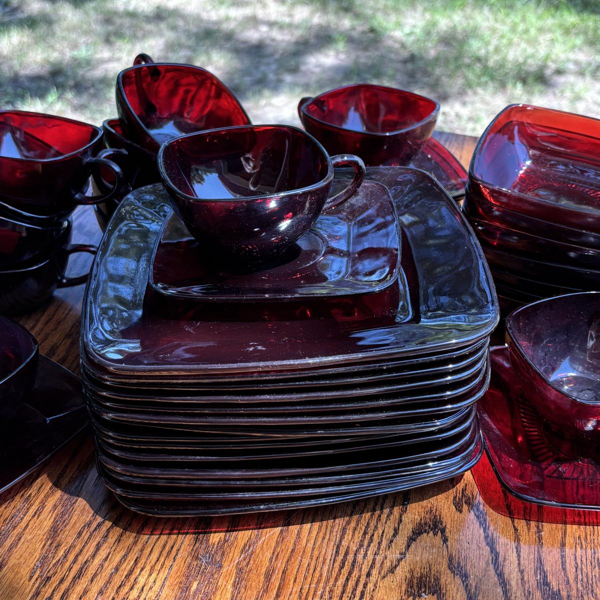 LOT 257: Anchor Hocking Royal Ruby Charm Square Glassware Collection