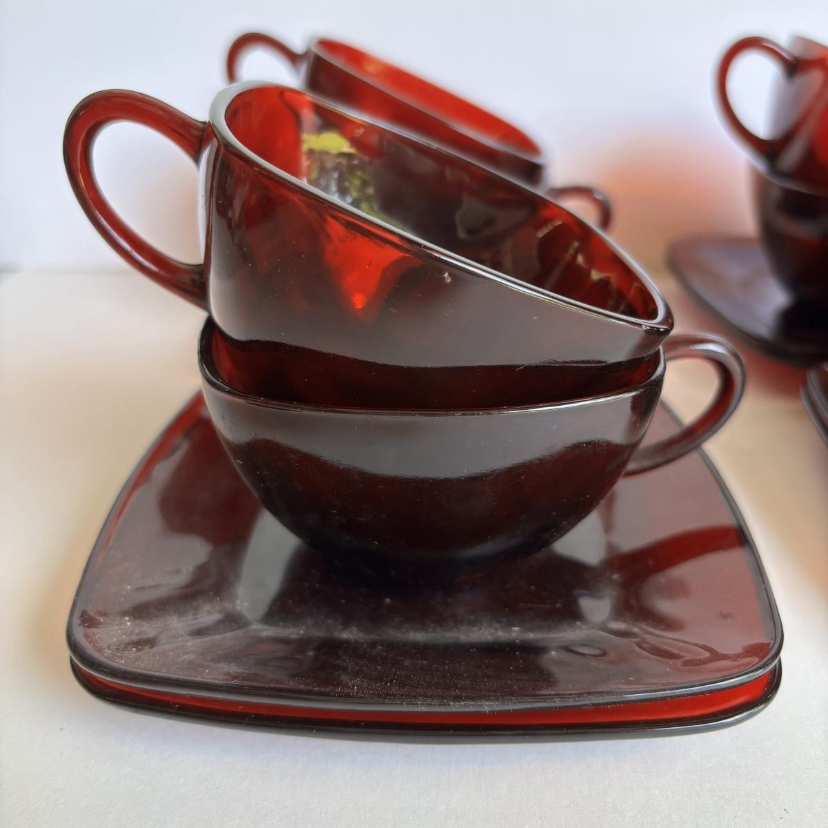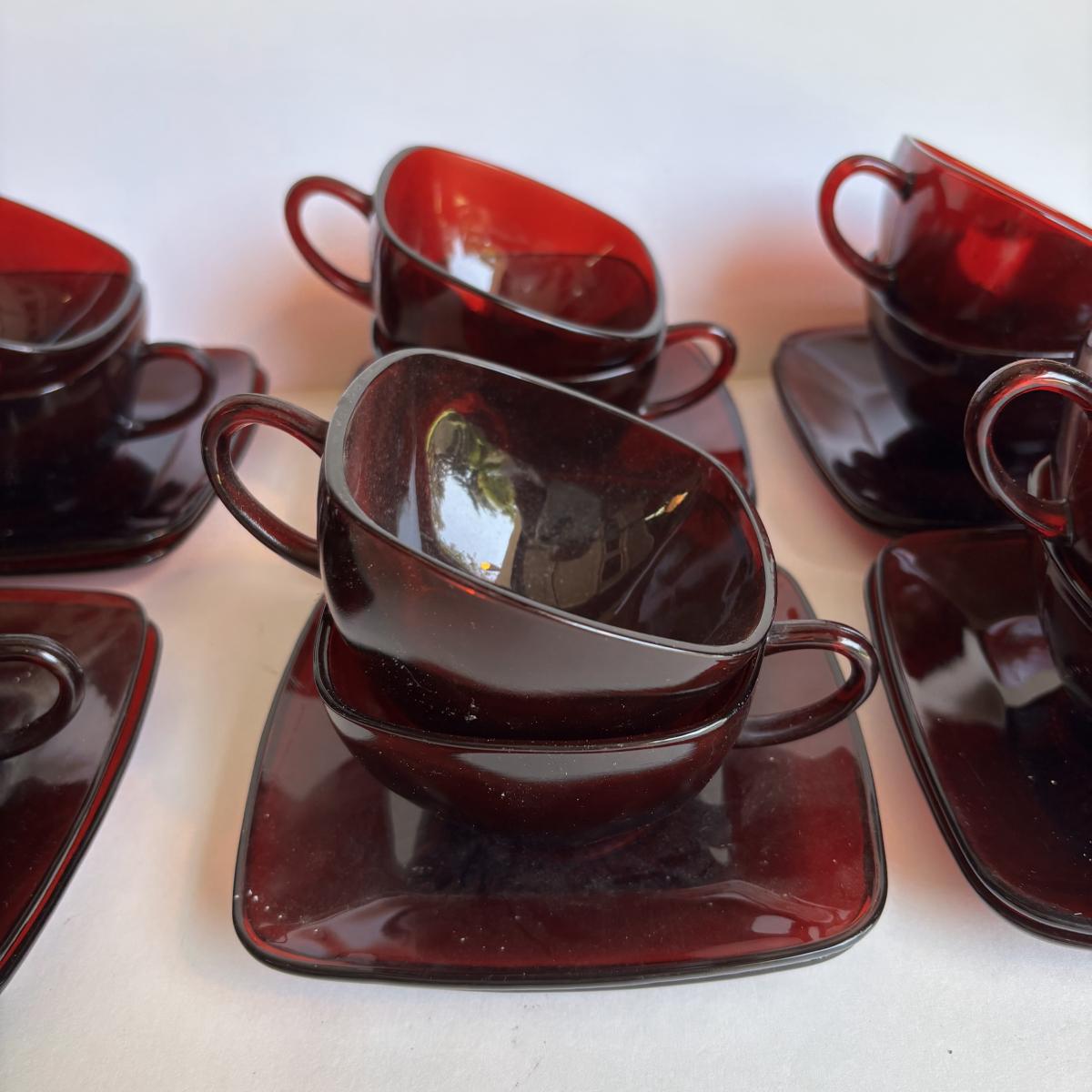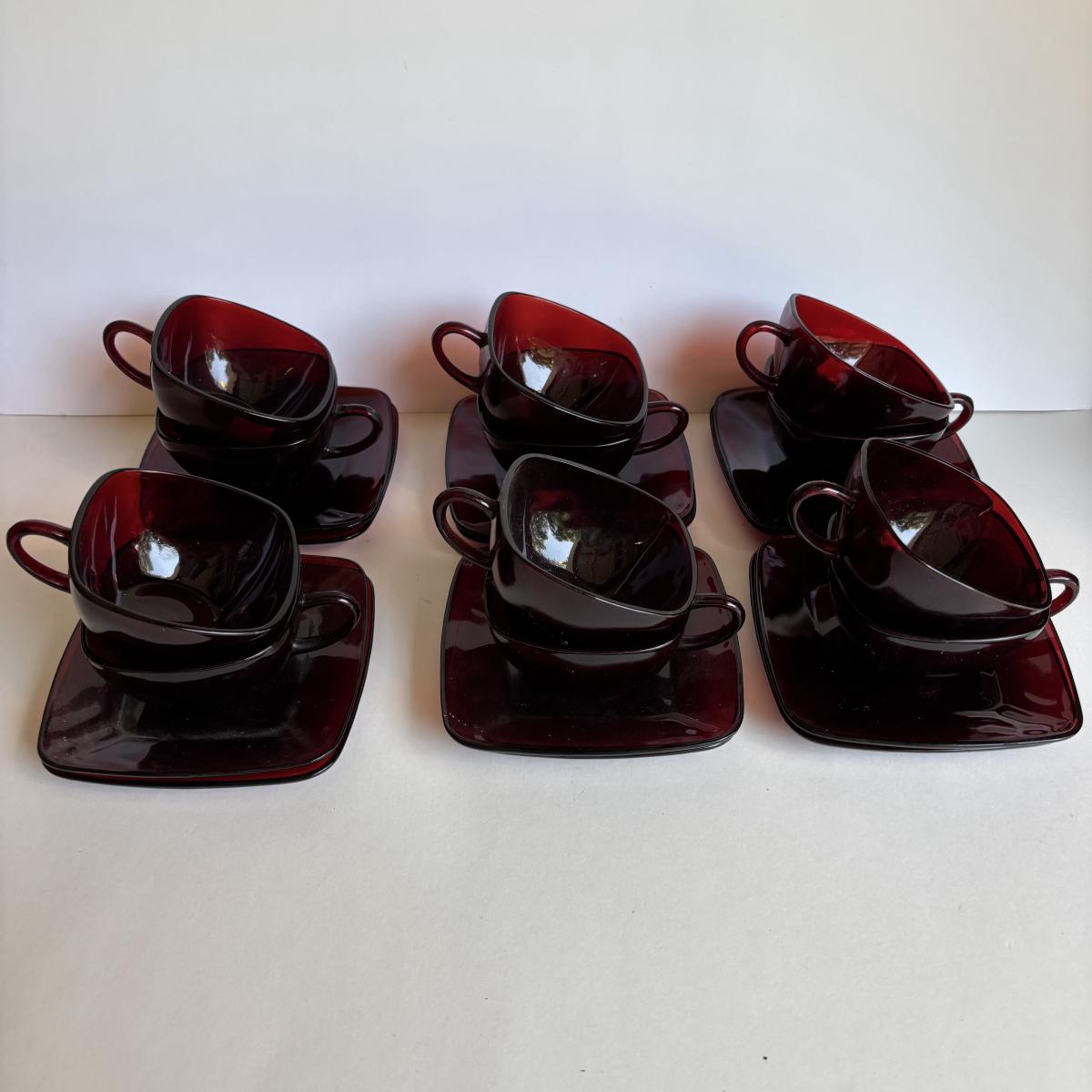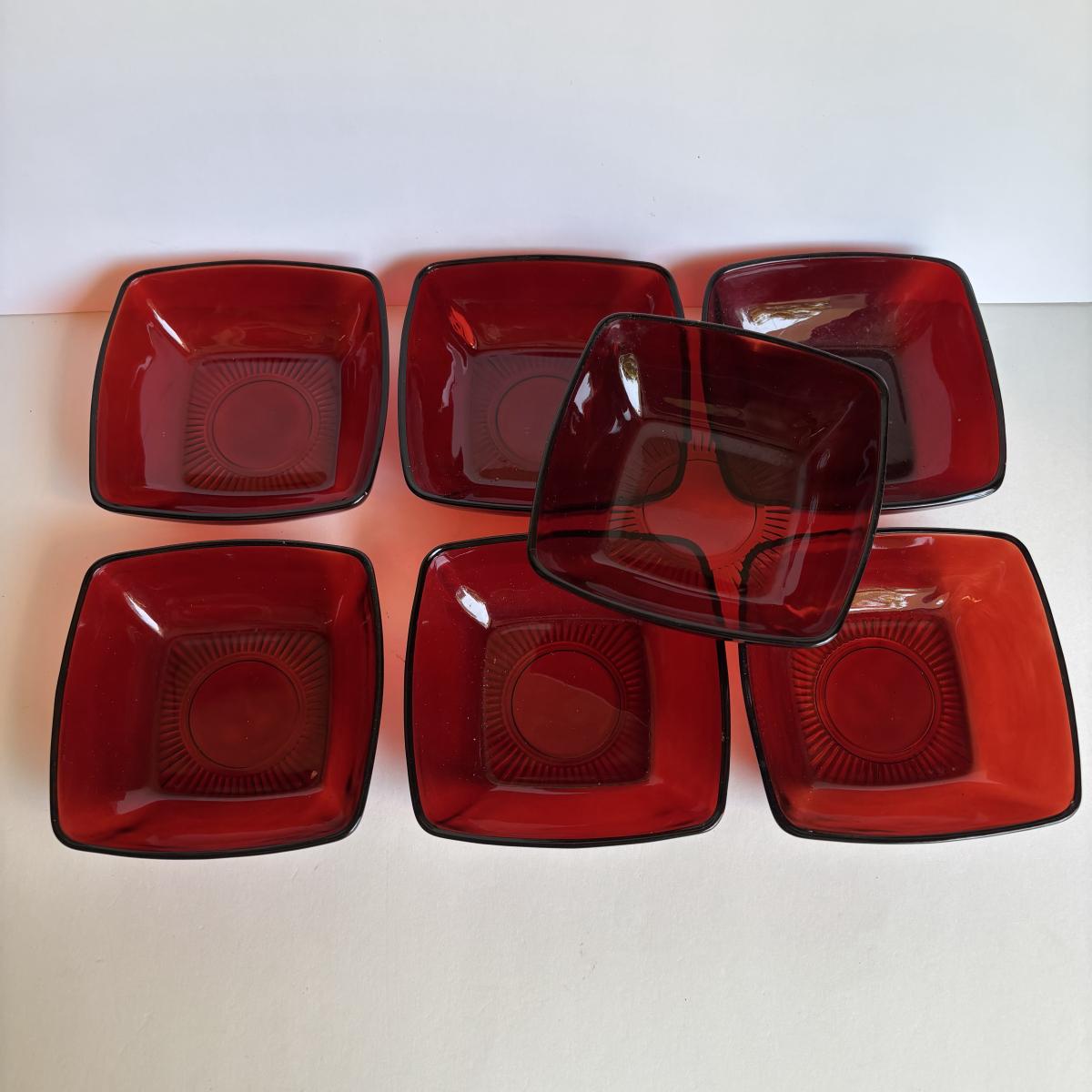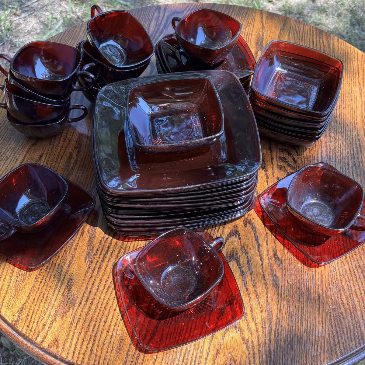 LOT 257: Anchor Hocking Royal Ruby Charm Square Glassware Collection