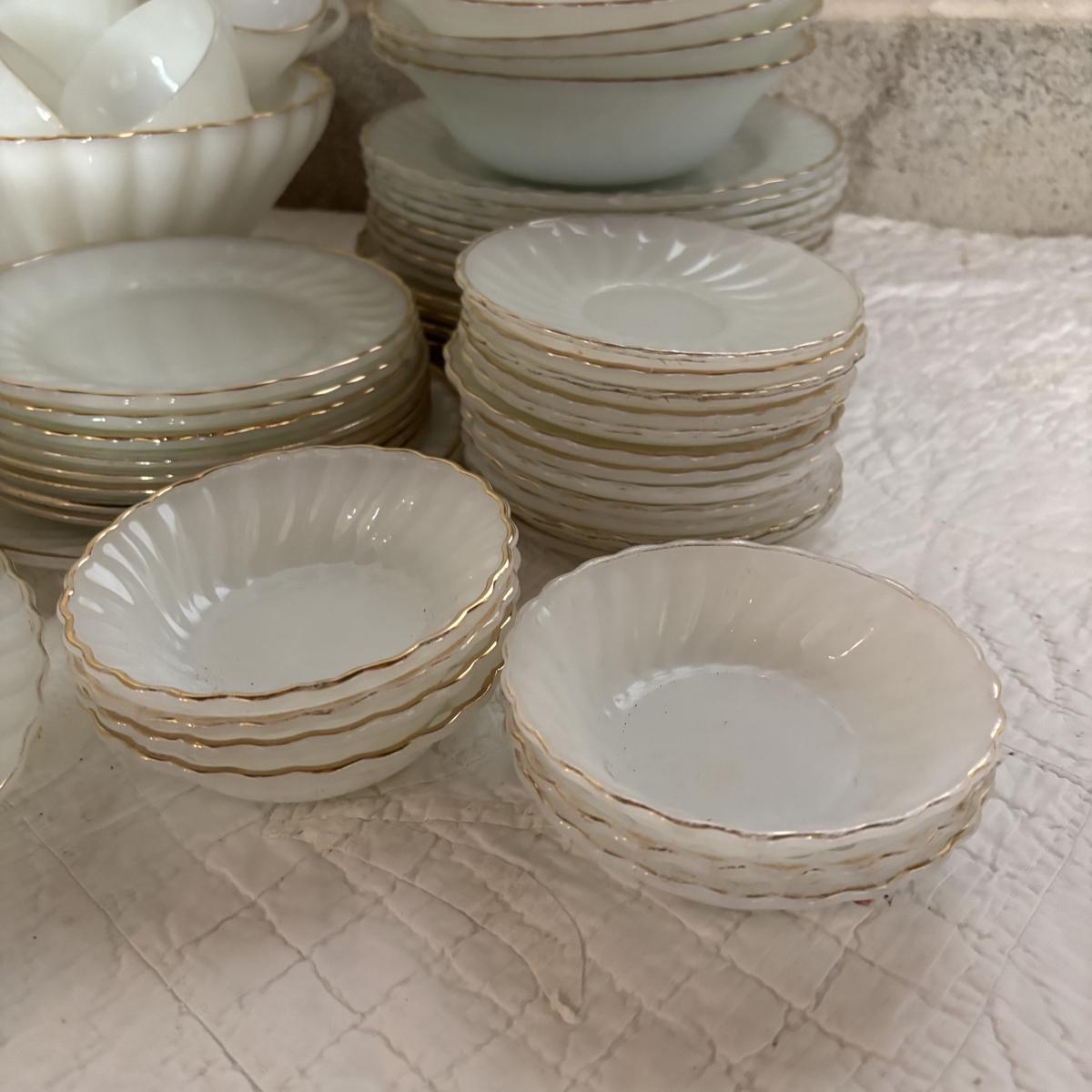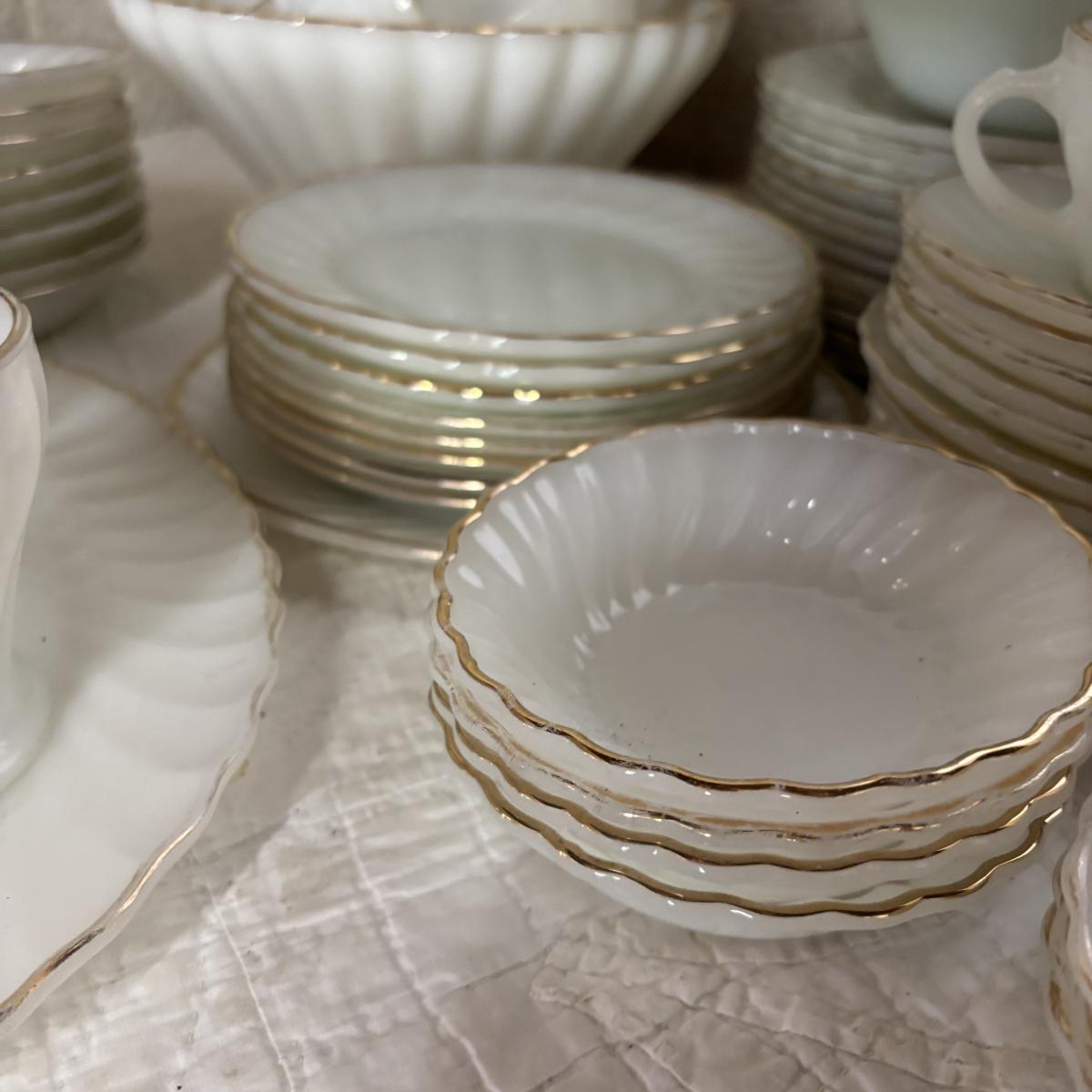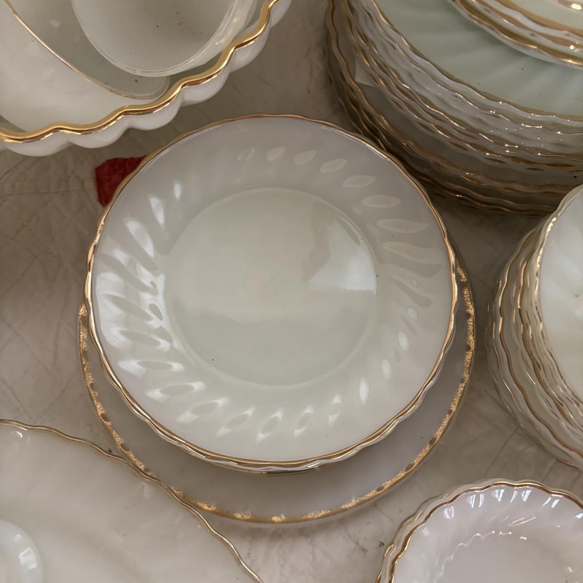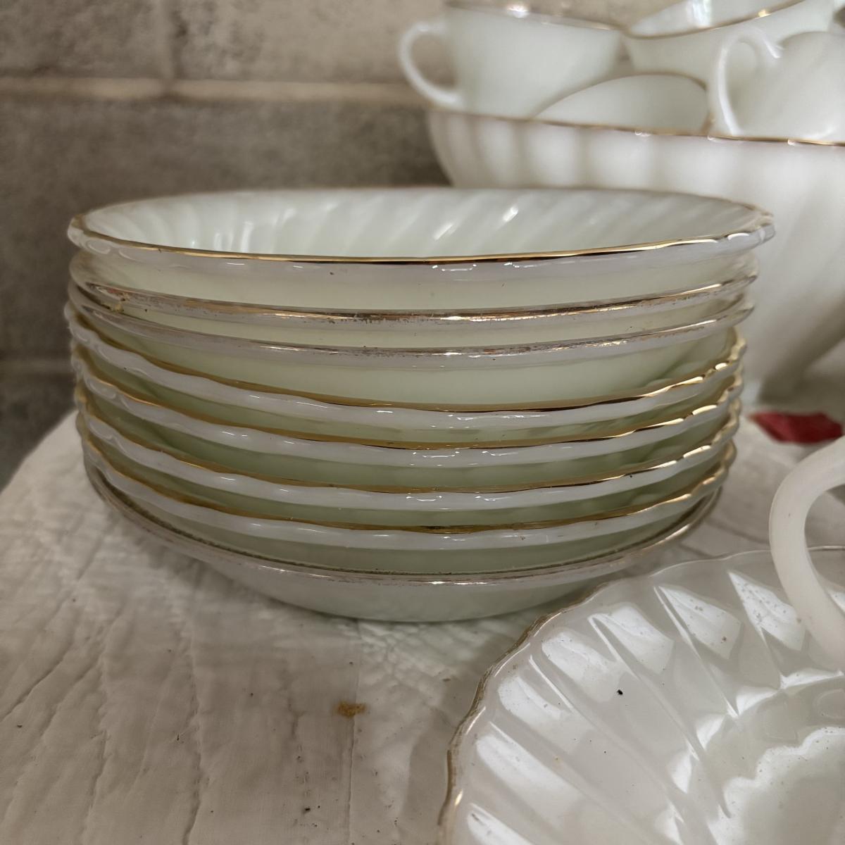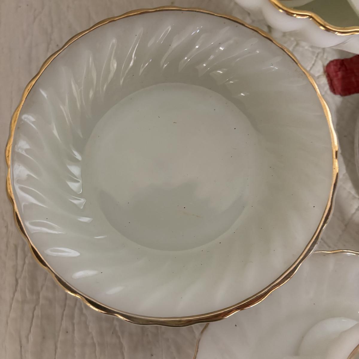 LOT 260: Vintage Milk Glass w/Gold Trim Dish Collection