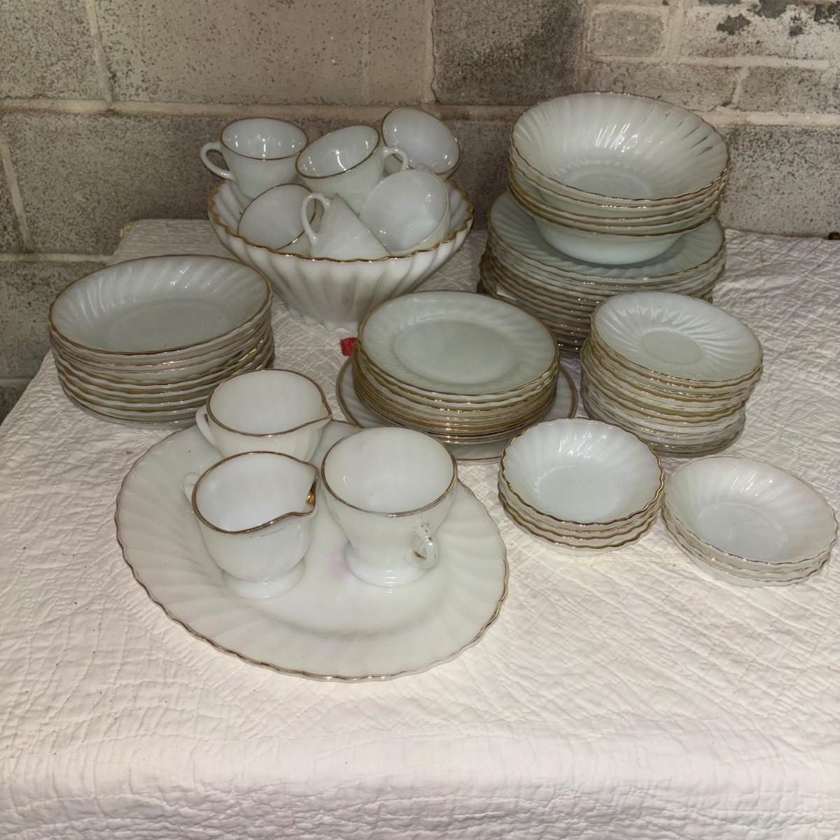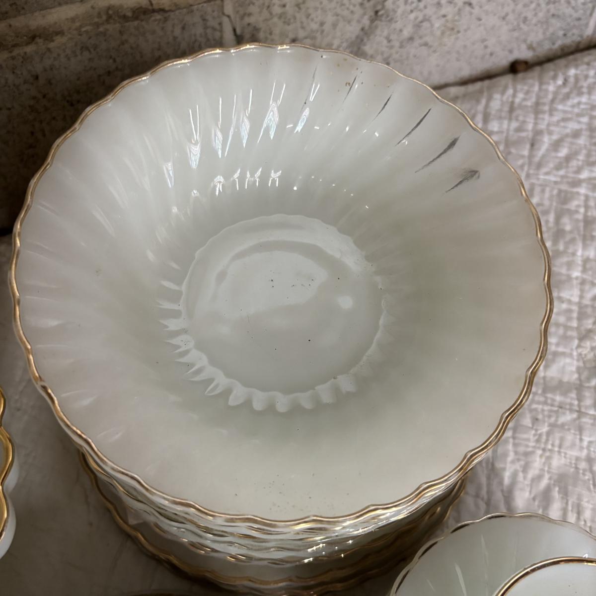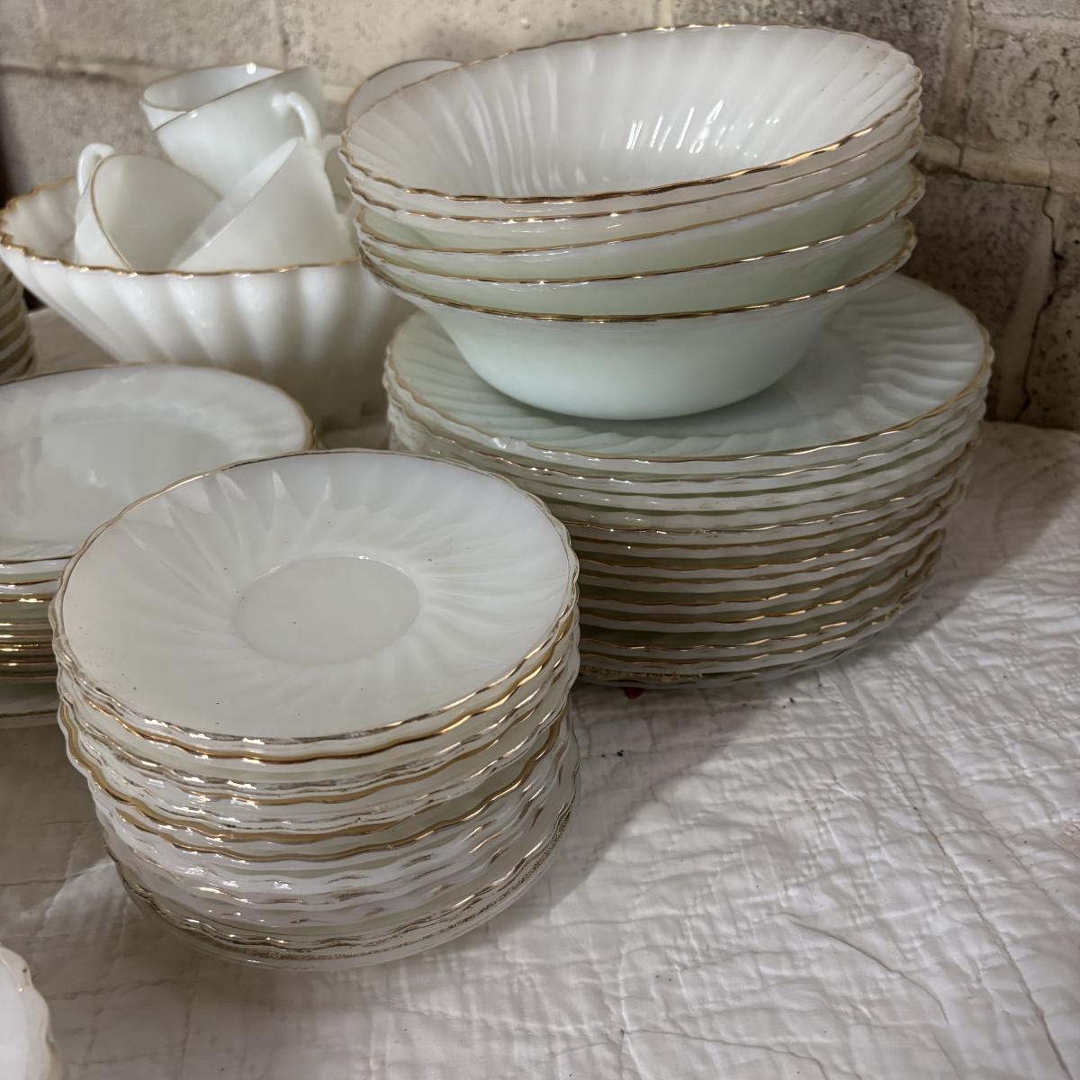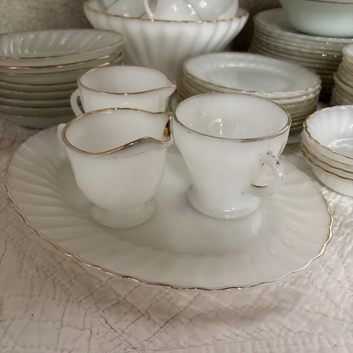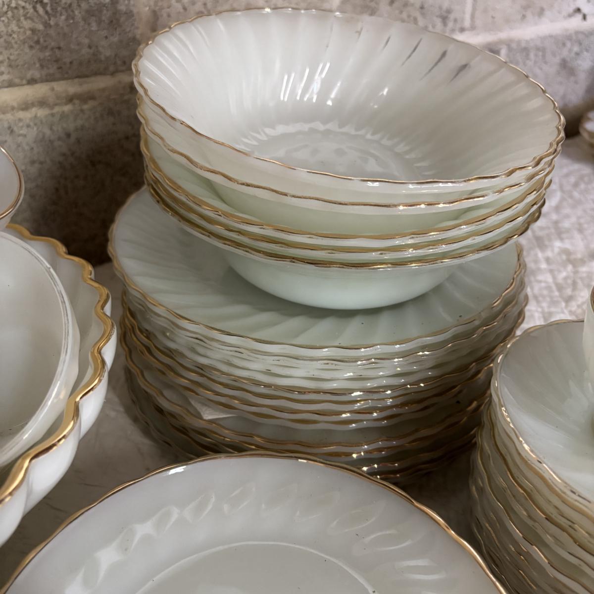 LOT 260: Vintage Milk Glass w/Gold Trim Dish Collection