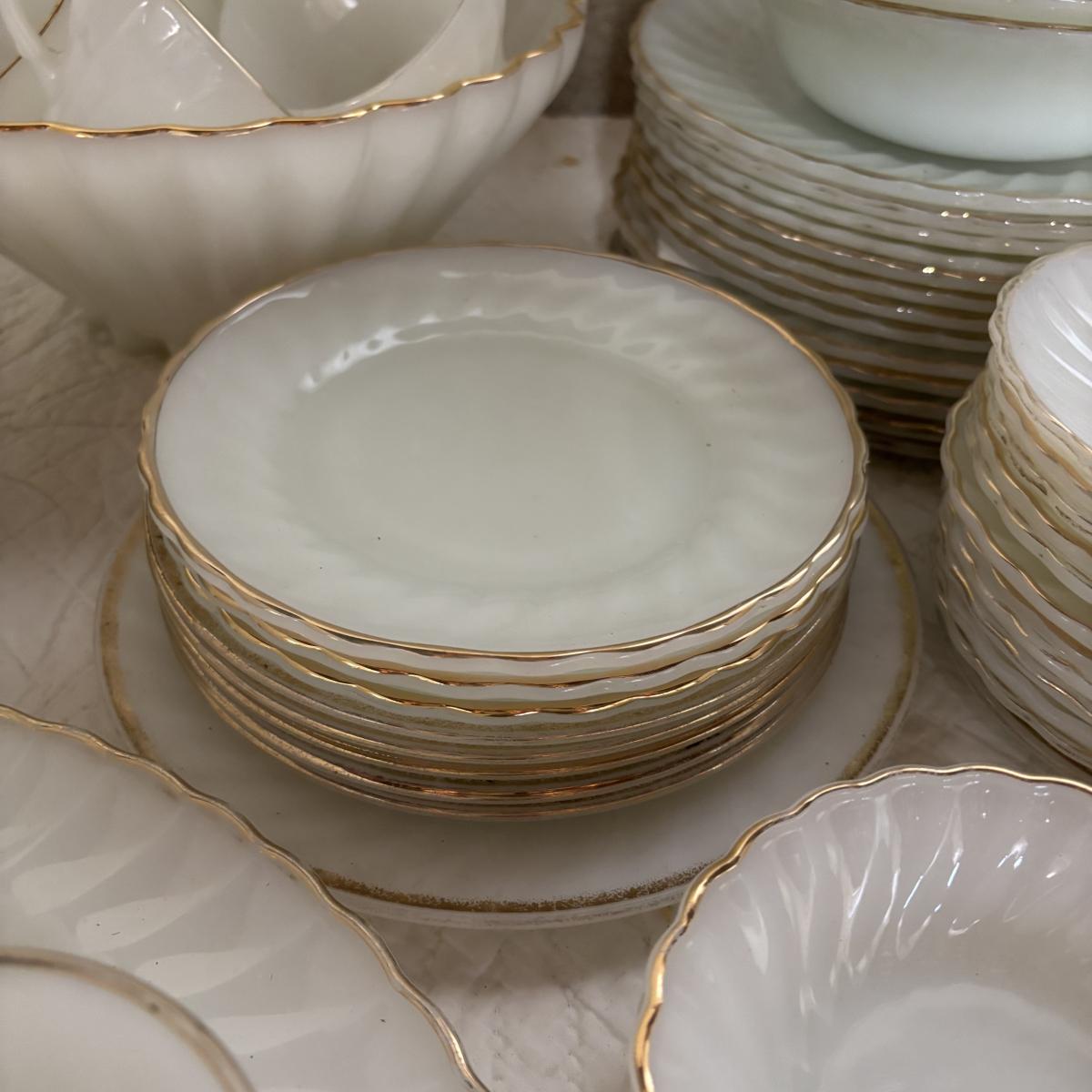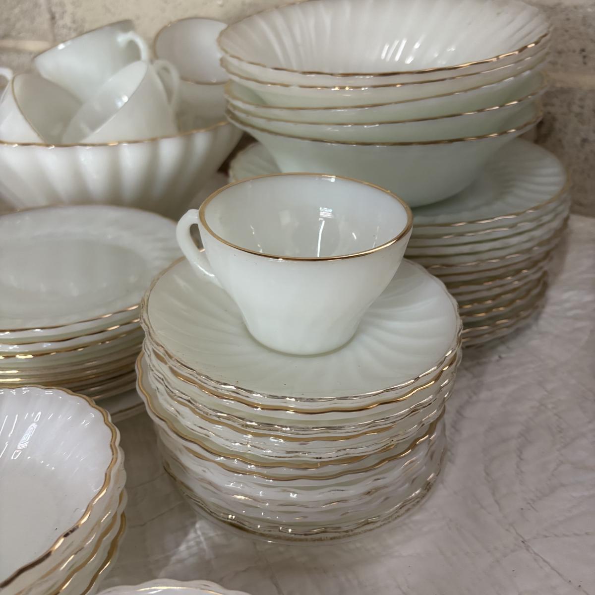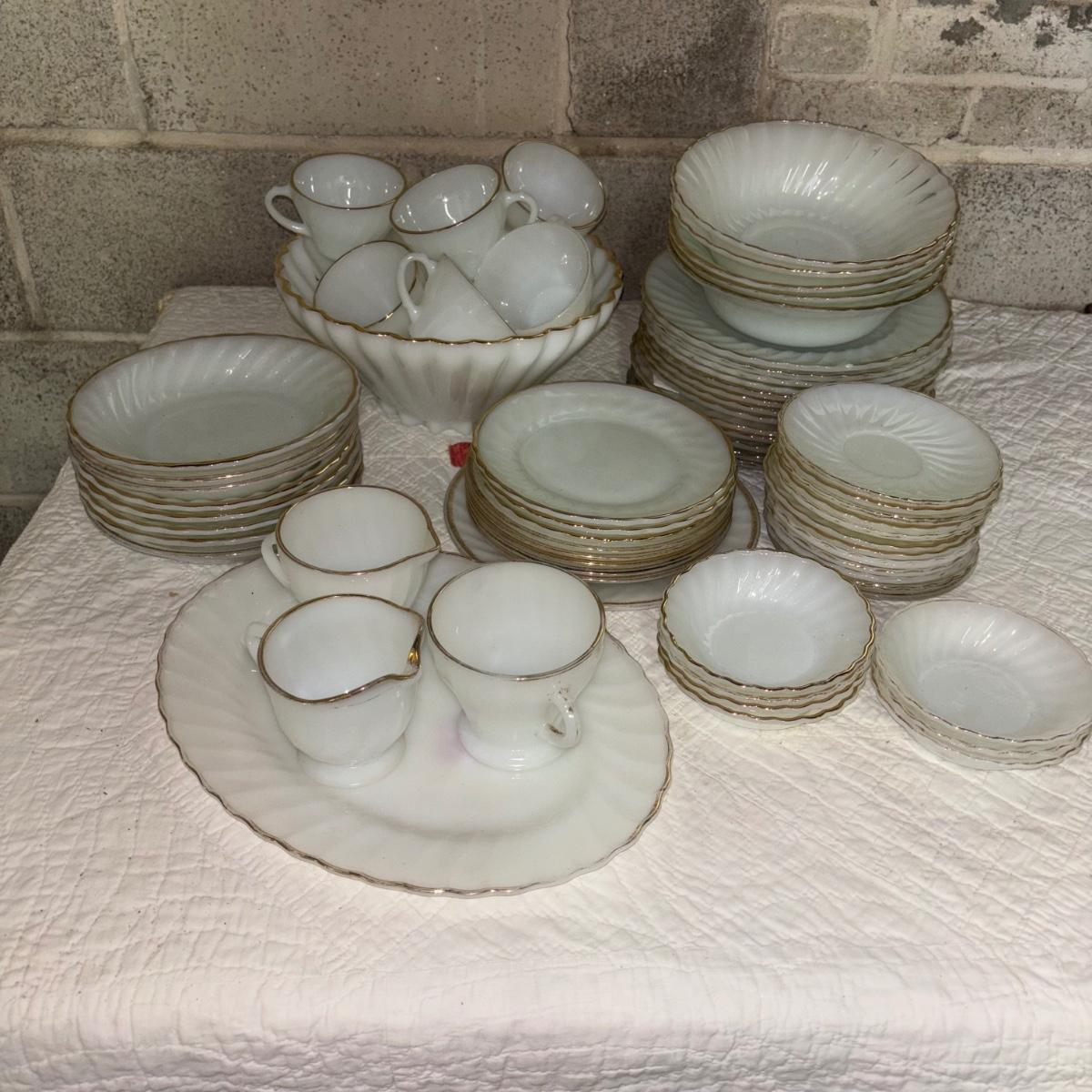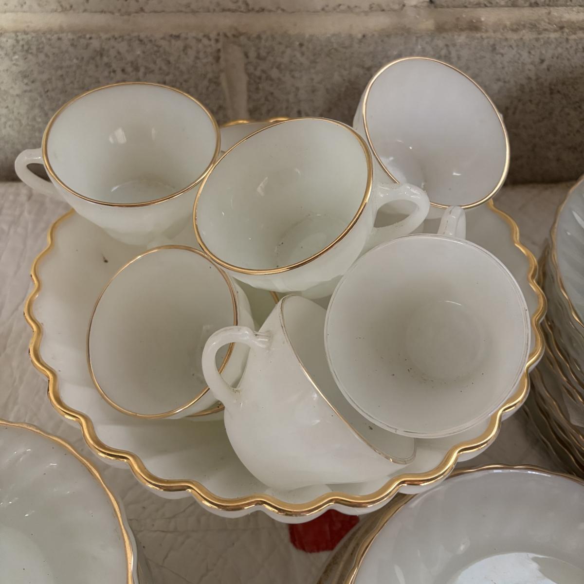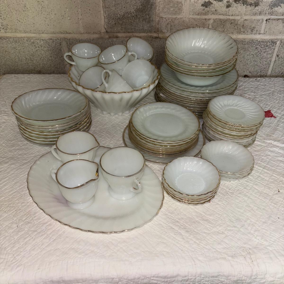 LOT 260: Vintage Milk Glass w/Gold Trim Dish Collection