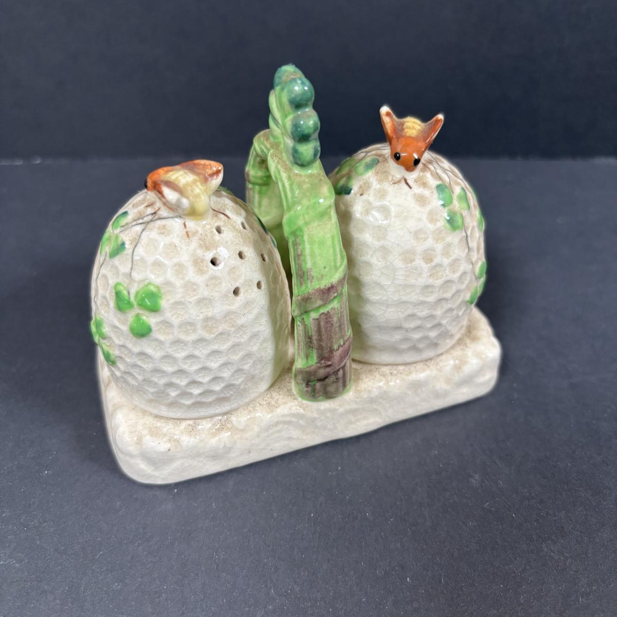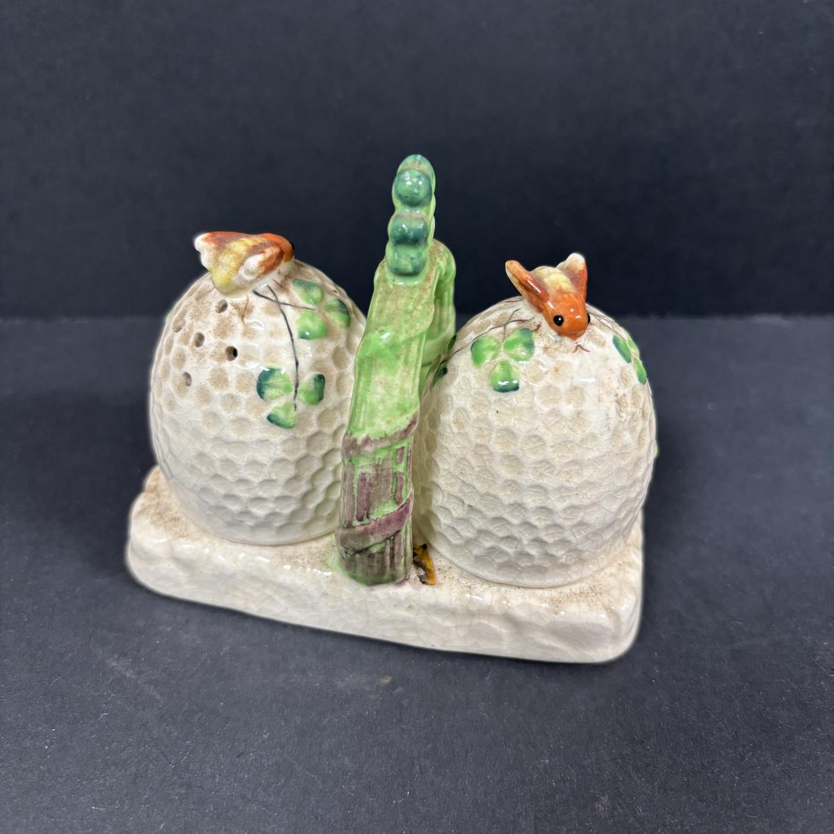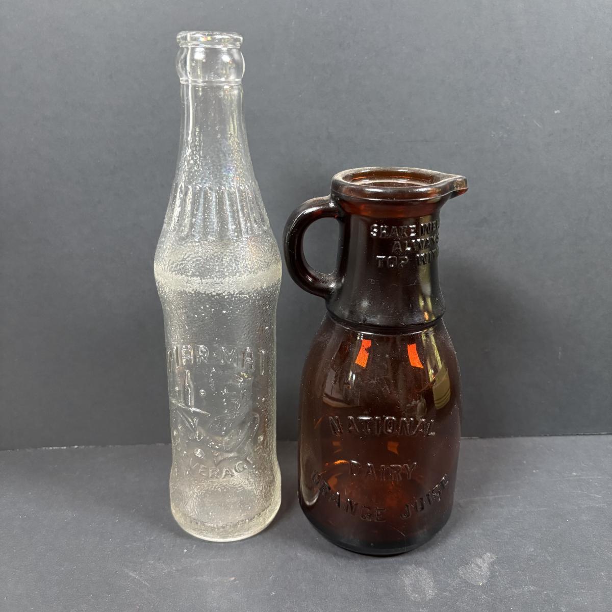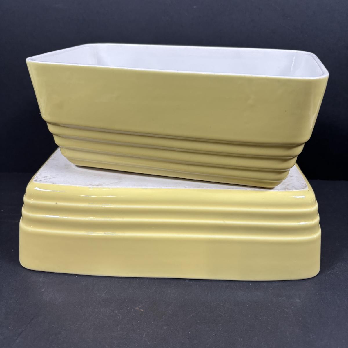 LOT 261: Hall for Westing House Refrigerator Dishes (no lids), Brown Glaze Bowl USA, Shawnee Cat Creamer, National Dairy Orange Juice Bottle & More