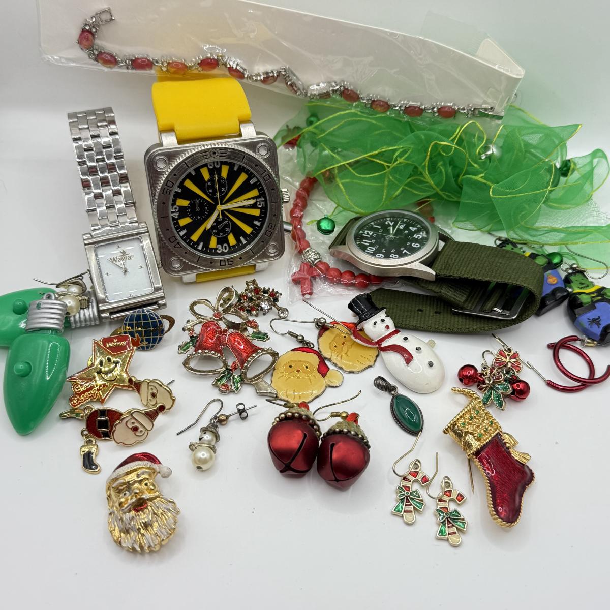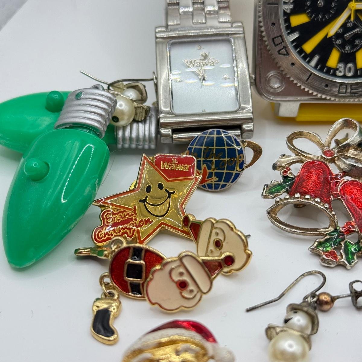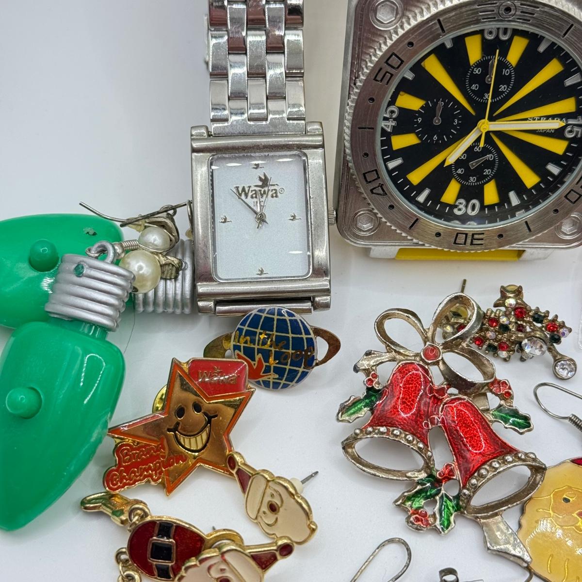 LOT 37: Wawa Watch & Pins, Other Watches, Christmas Earrings & More