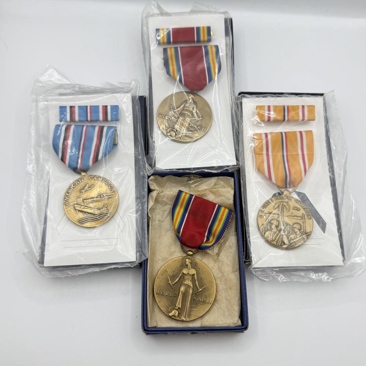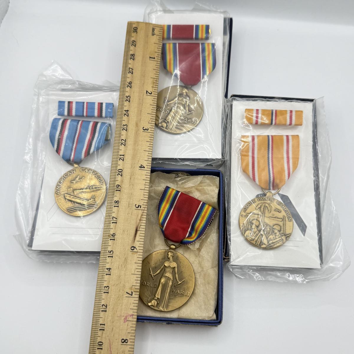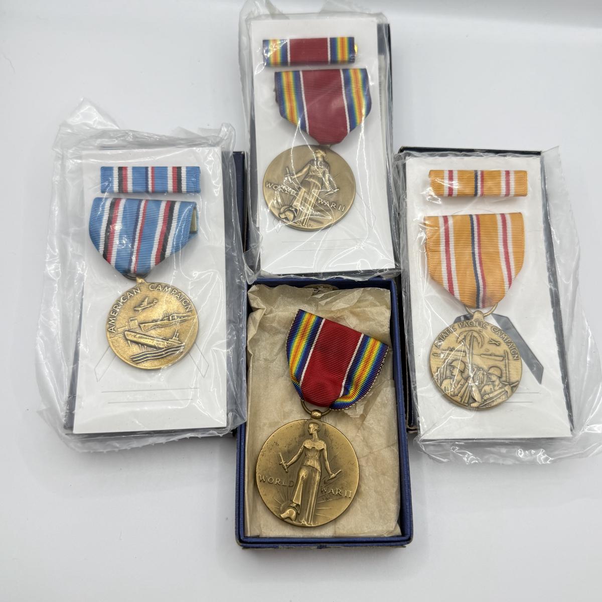LOT 39: Collection of US Military Service Medals: WWII, Asiatic Pacific and American Campaigns