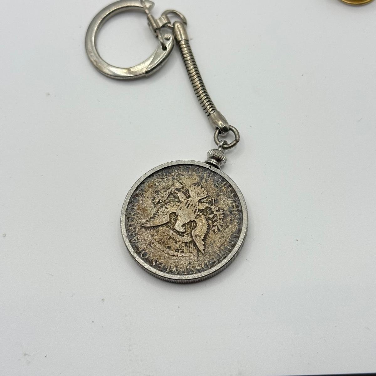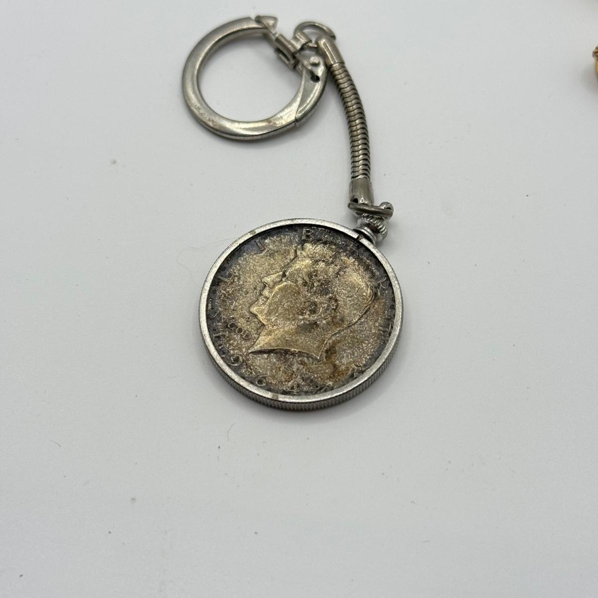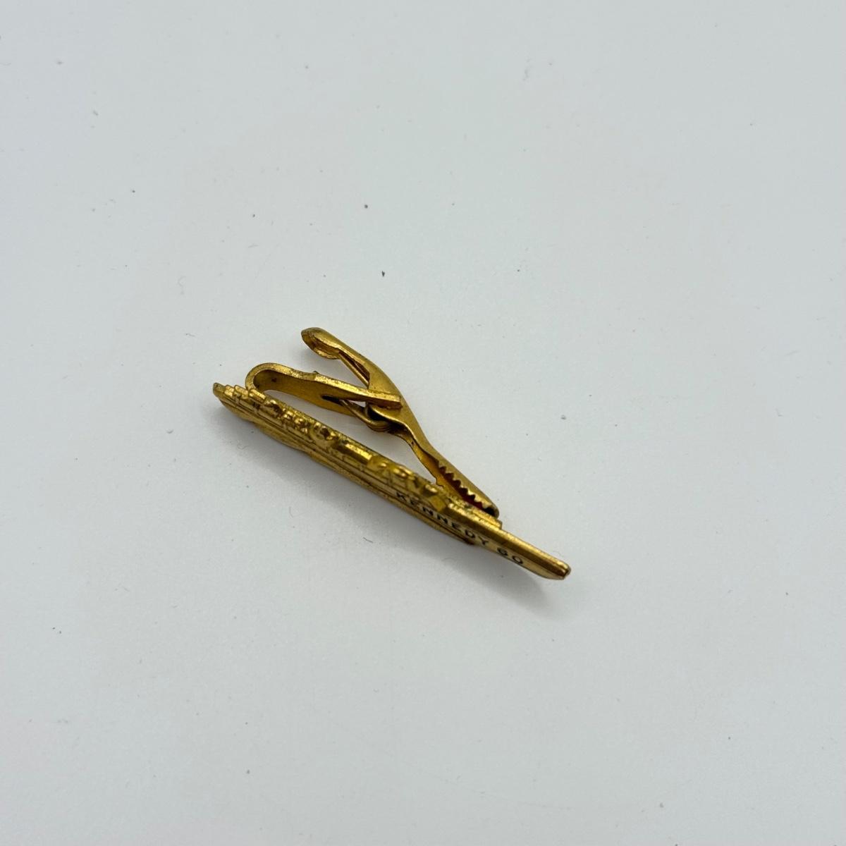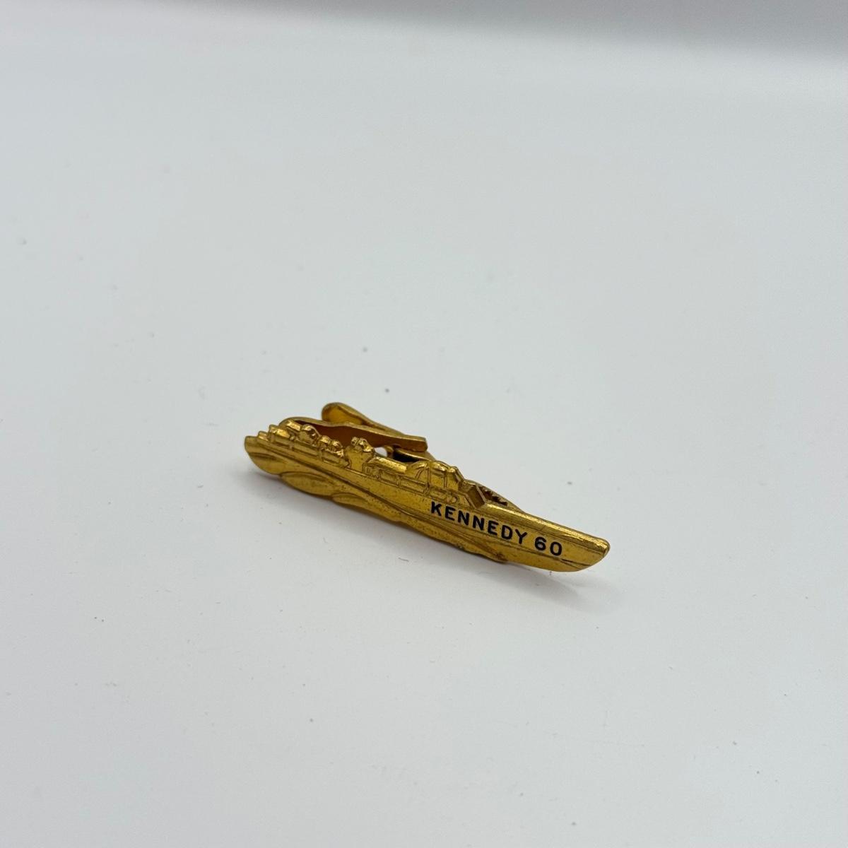 LOT 45: Vintage PT Boat 1960 Kennedy Presidency Campaign Tie Clip, WWII Honorable Discharge "Ruptured Duck" Lapel Pin & 90% Silver Kennedy Half Dollar Keychain