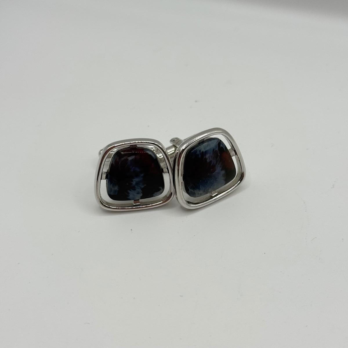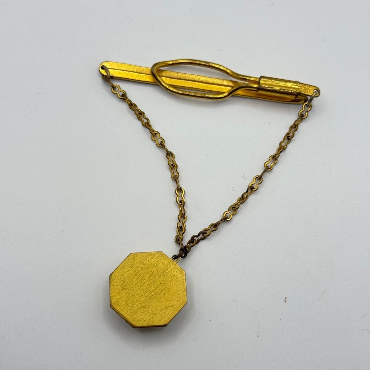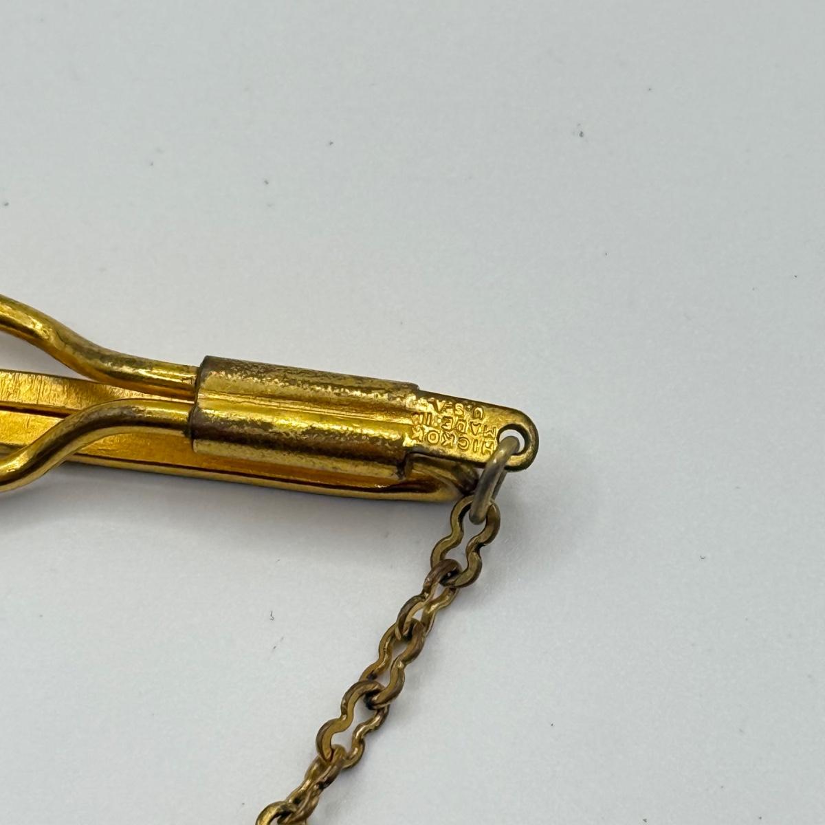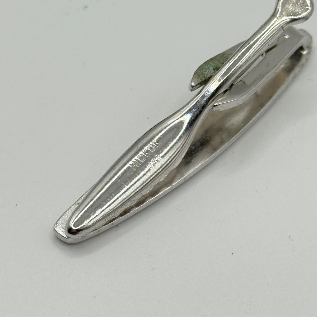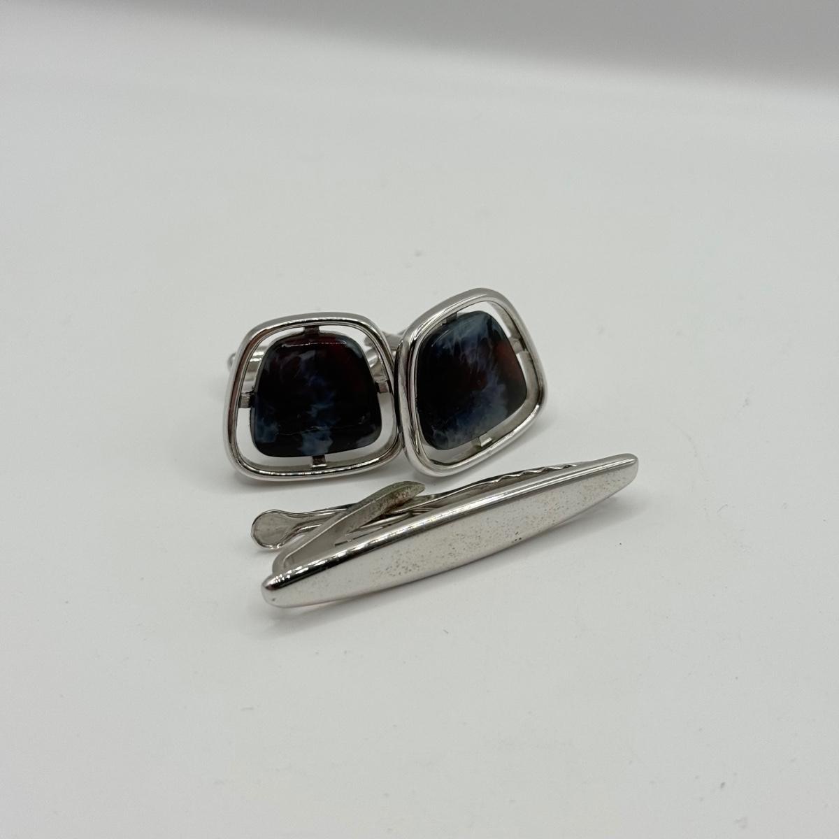 LOT 50: Vintage Hickok 4 Leaf Clover Tie Bar, Hickok Cufflinks w/ Enameled Stone Center & Silvertone Tie Clip