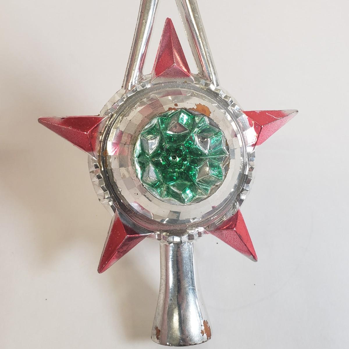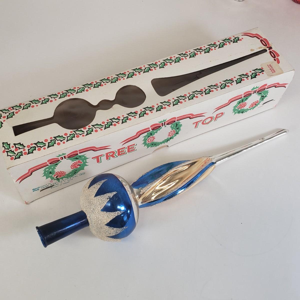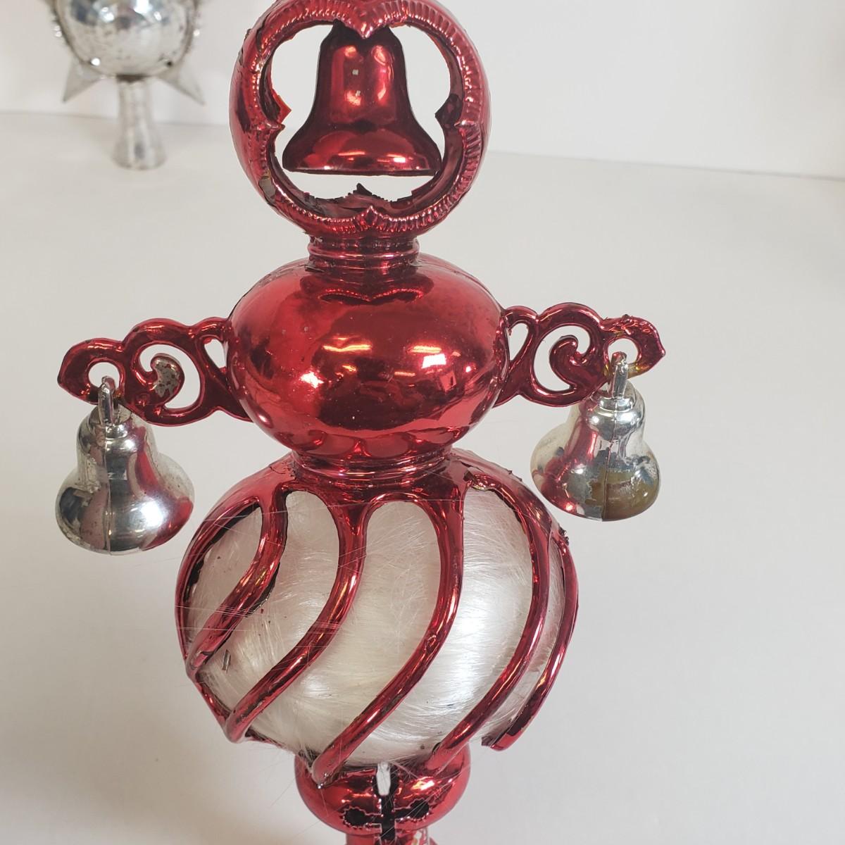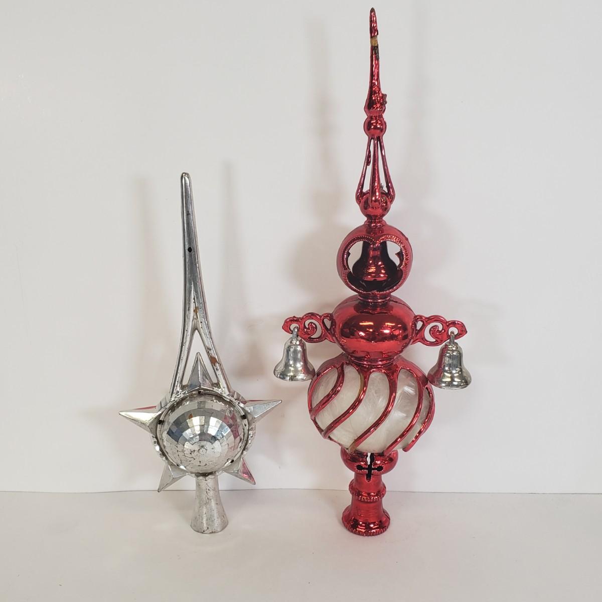 LOT 57: Vintage Christmas Tree Toppers, Large Stained Glass Angel, and Ornaments
